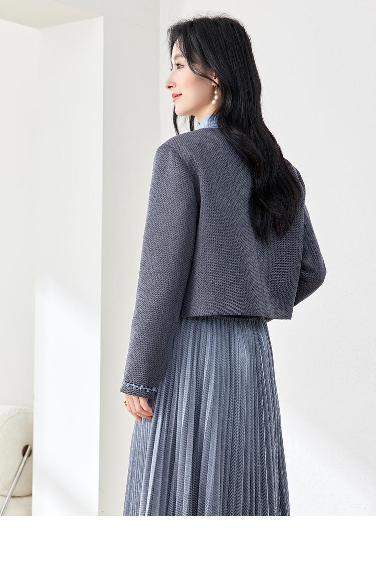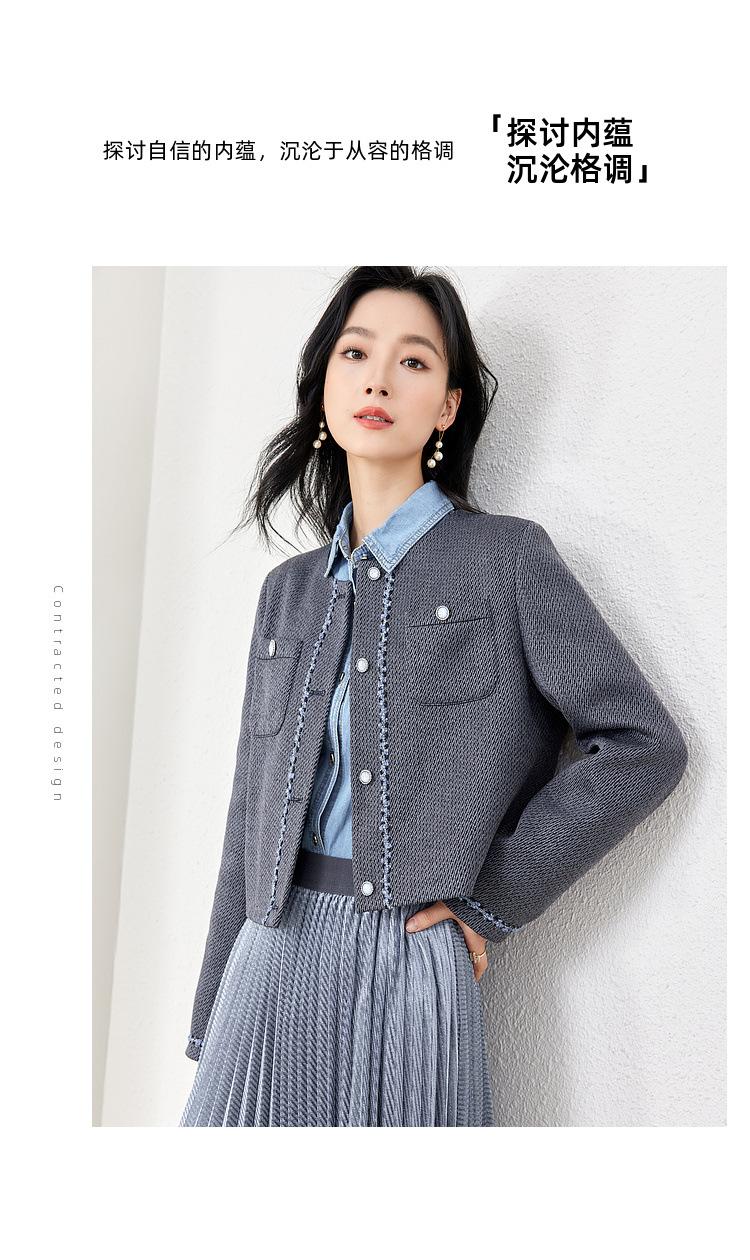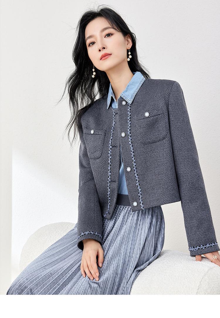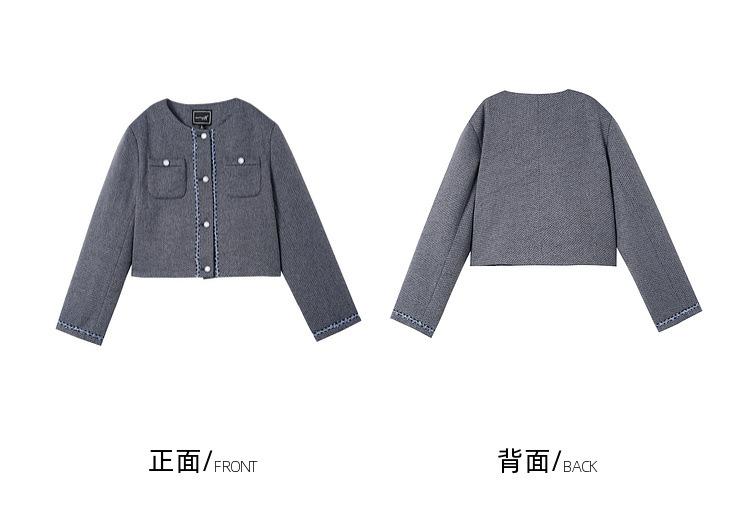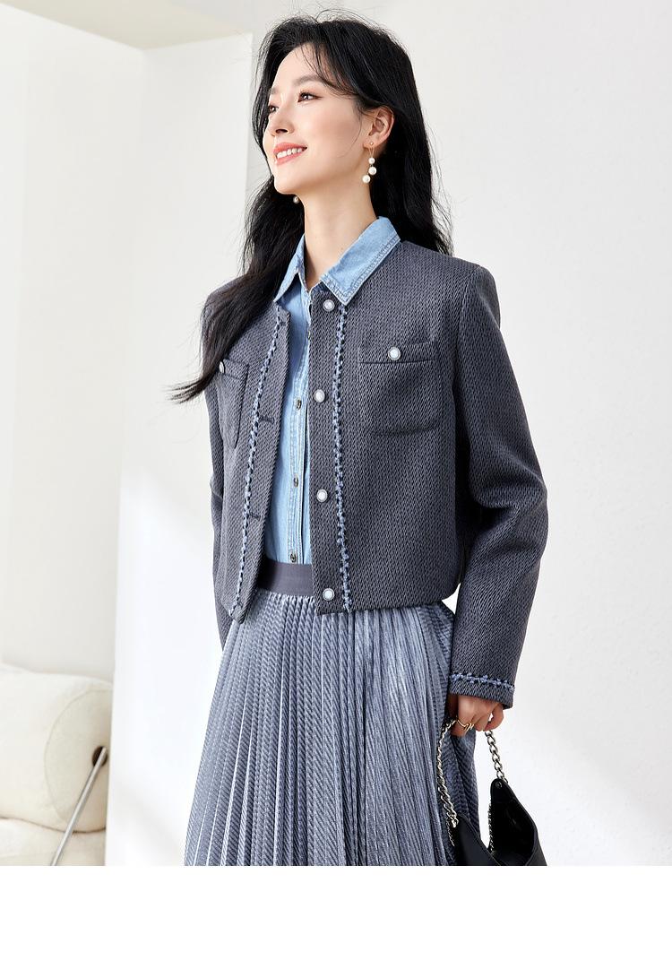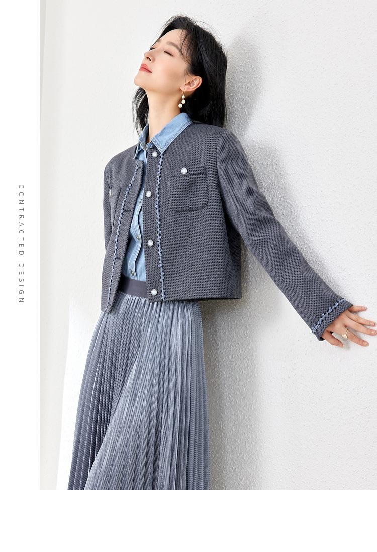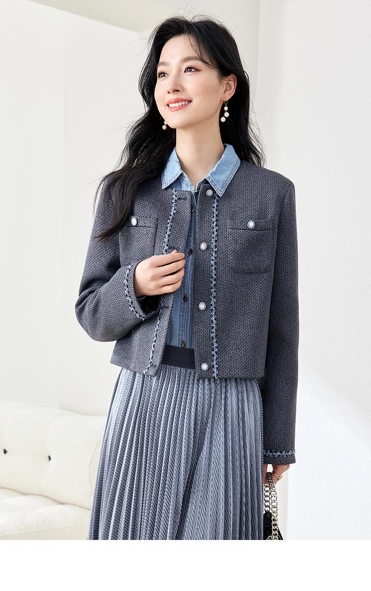 Zhenqi nueva moda gabardina corta de sarga gruesa para mujer manga larga recta pequeña para viajeras CN203