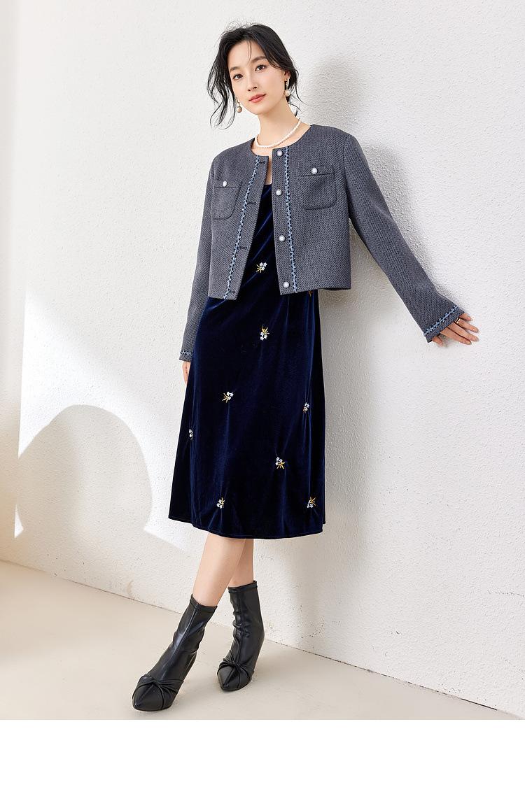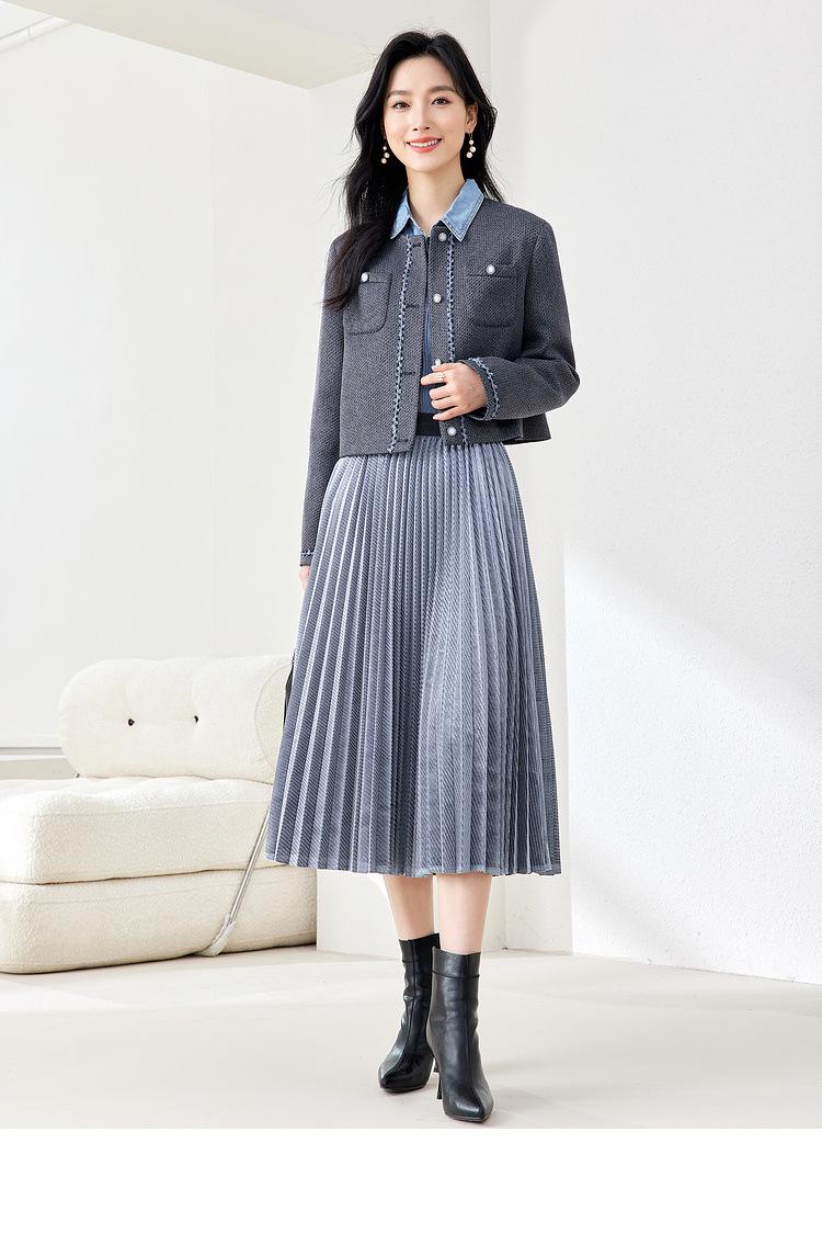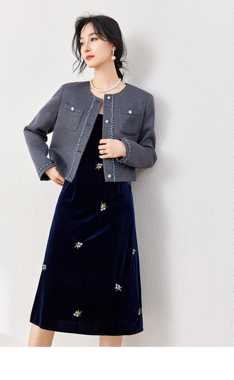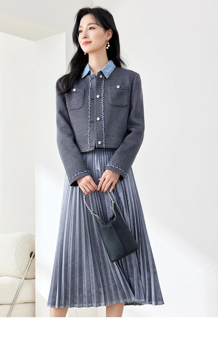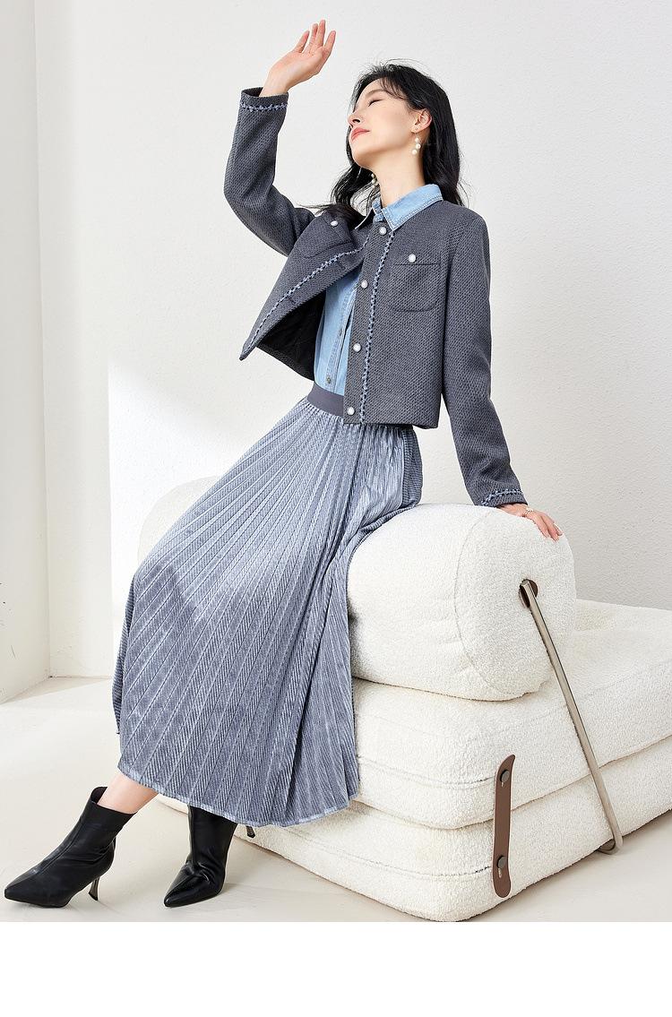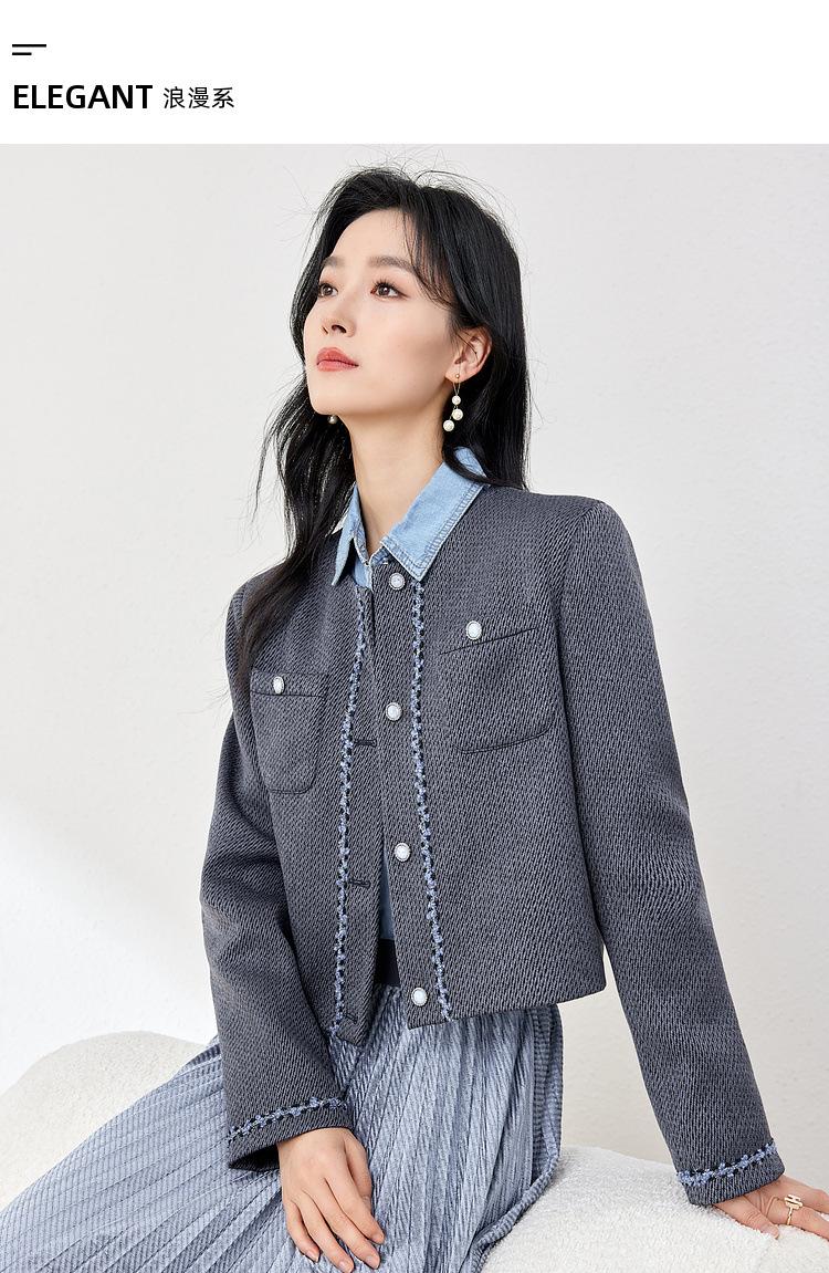 Zhenqi nueva moda gabardina corta de sarga gruesa para mujer manga larga recta pequeña para viajeras CN203