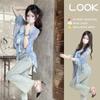 Camisa de mujer con cuello cuadrado, estampado y costuras de malla, corte entallado, primavera 2023, diseño elegante y pequeño.