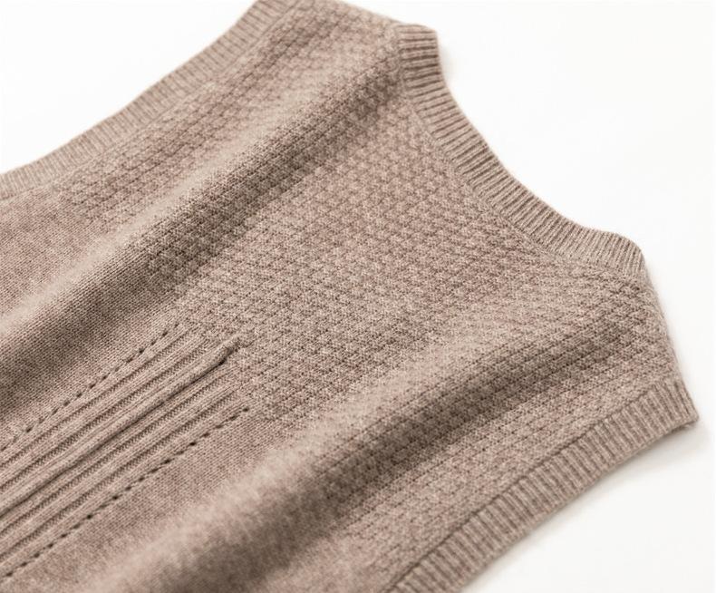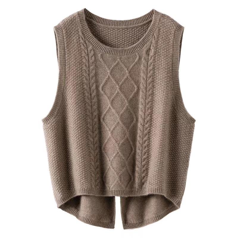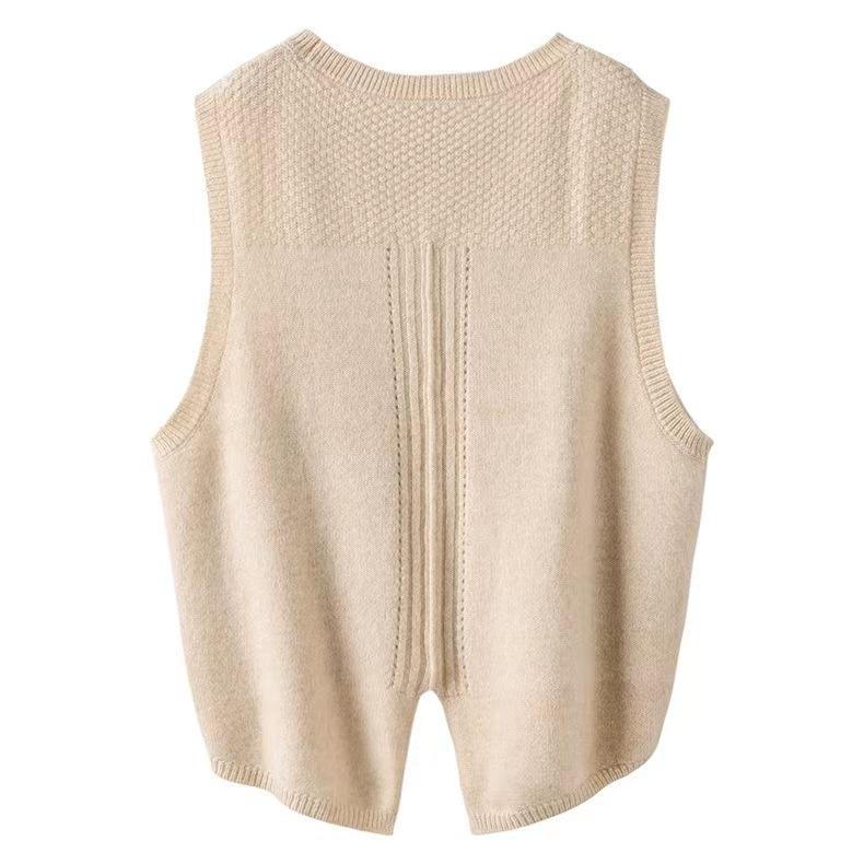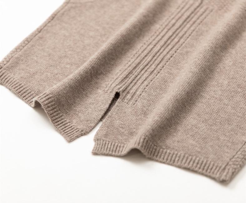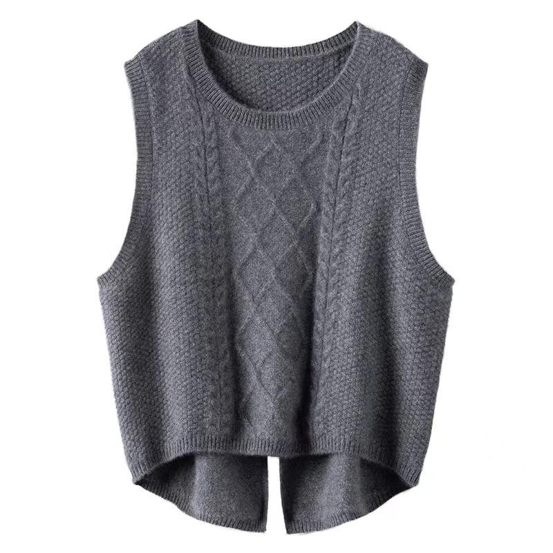 Chaleco de Lana Grueso Delantero Corto Trasero Largo Nuevo Otoño e Invierno Chaleco para Mujer sin Mangas Espalda Dividida Tejido Cuello Redondo Camisa Base