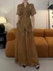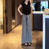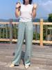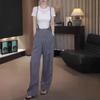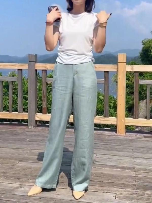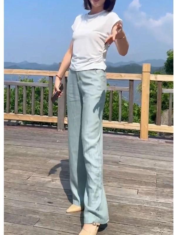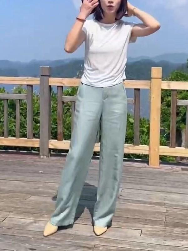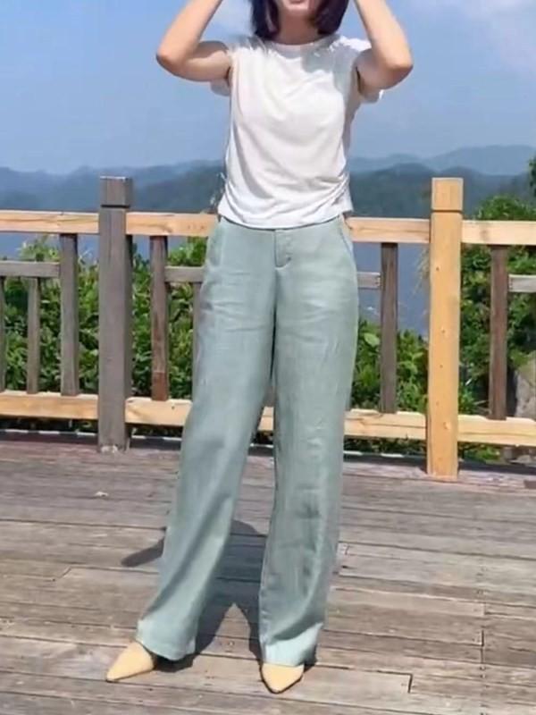 24235 Big Love Meiyuan 2025 Verano Nuevo Estilo Camiseta Estática de Manga Corta Pantalones Rectos de Pierna Ancha de Cintura Alta Look Fresco y Adelgazante