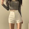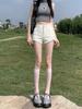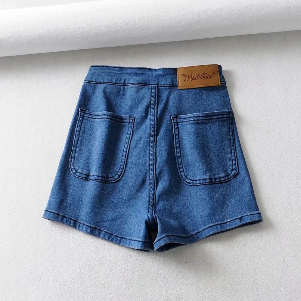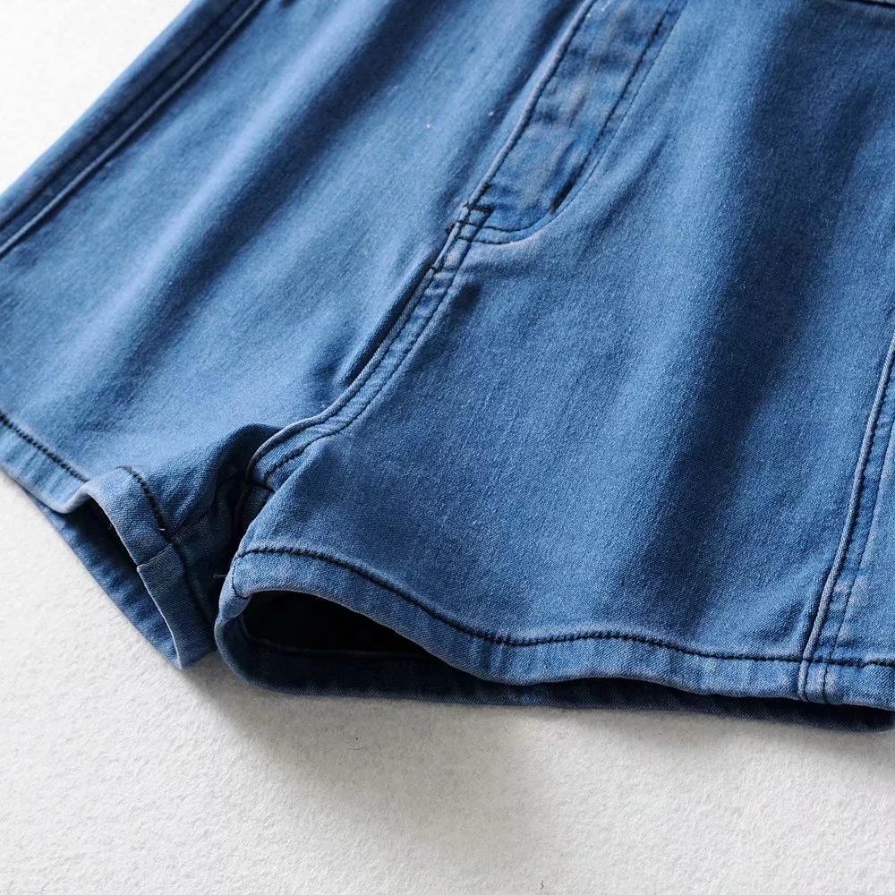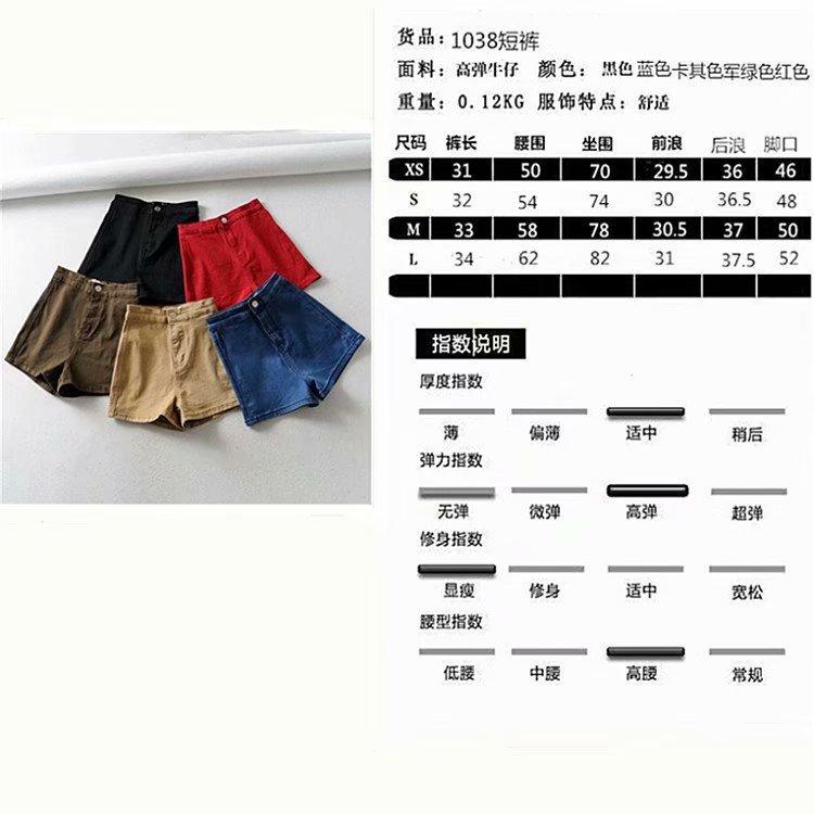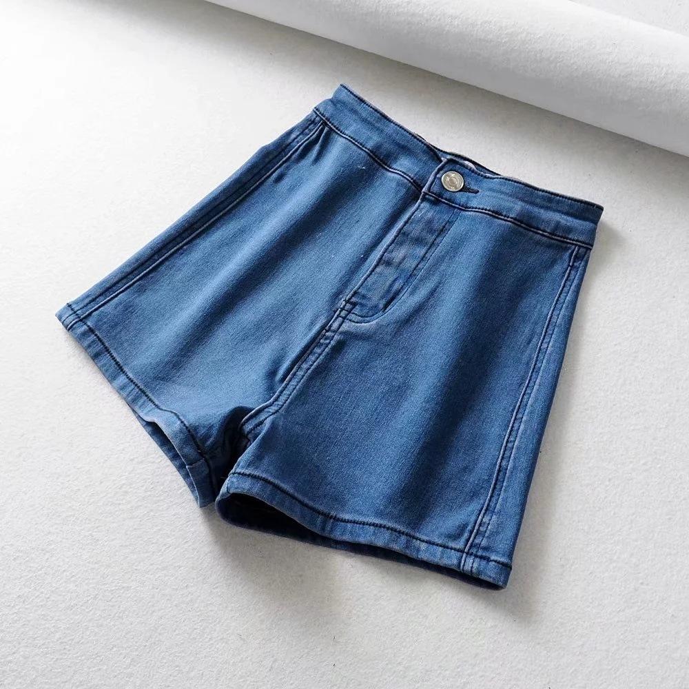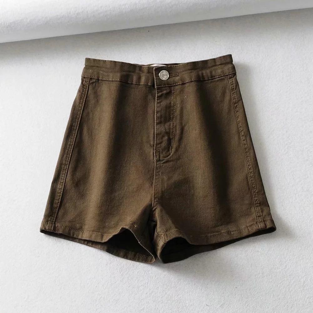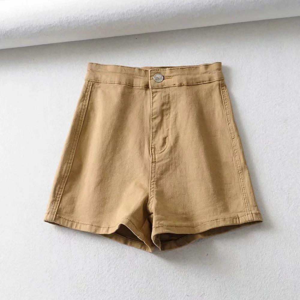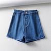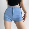 Pantalones cortos vaqueros de cintura alta para mujer, estilo europeo y americano, ajustados, de color liso, de verano, informales, elásticos, de corte A