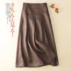 Falda Floral Retro de Algodón y Lino 2025 Transfronteriza Nueva Verano Cintura Alta Slim Falda A-Line Cintura Elástica Falda Midi