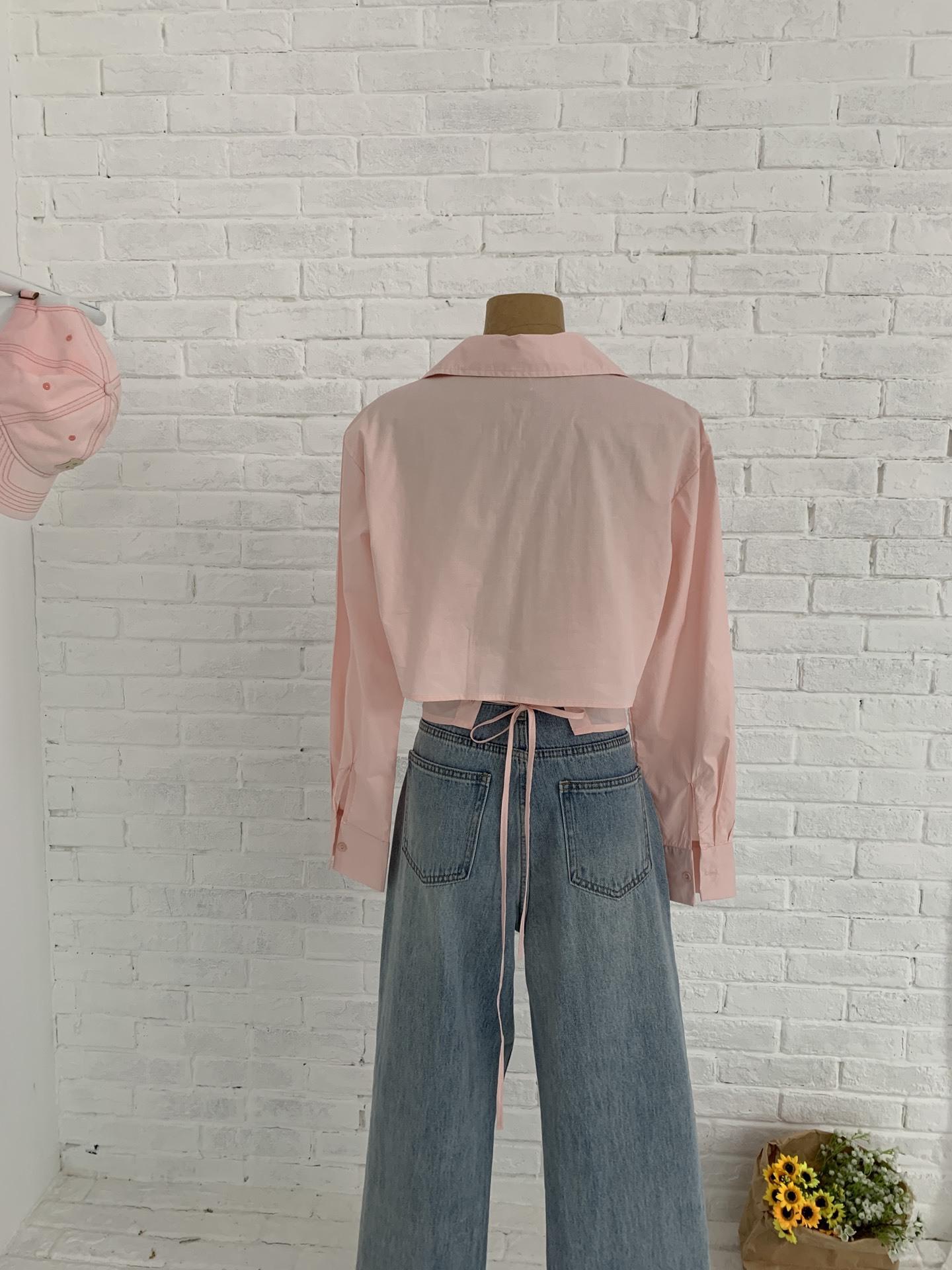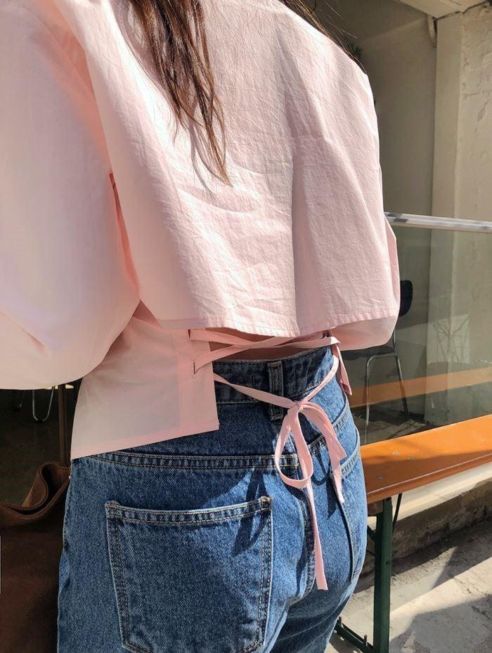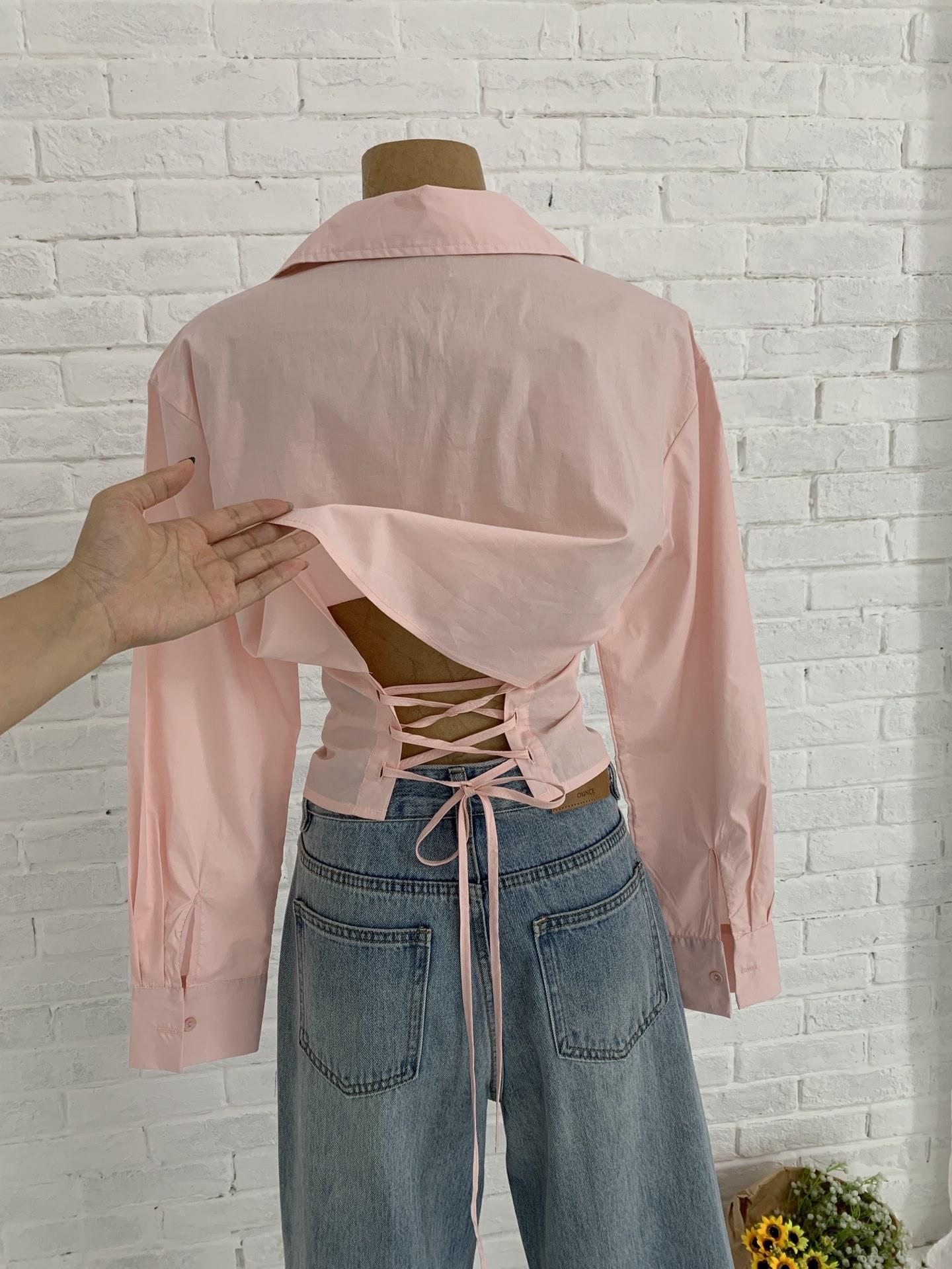 Camisa Rosa Lunares sin Cintura con Solapa y Cordones Primavera y Verano 2025 Camisa de Alta Gama Estilo Coreano Dongdaemun Top
