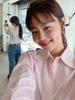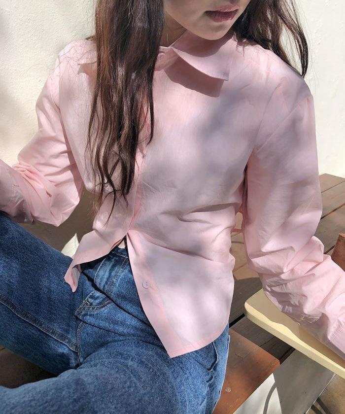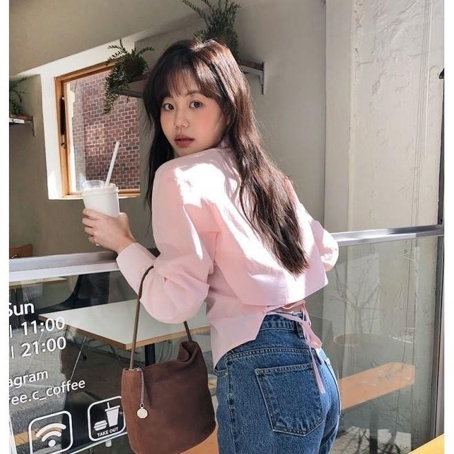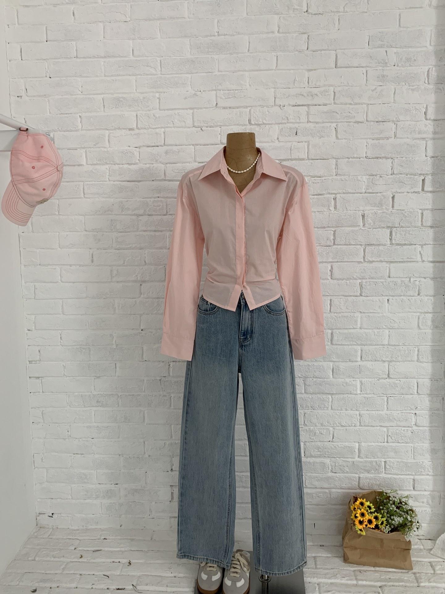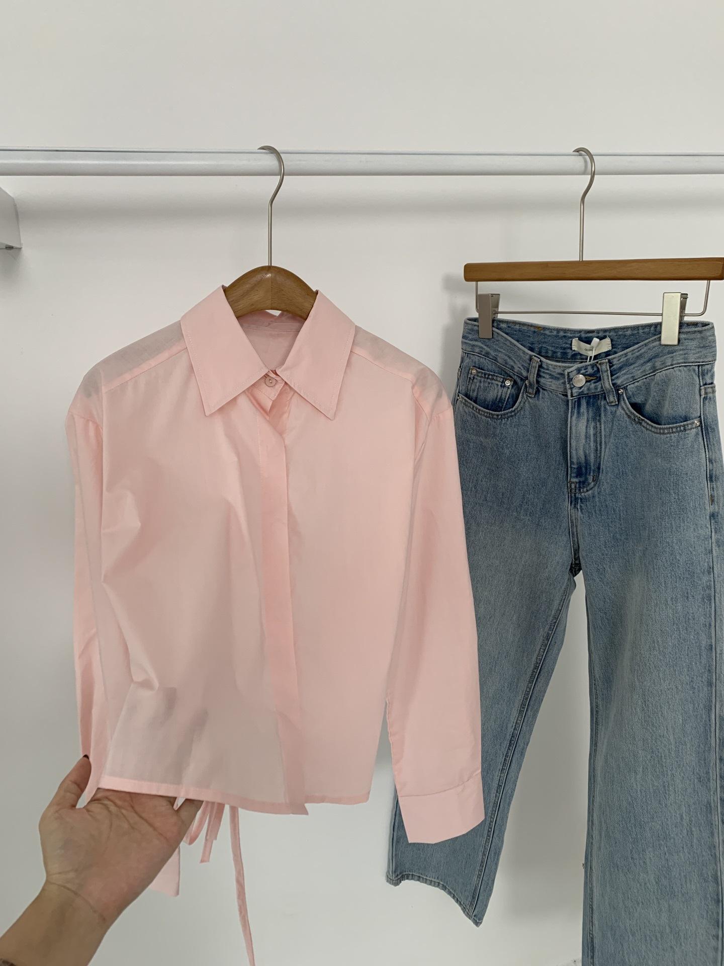 Camisa Rosa Lunares sin Cintura con Solapa y Cordones Primavera y Verano 2025 Camisa de Alta Gama Estilo Coreano Dongdaemun Top