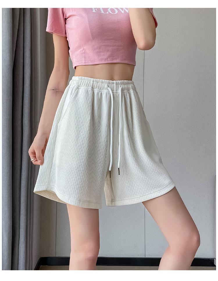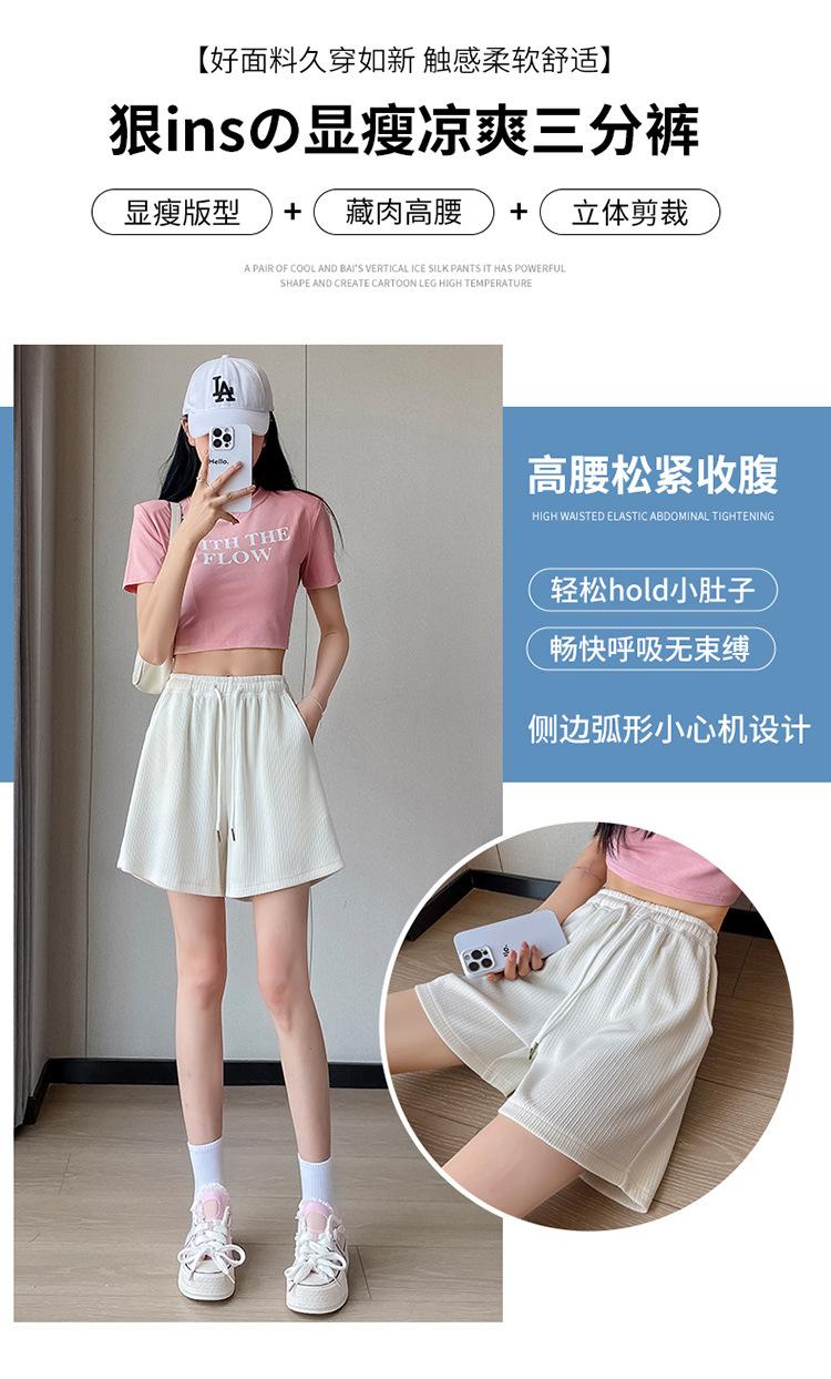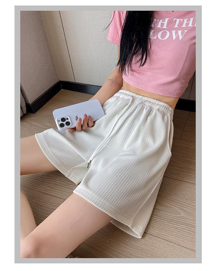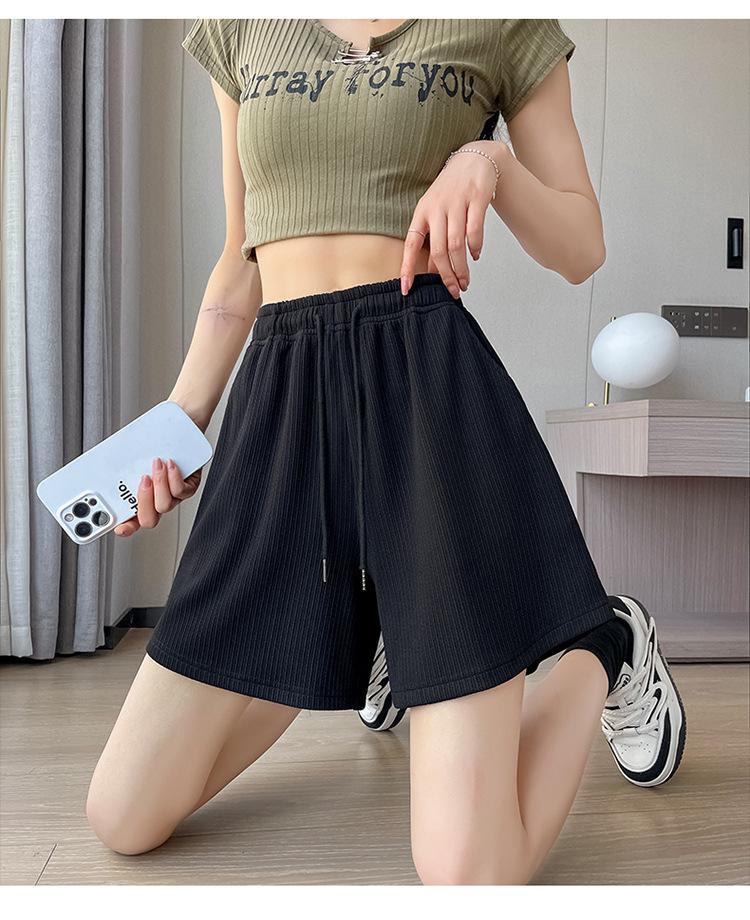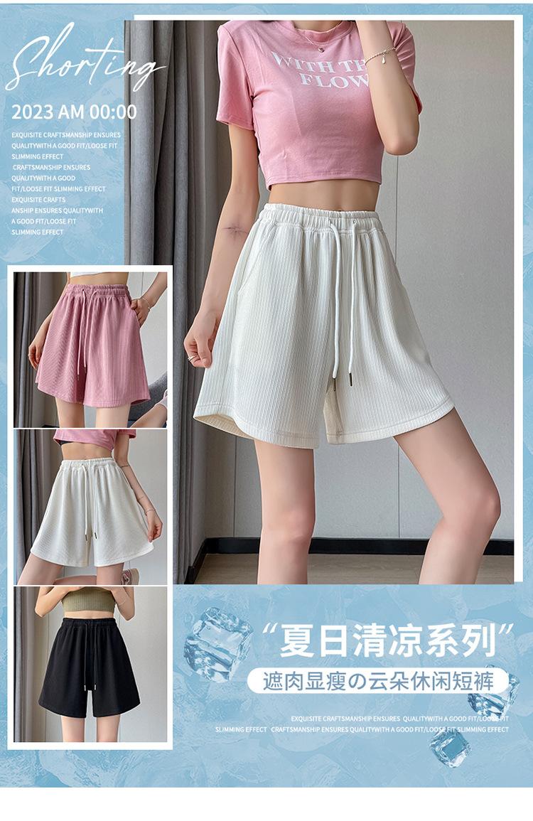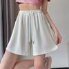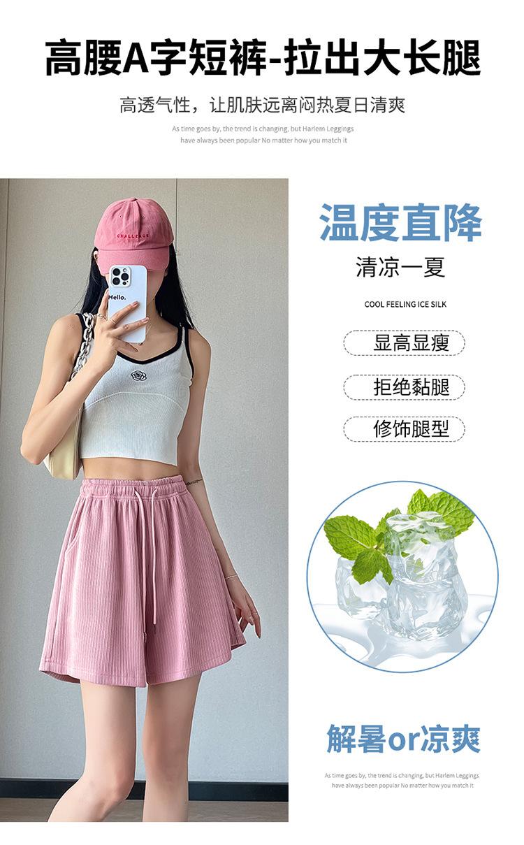 Shorts Deportivos de Seda de Hielo para Mujer Verano 2025 Delgados Cintura Alta Nuevo Cuadros Color Sólido Tres Puntos Pierna Ancha Shorts Casuales