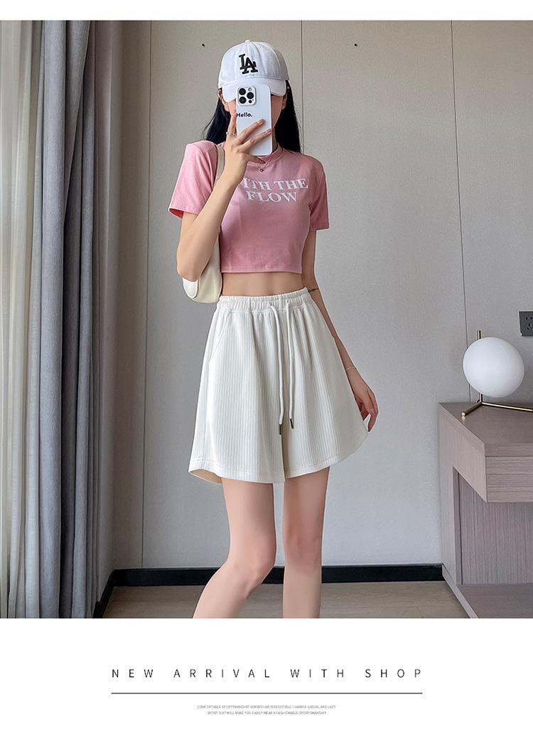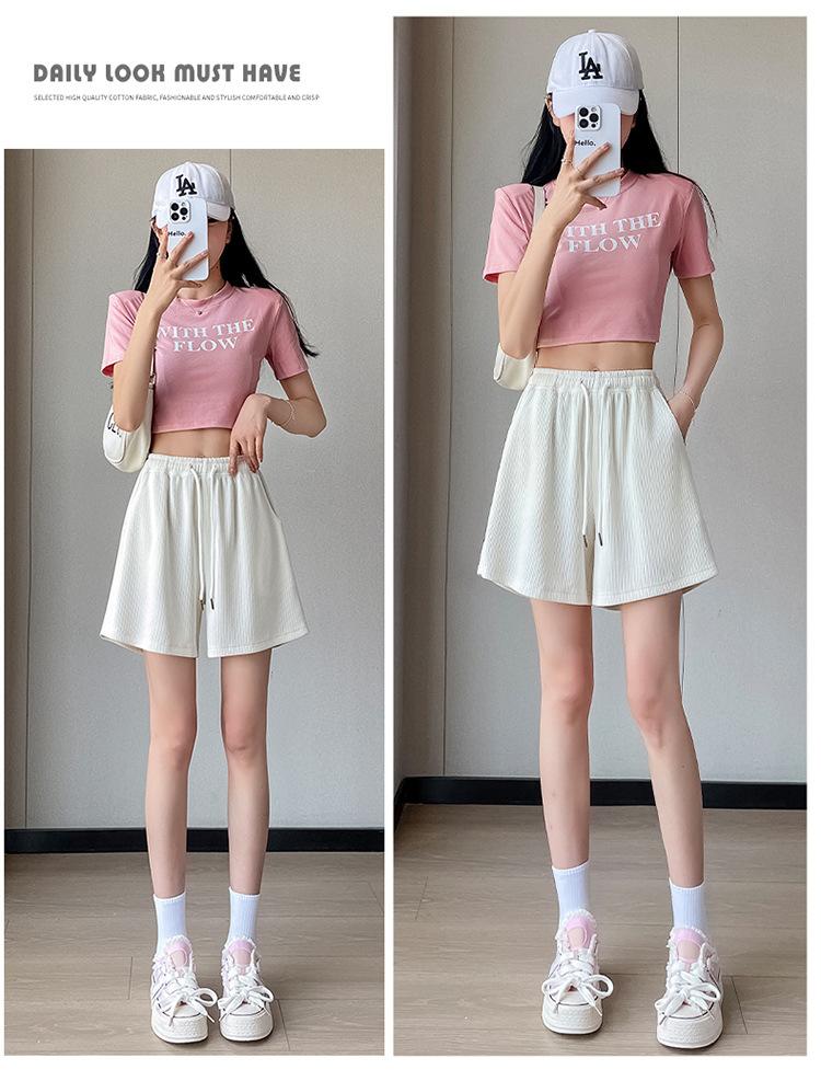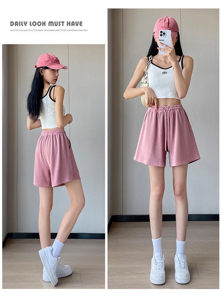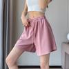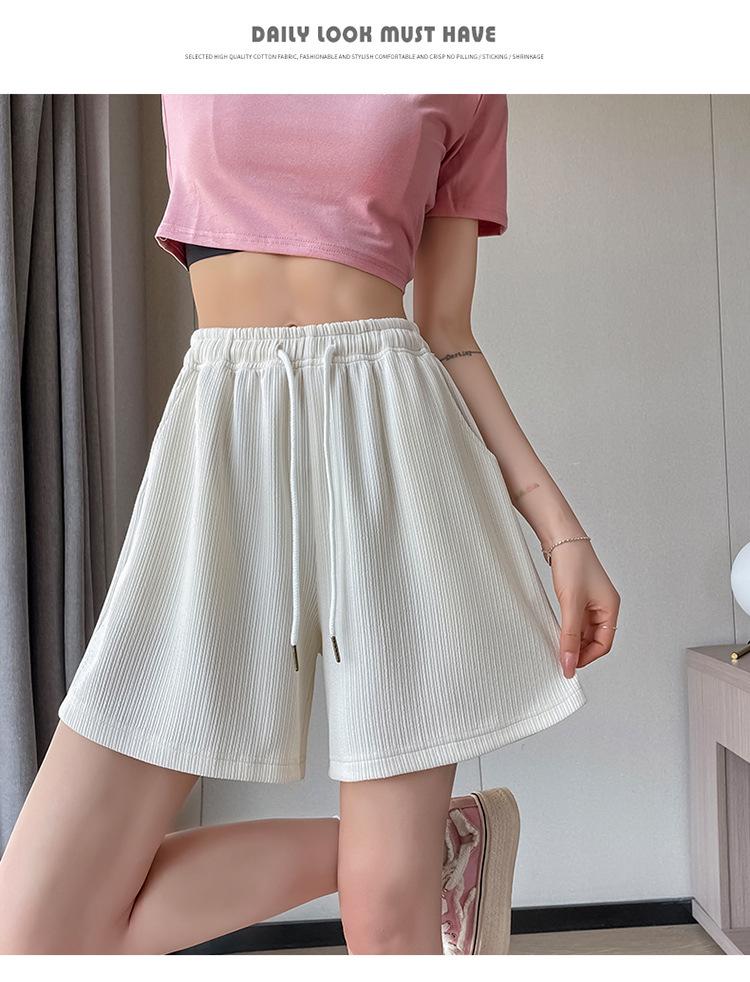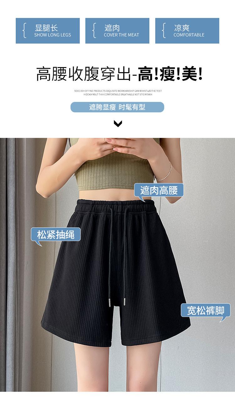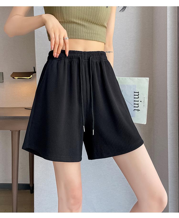 Shorts Deportivos de Seda de Hielo para Mujer Verano 2025 Delgados Cintura Alta Nuevo Cuadros Color Sólido Tres Puntos Pierna Ancha Shorts Casuales