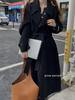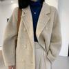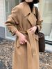 Abrigo de cachemira de doble cara para Mujer Nuevo estilo coreano largo con solapa con cordones por encima de la rodilla lana suelto casual abrigo de lana para mujer