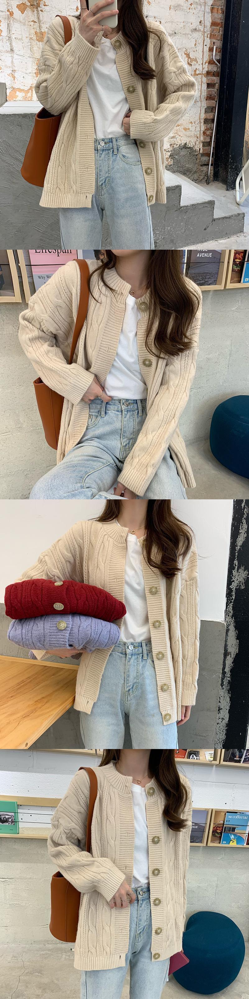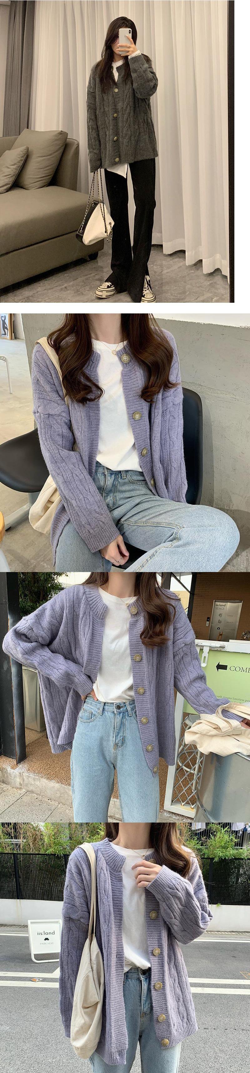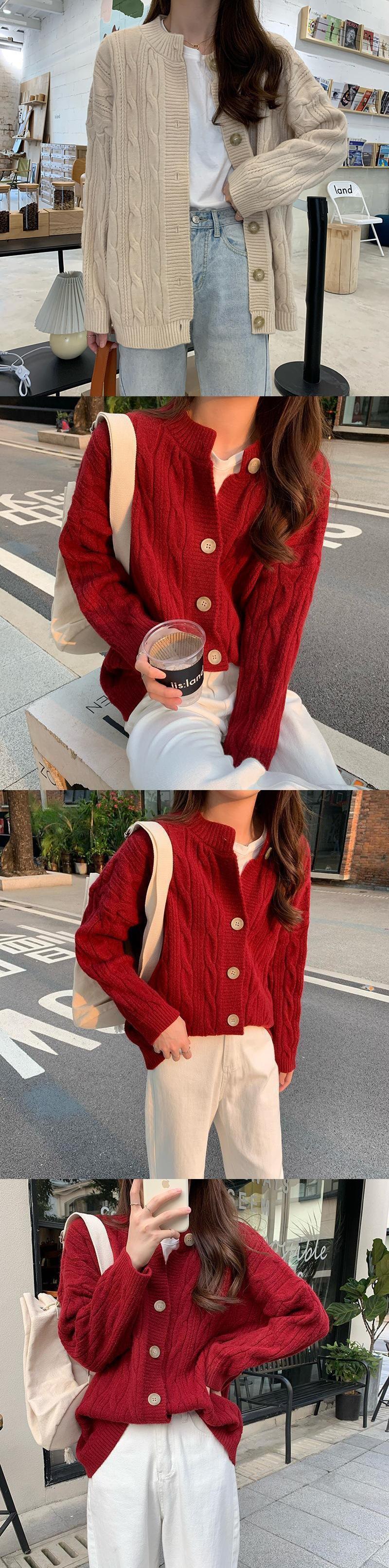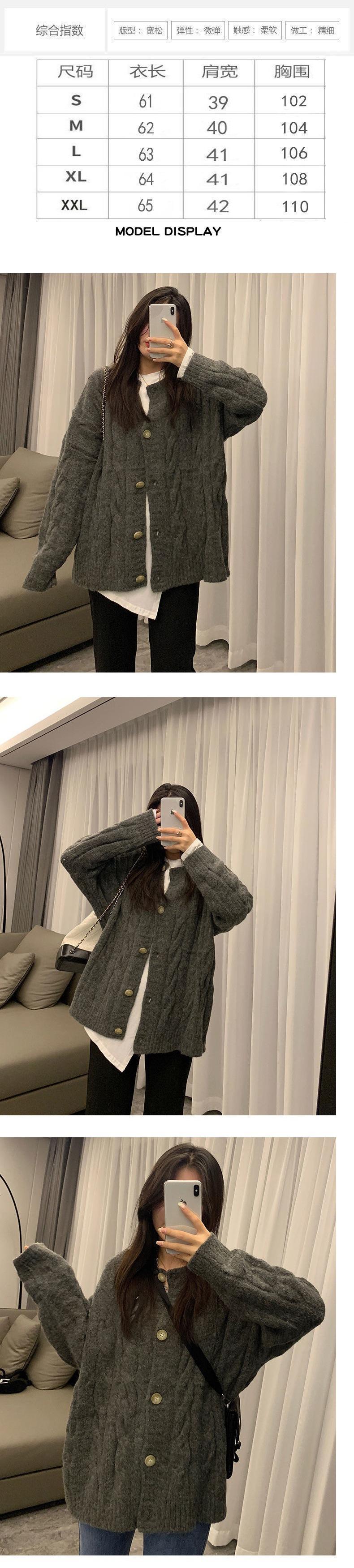 Suéter para mujer estilo coreano con botón de palanca tejido de cable retro cárdigan otoño e invierno nuevo suelto moderno chaqueta de punto para mujer