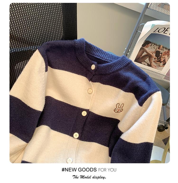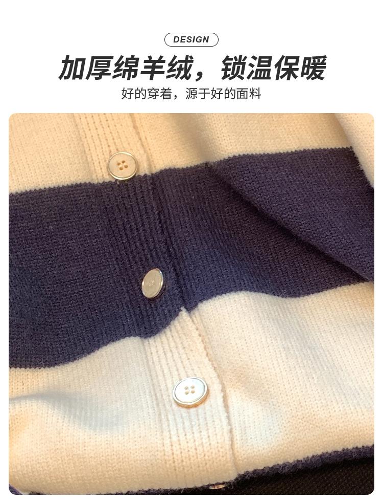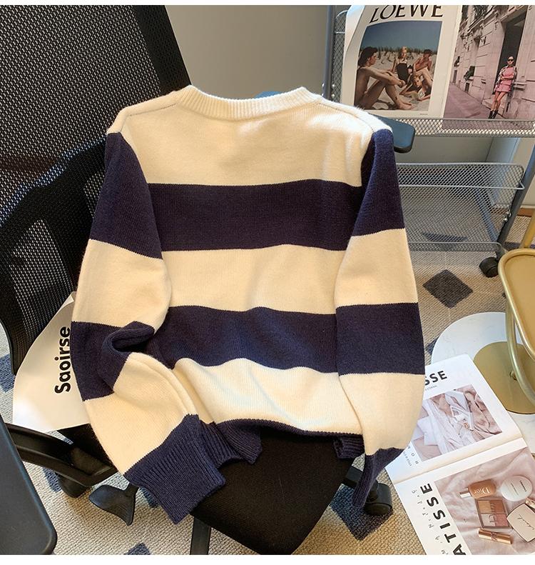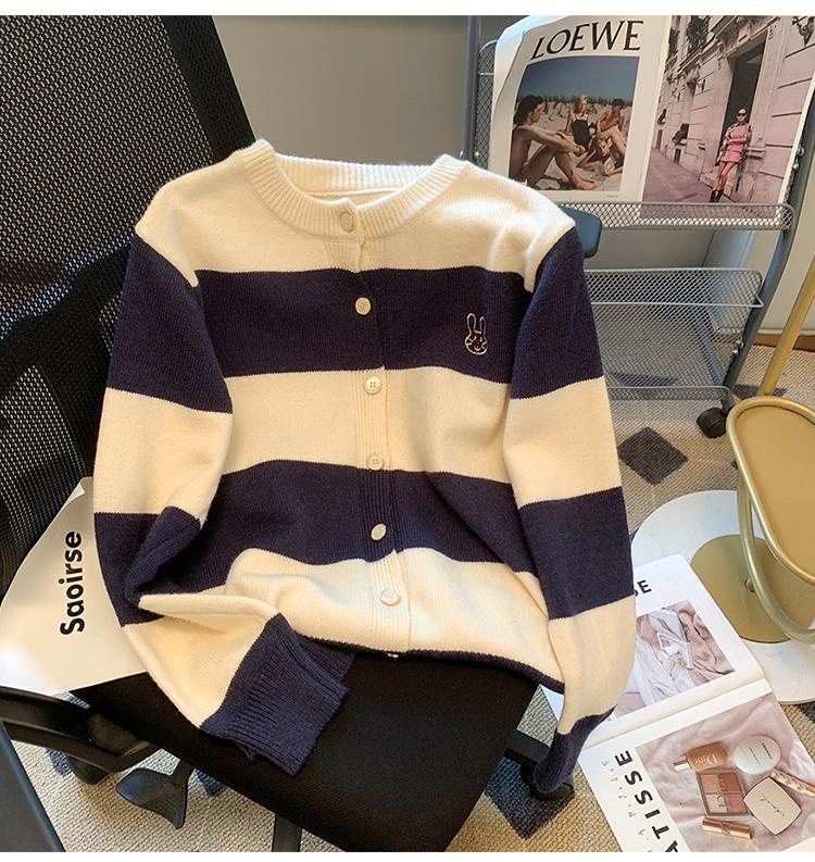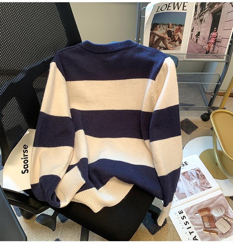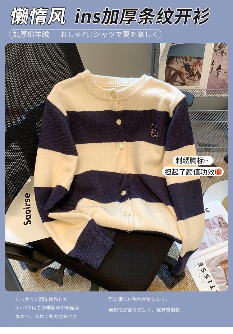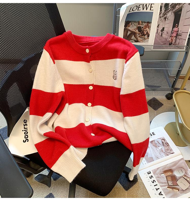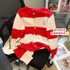 Cárdigan de punto a rayas para mujer, prenda exterior de otoño e invierno, holgado, estilo retro, chaqueta antiedad