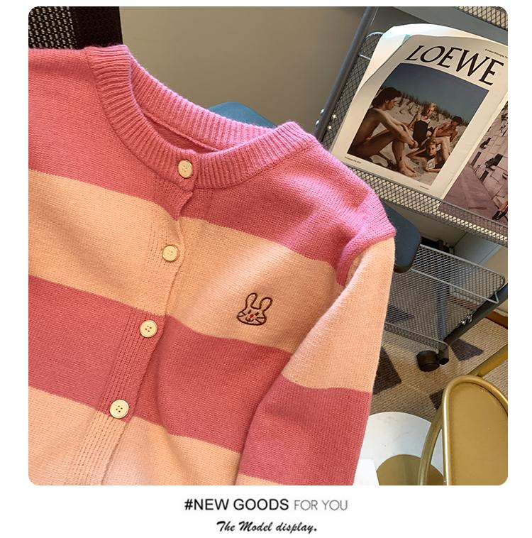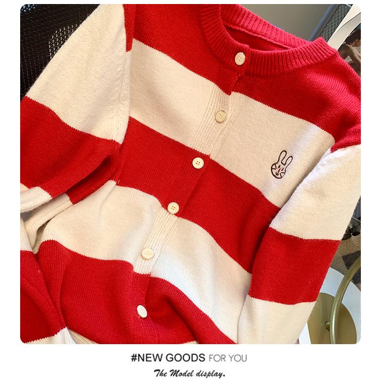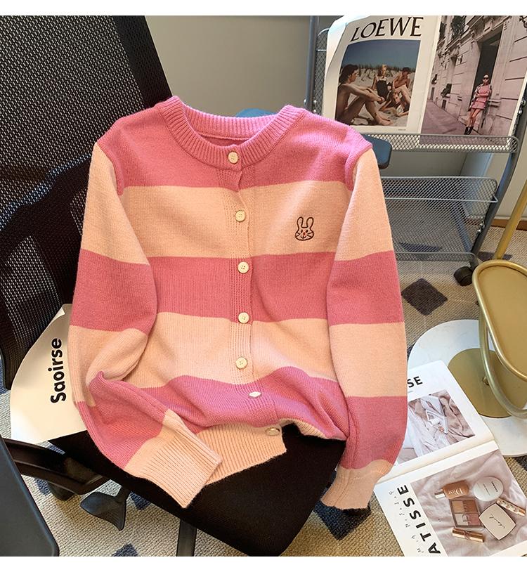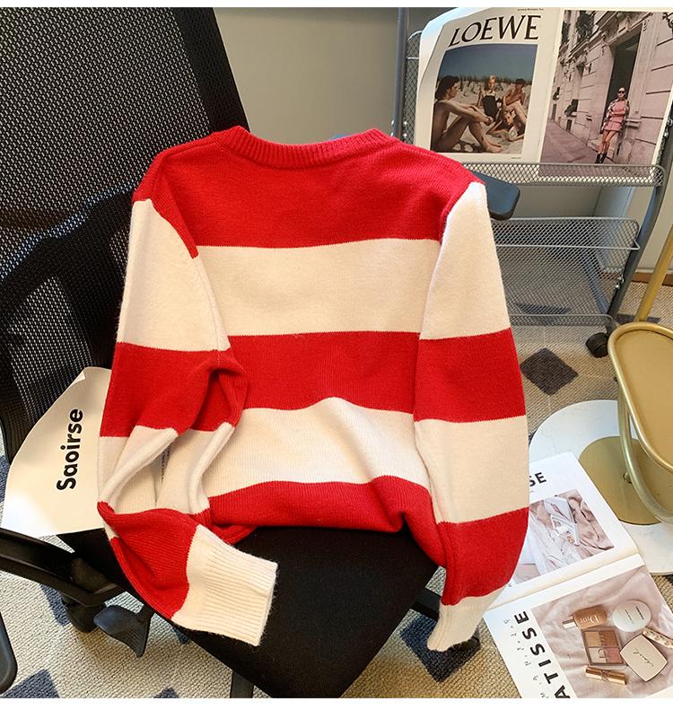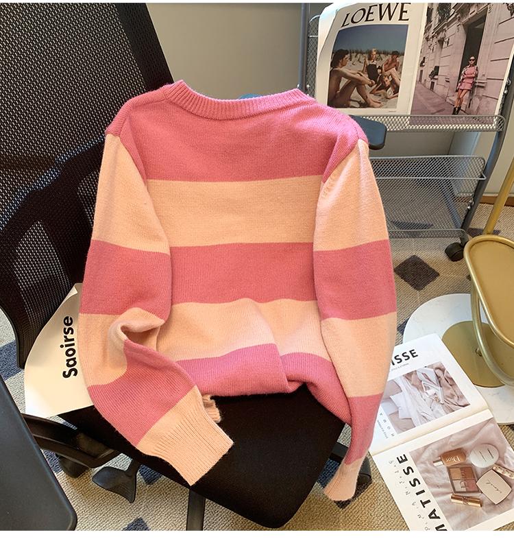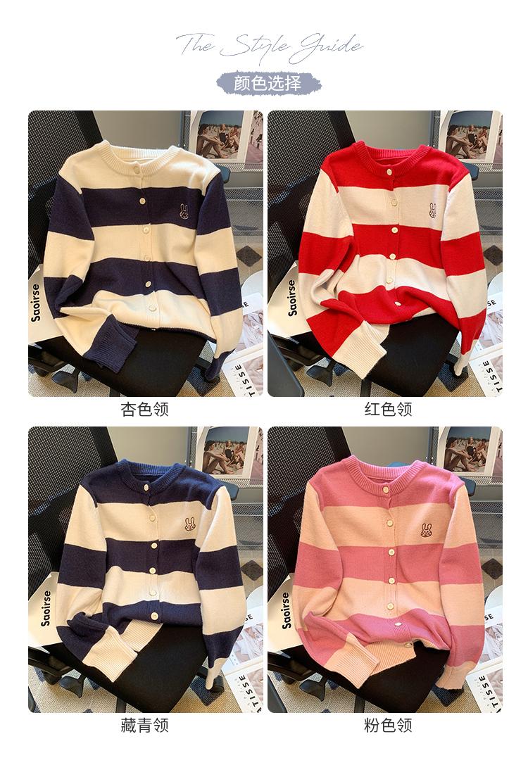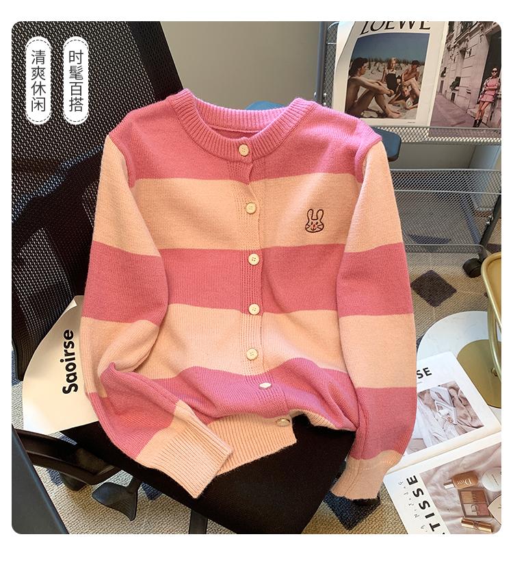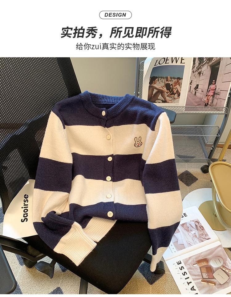 Cárdigan de punto a rayas para mujer, prenda exterior de otoño e invierno, holgado, estilo retro, chaqueta antiedad