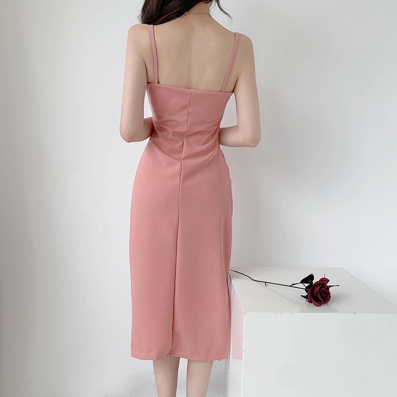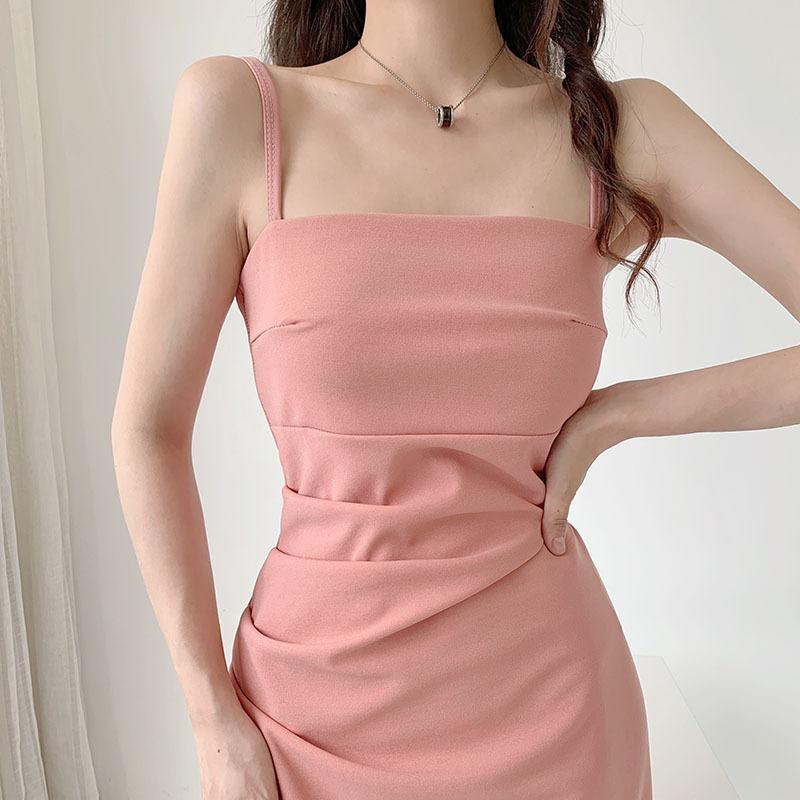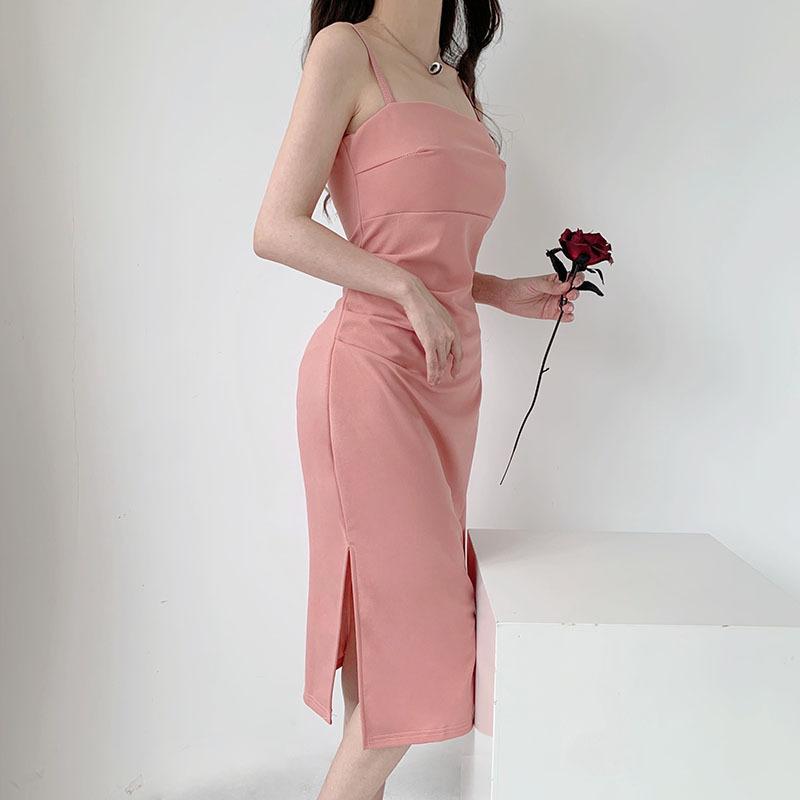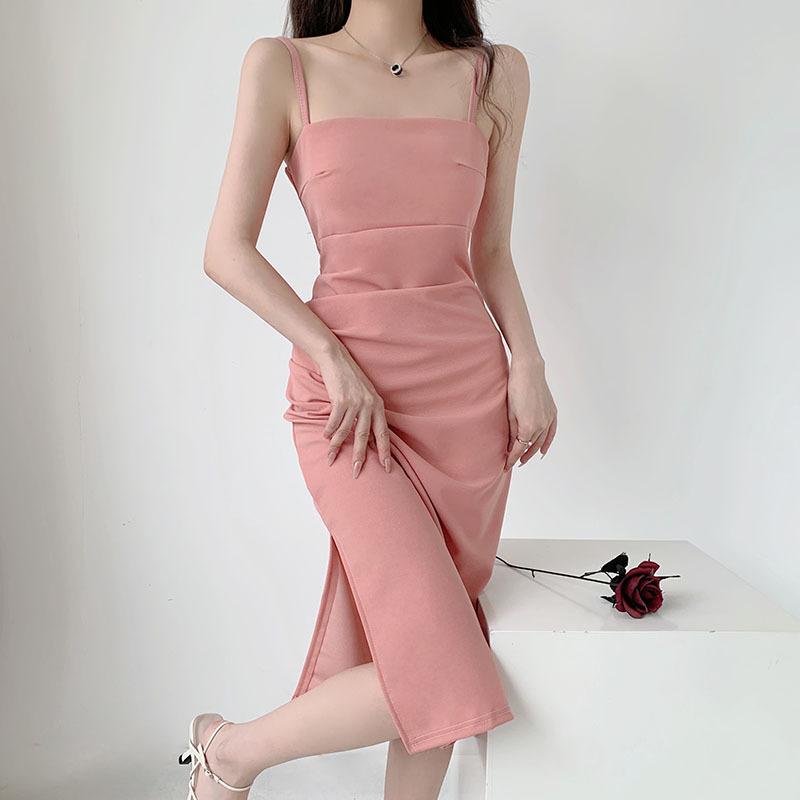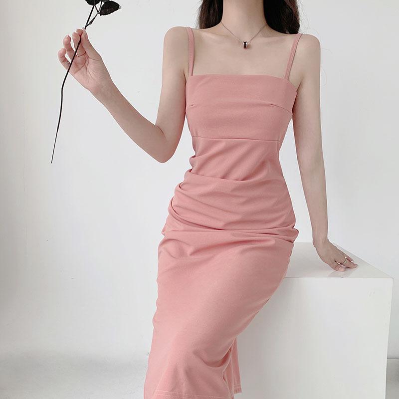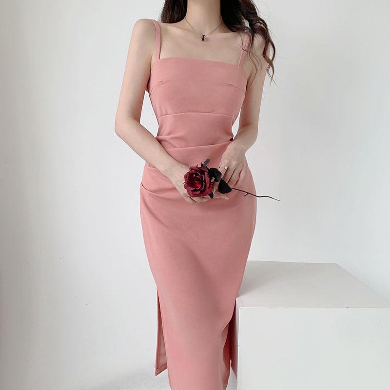 Vestido adelgazante francés de corte entallado, suave, color rosa, para verano, ropa de mujer 2023, nuevo, pequeño, sexy, largo