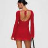 | Vestido plisado de manga larga con escote bajo para chica sexy, estilo europeo y americano, color rojo rosa, primavera y otoño de 2022 |