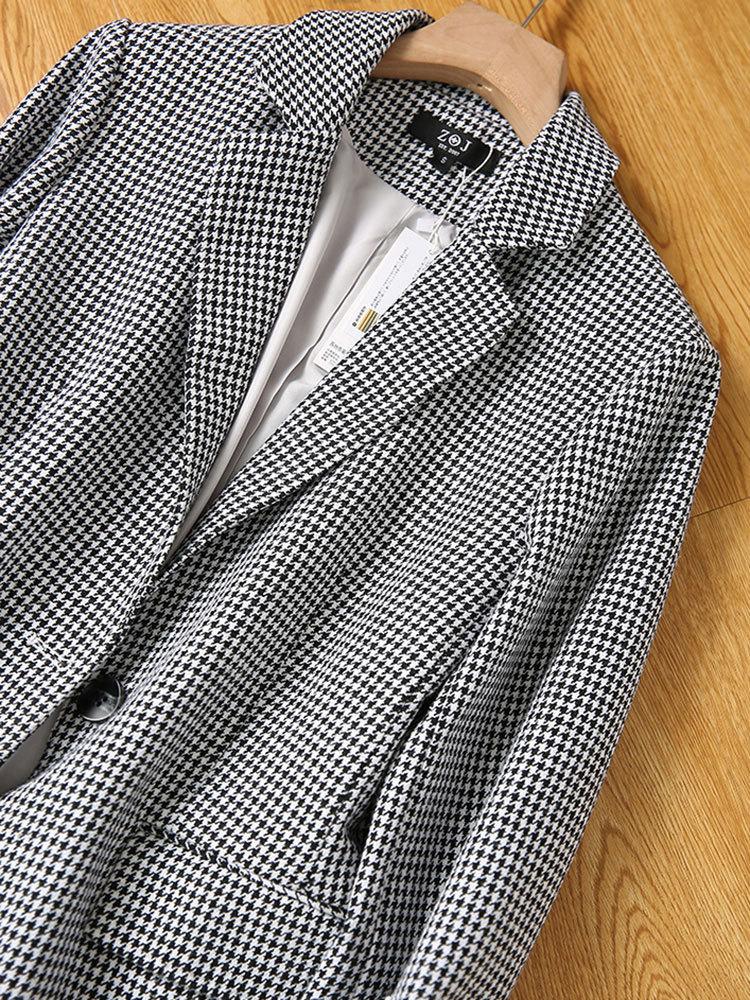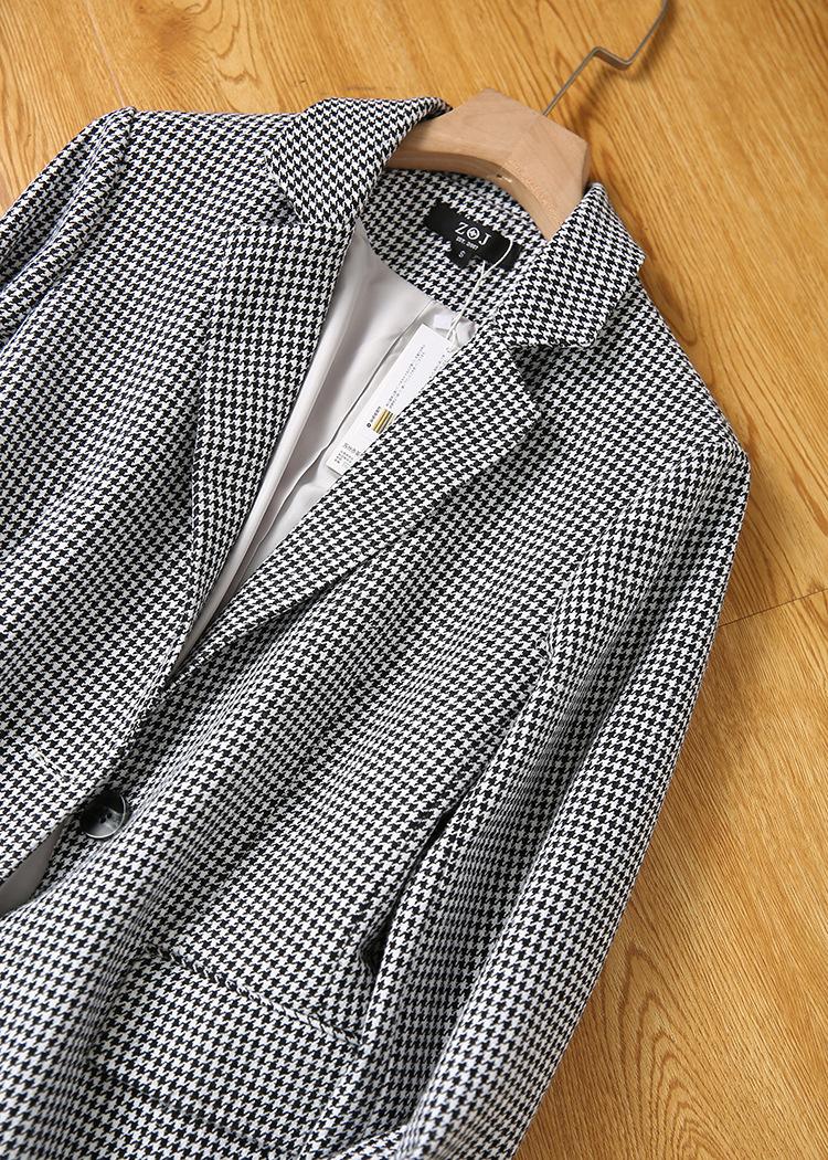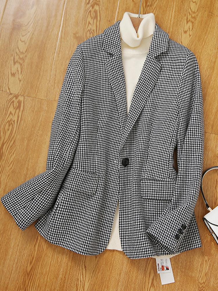 Blazer de Lana Vintage Nuevo Otoño 2025 para Mujer, Chaqueta de Lana a Cuadros para Mujer, Traje Pequeño Elegante para Mujer