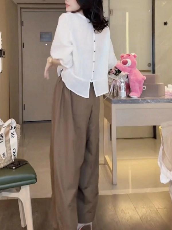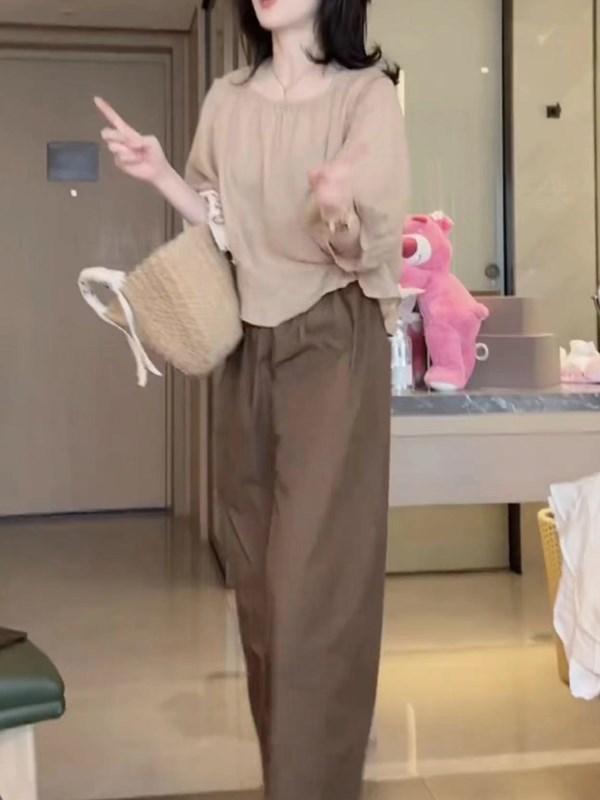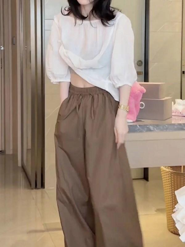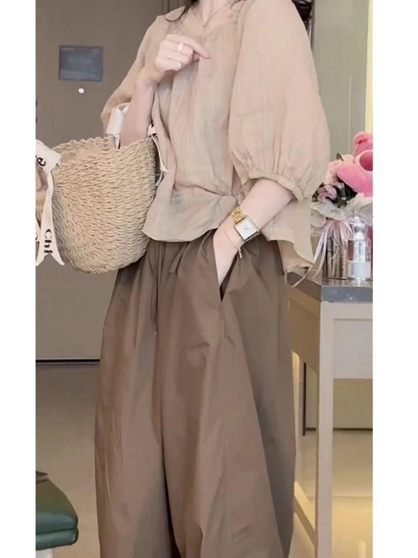 24267 Gran Amor Meiyuan 2025 Verano Nuevo Top Manga Linterna Abertura Trasera Casual Pantalones Anchos Moda