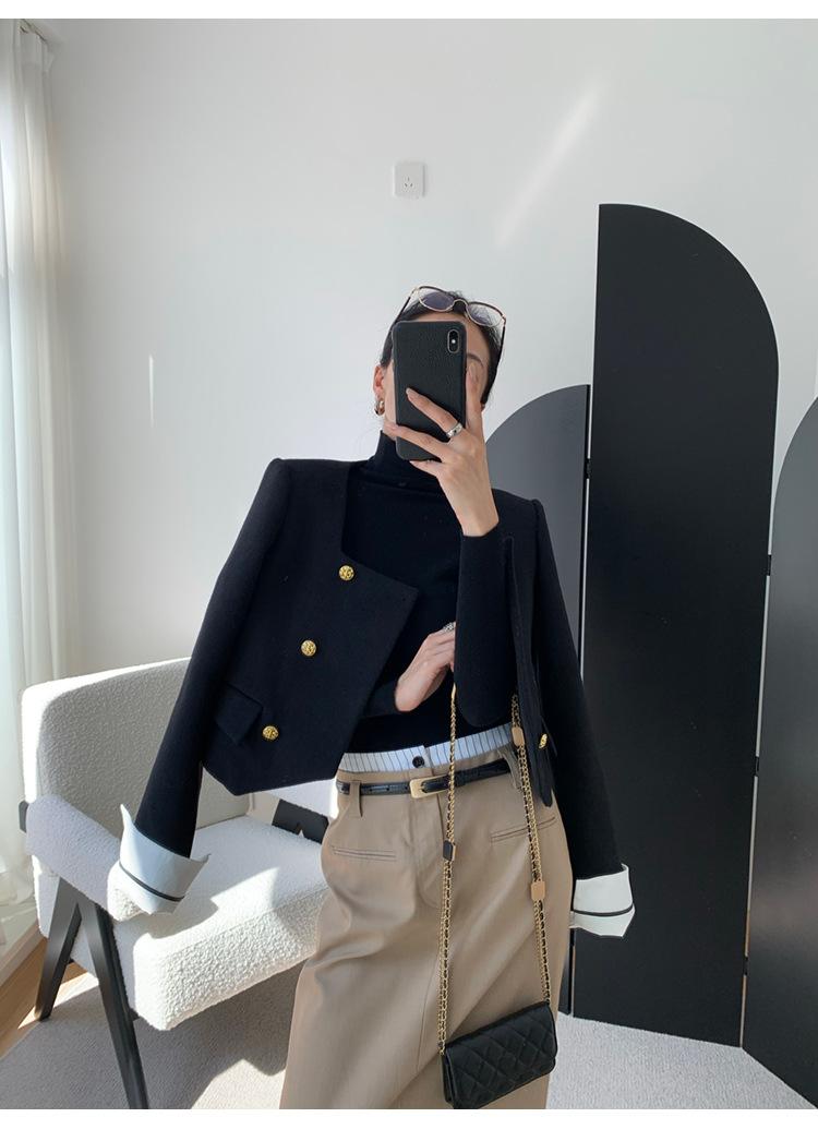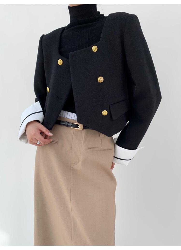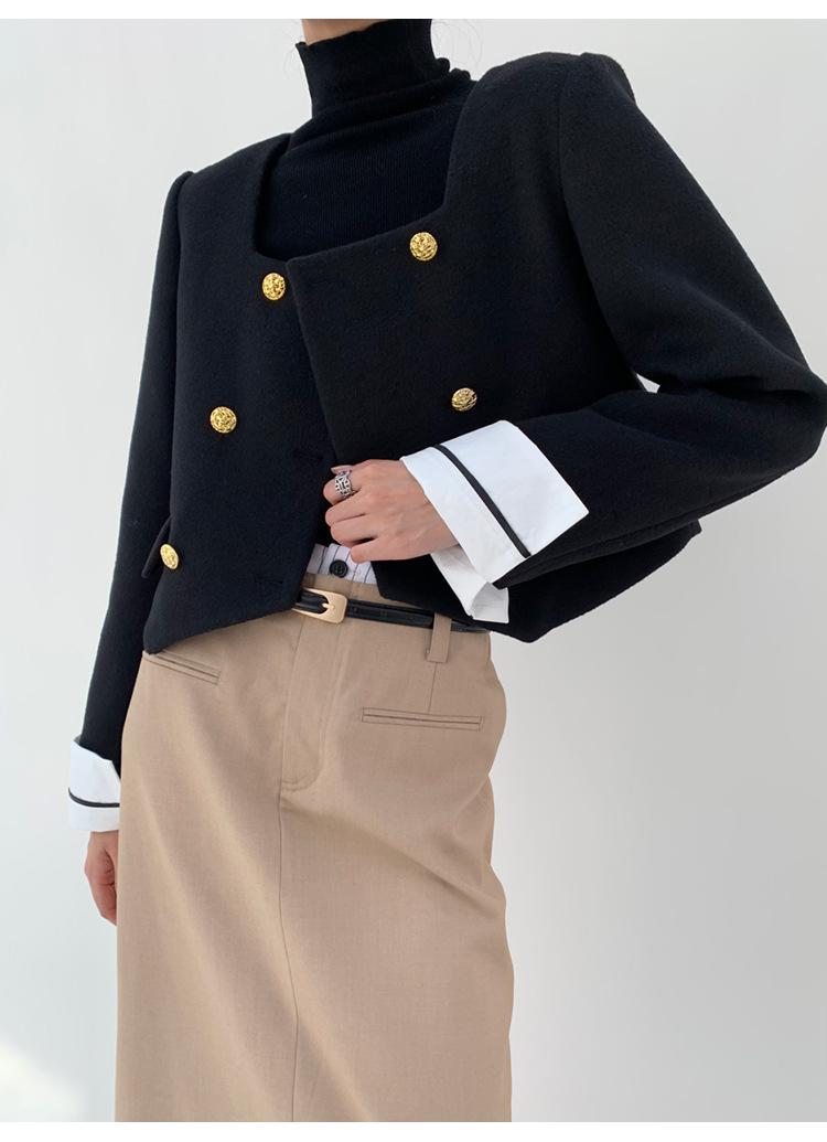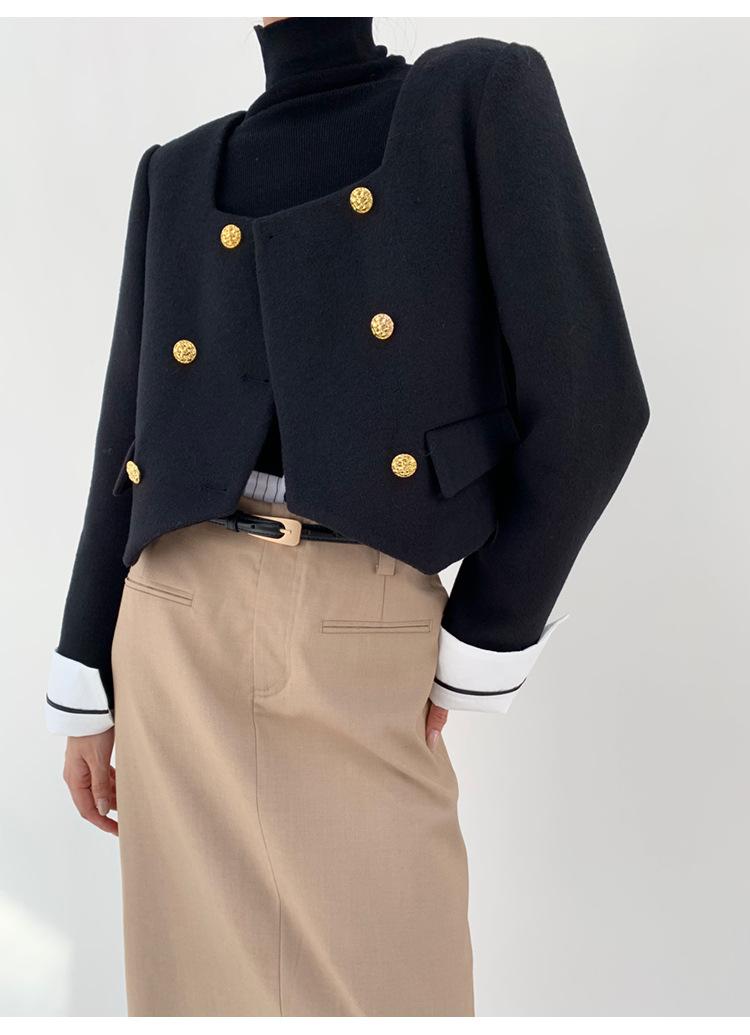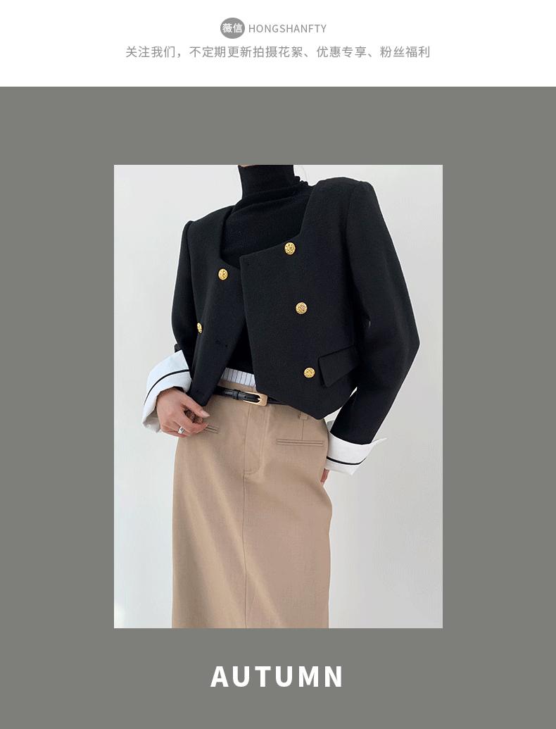 Hongshirt 2025 Otoño Nuevo Chaqueta Estilo Hermana Real Temperamento Diseño de Color en Contraste Temperamento Urbano Traje Cuello Cuadrado para Mujer