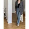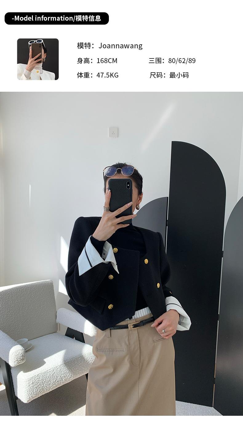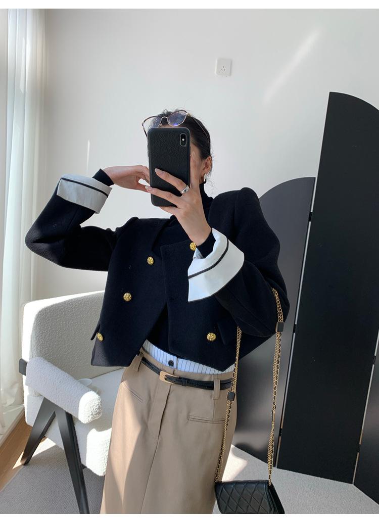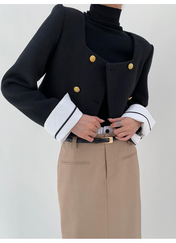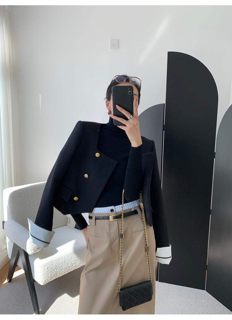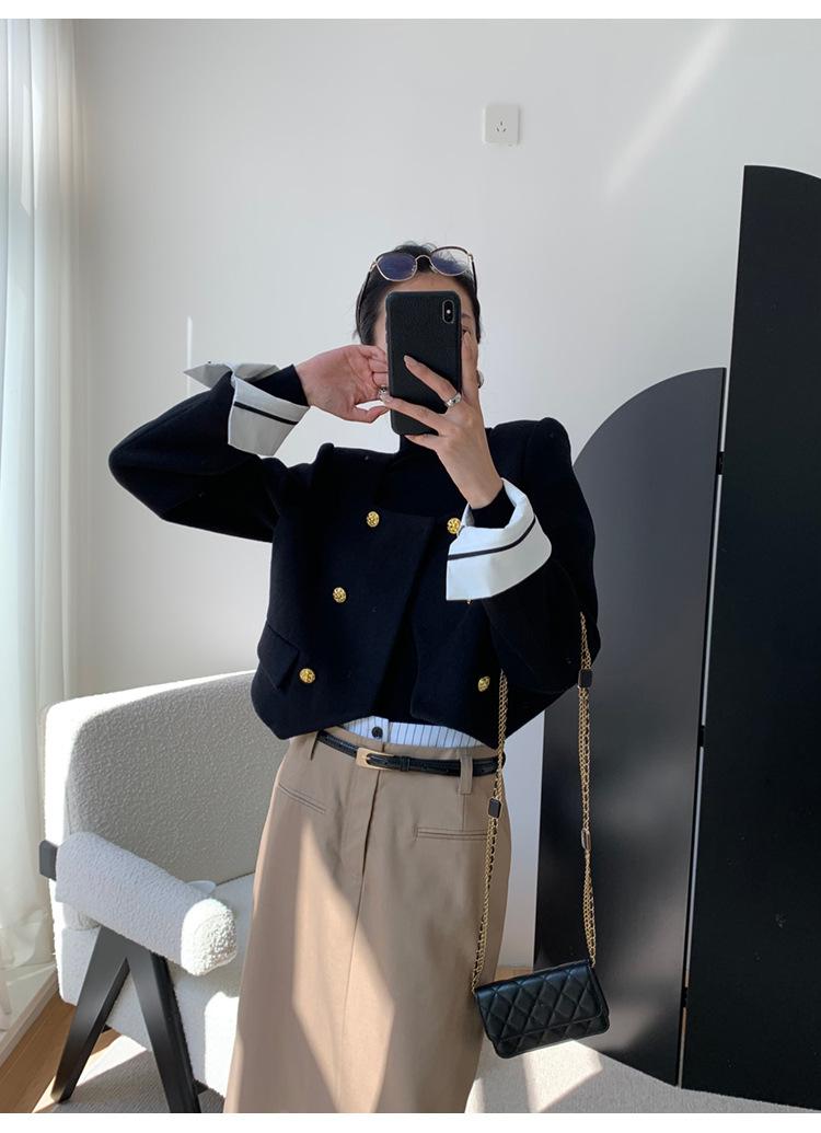Hongshirt 2025 Otoño Nuevo Chaqueta Estilo Hermana Real Temperamento Diseño de Color en Contraste Temperamento Urbano Traje Cuello Cuadrado para Mujer