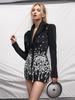 Moda Otoño 2025 Sexy Escote en V Parche de Lentejuelas y Pedrería Diseño de Retazos Vestido Blazer Corto para Mujer