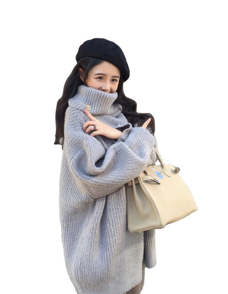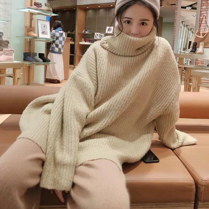 Suéter de Cuello Alto Nuevo de Otoño e Invierno Estilo Coreano para Mujer Jersey Holgado Versátil ins Moderno Grueso Ropa Exterior Suéter Tejido Top