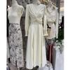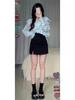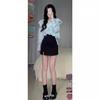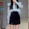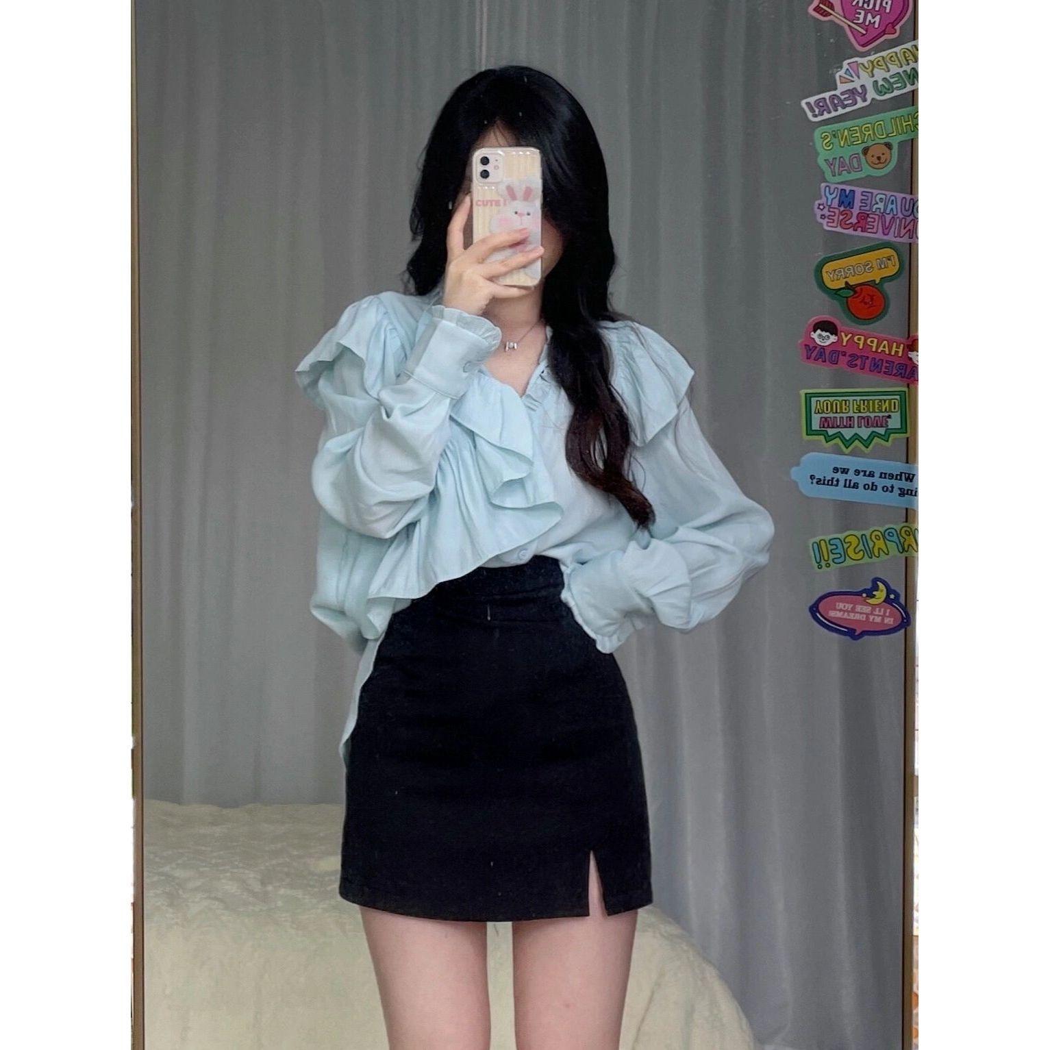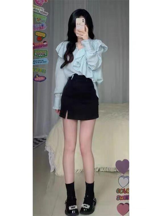 Camisa con Volantes Cuello en V 2025 Diseño Nicho para Mujer Camisa Francesa + Sentido del Diseño Color Puro Falda Corta Traje de Dos Piezas