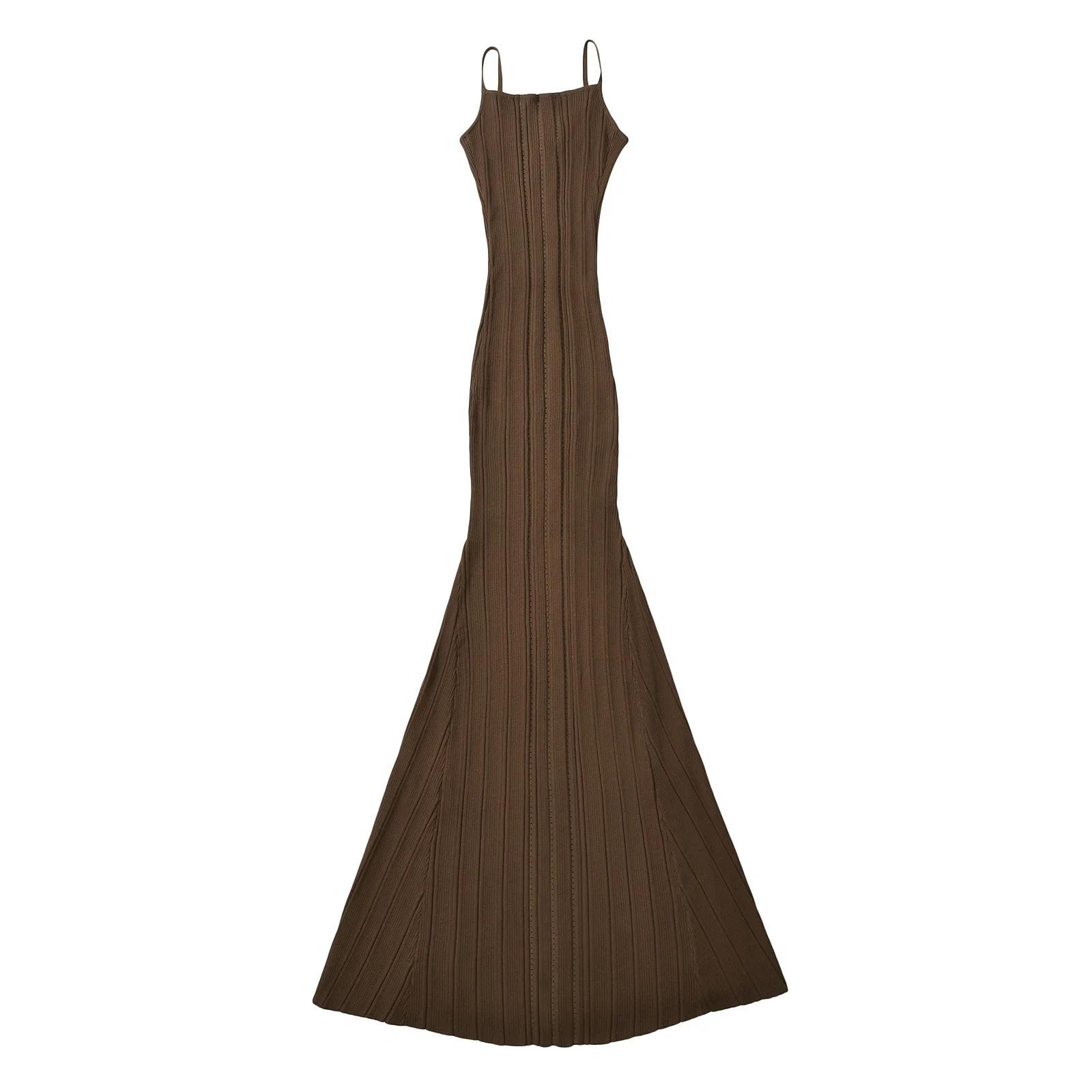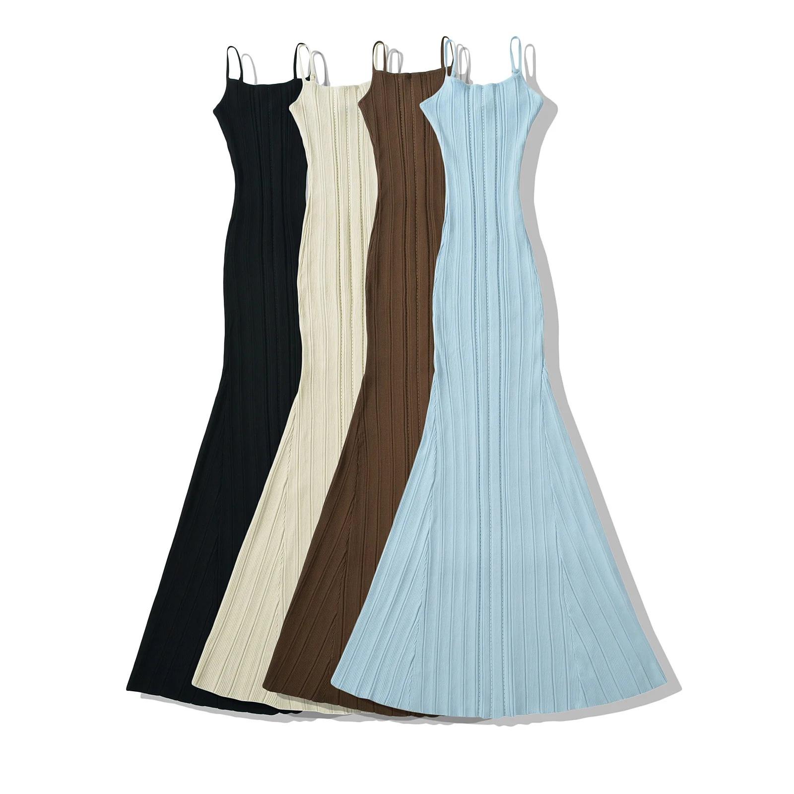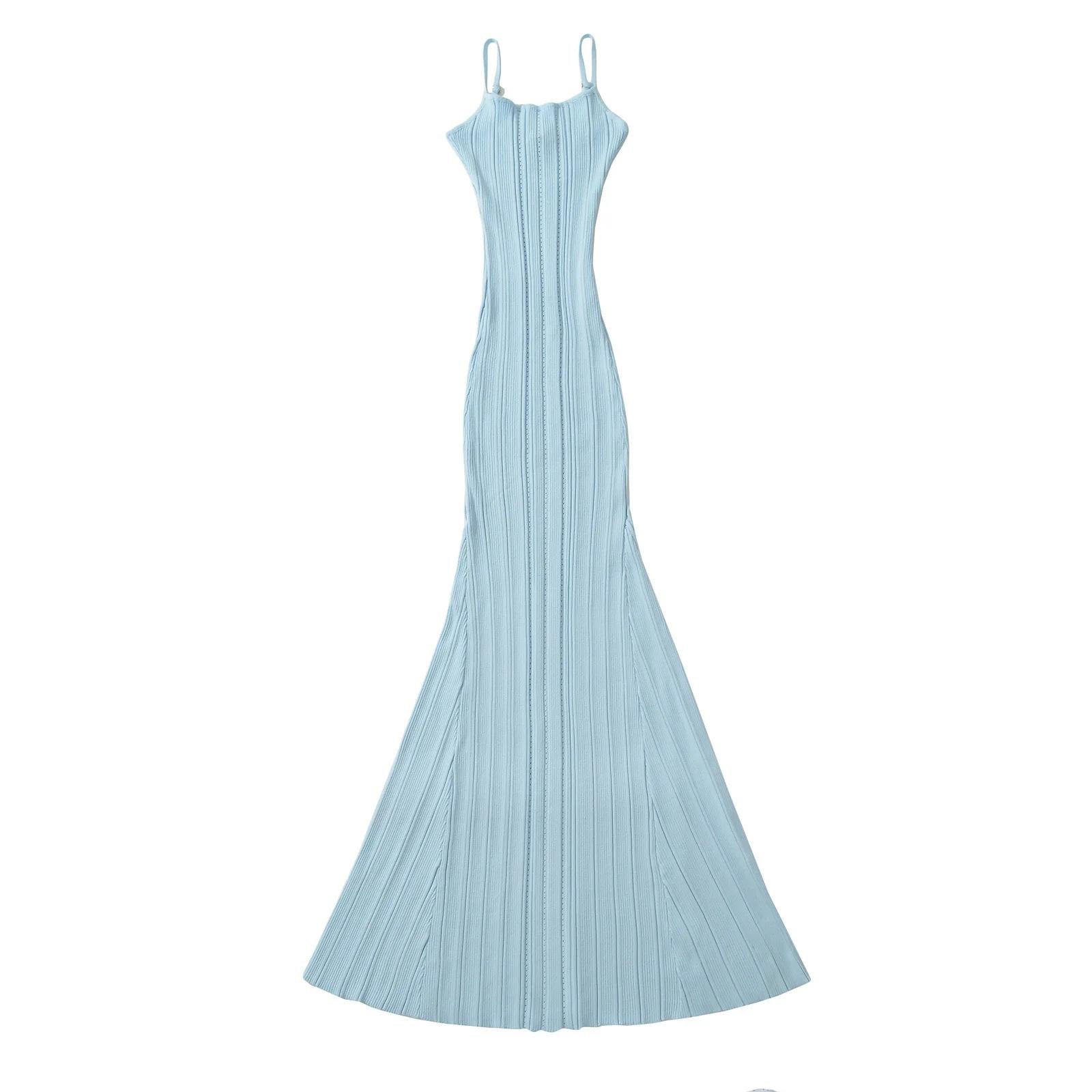 Falda Larga de Punto Elegante Estilo Francés para Mujer Verano Nuevo Cintura Alta Sexy Ajustada Sensación de Textura Cadera Falda de Cola de Pescado