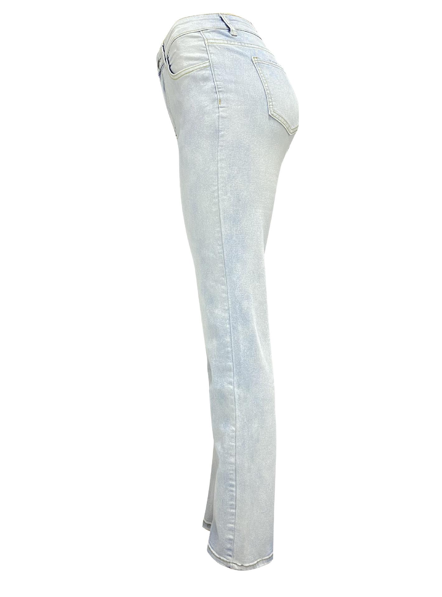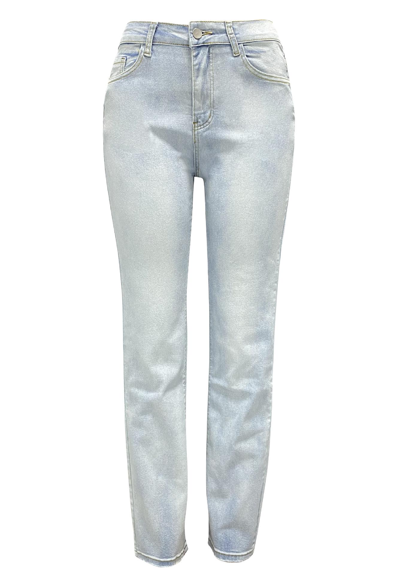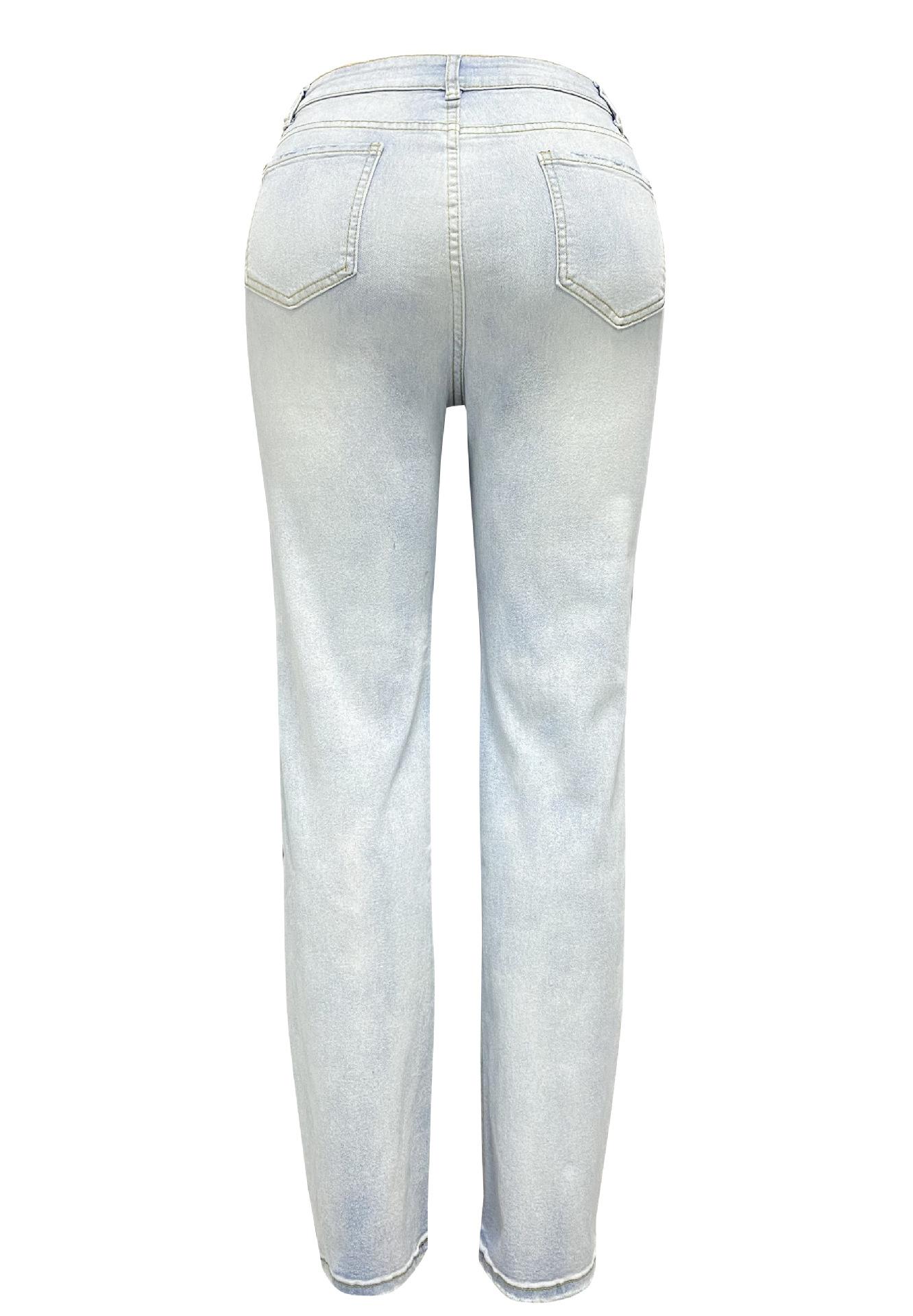 Pantalones vaqueros de cintura alta de color claro para mujer, elegantes pantalones rectos adelgazantes para uso diario, primavera y otoño, transfronterizos europeos y americanos.