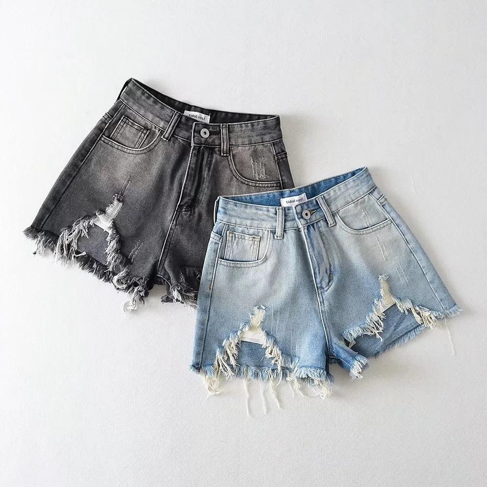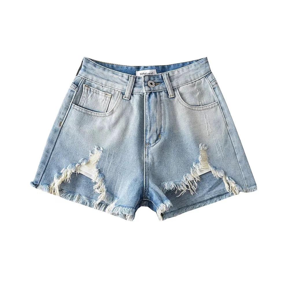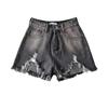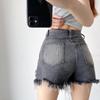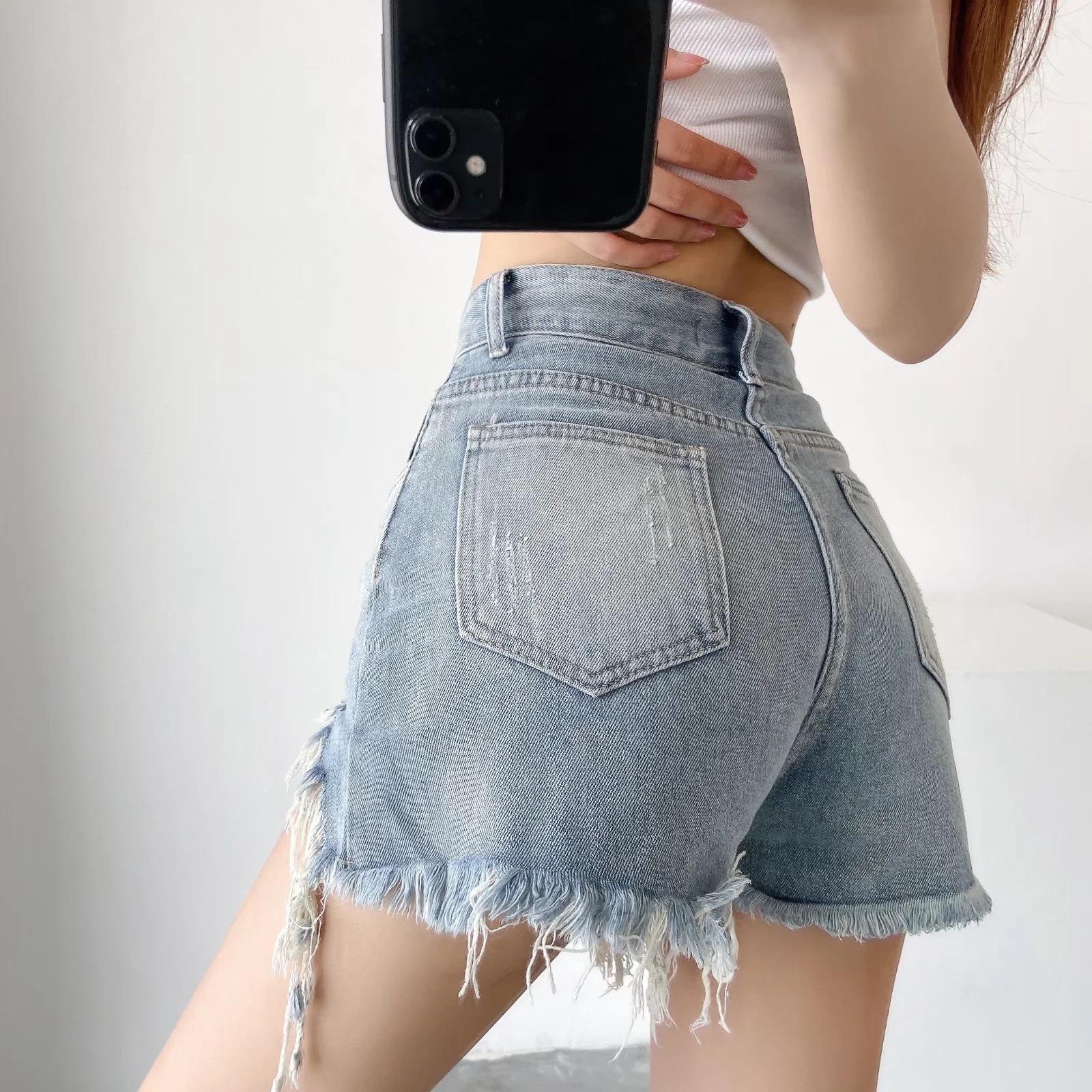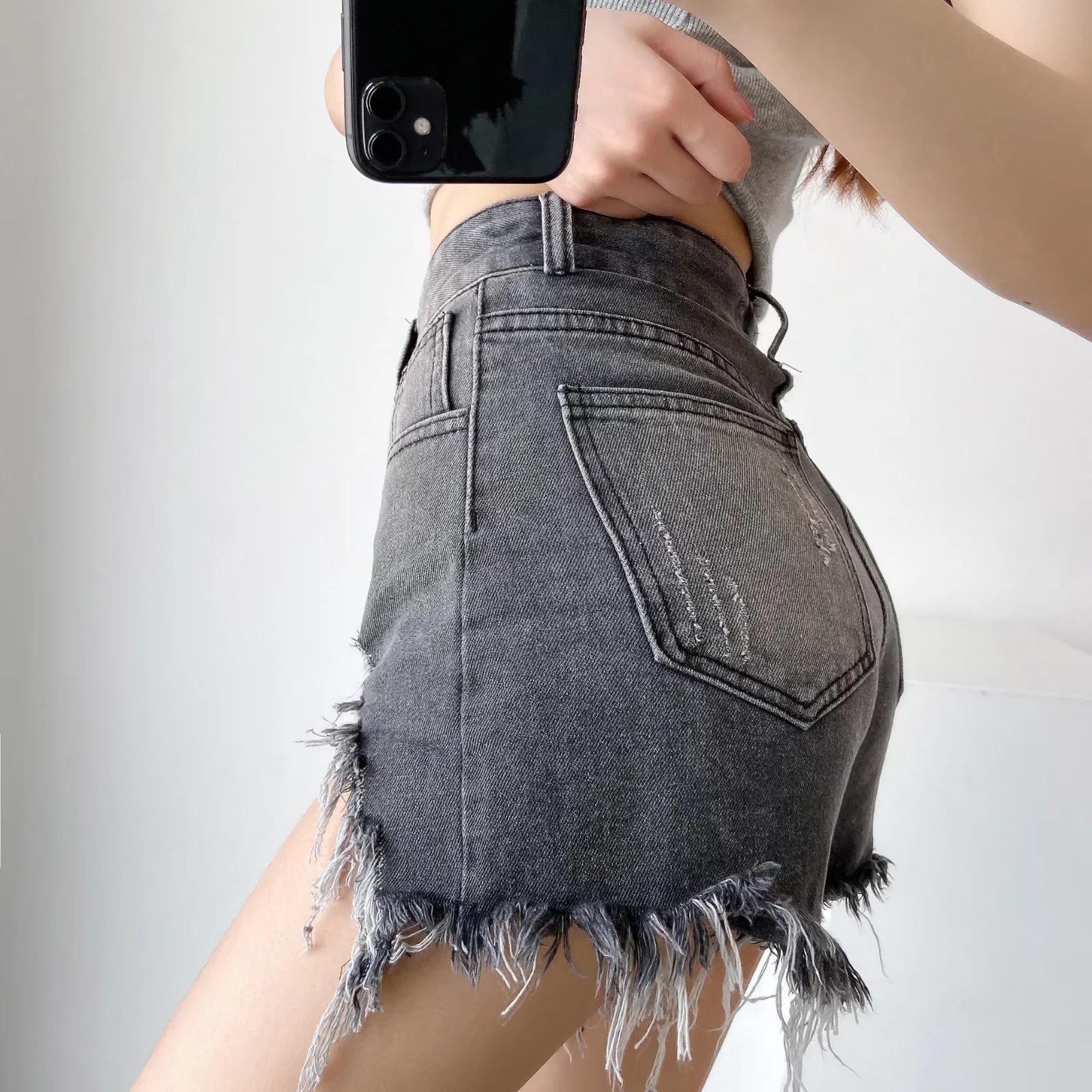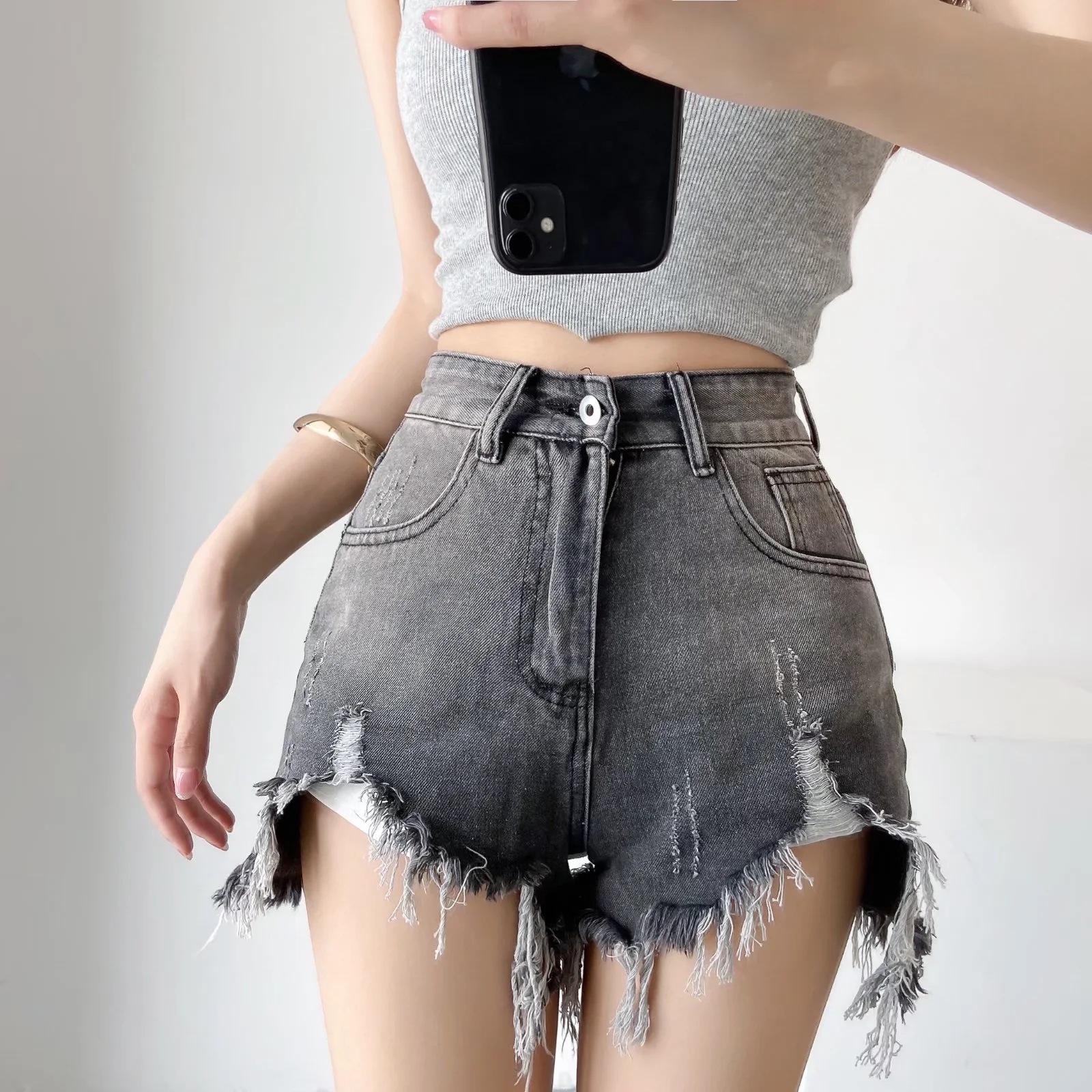 Pantalones cortos vaqueros rotos para mujer, estilo europeo y americano, cintura alta, holgados, pierna ancha, corte A, con borlas, sexys, para verano de 2022