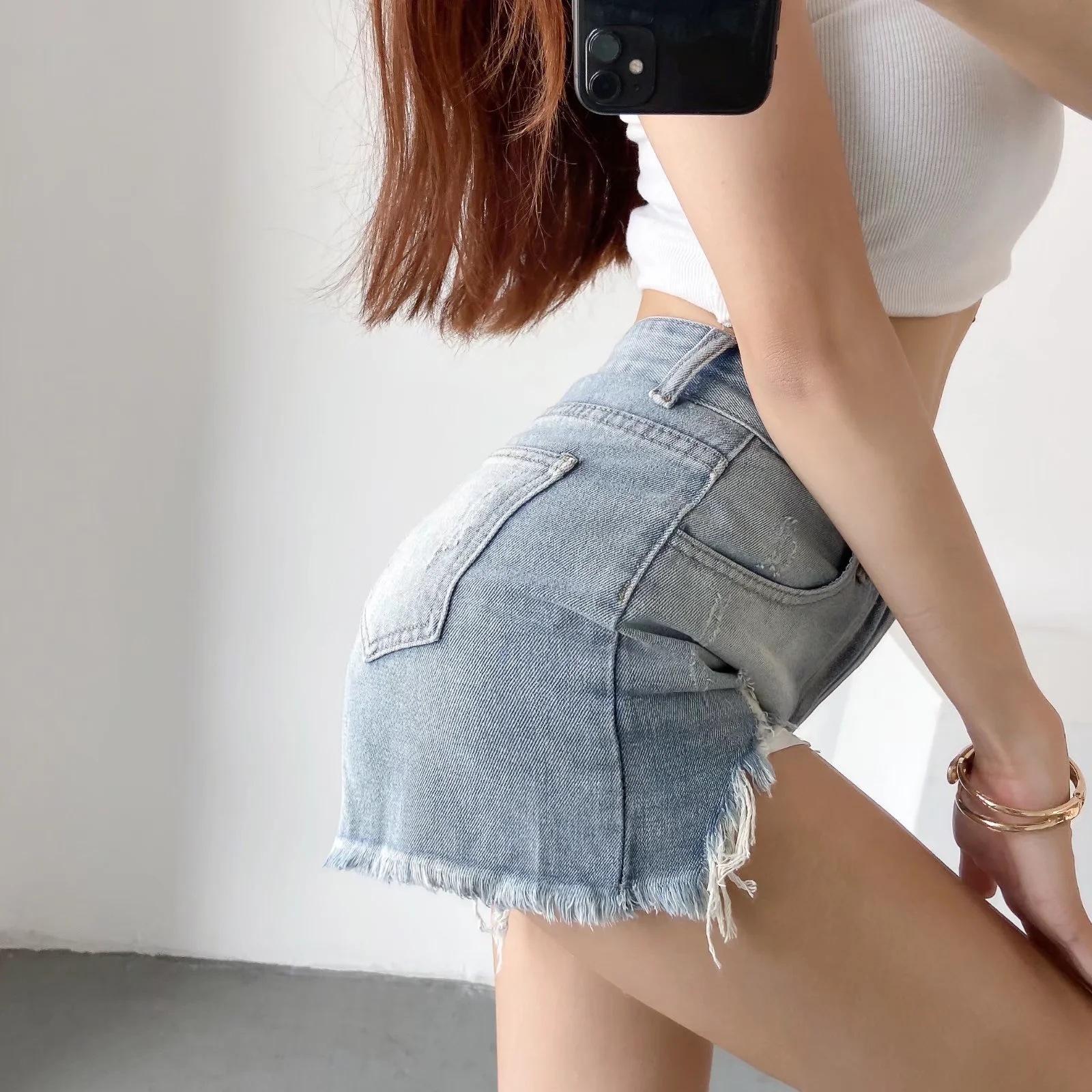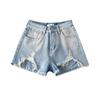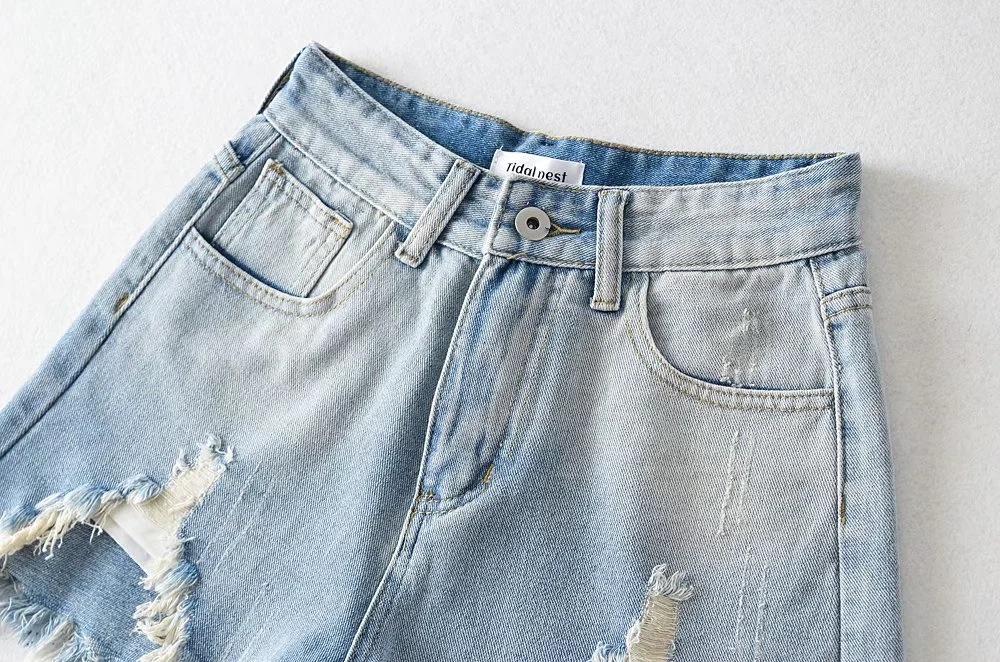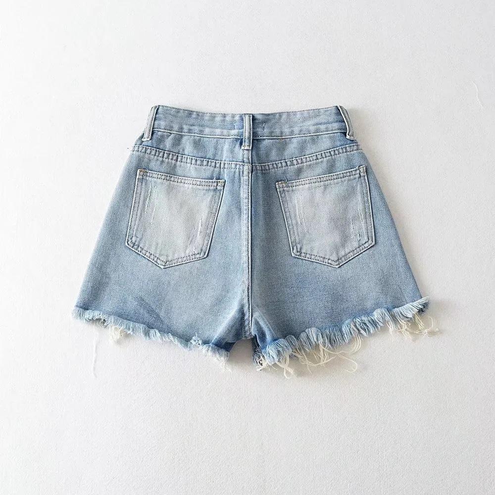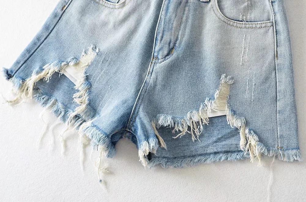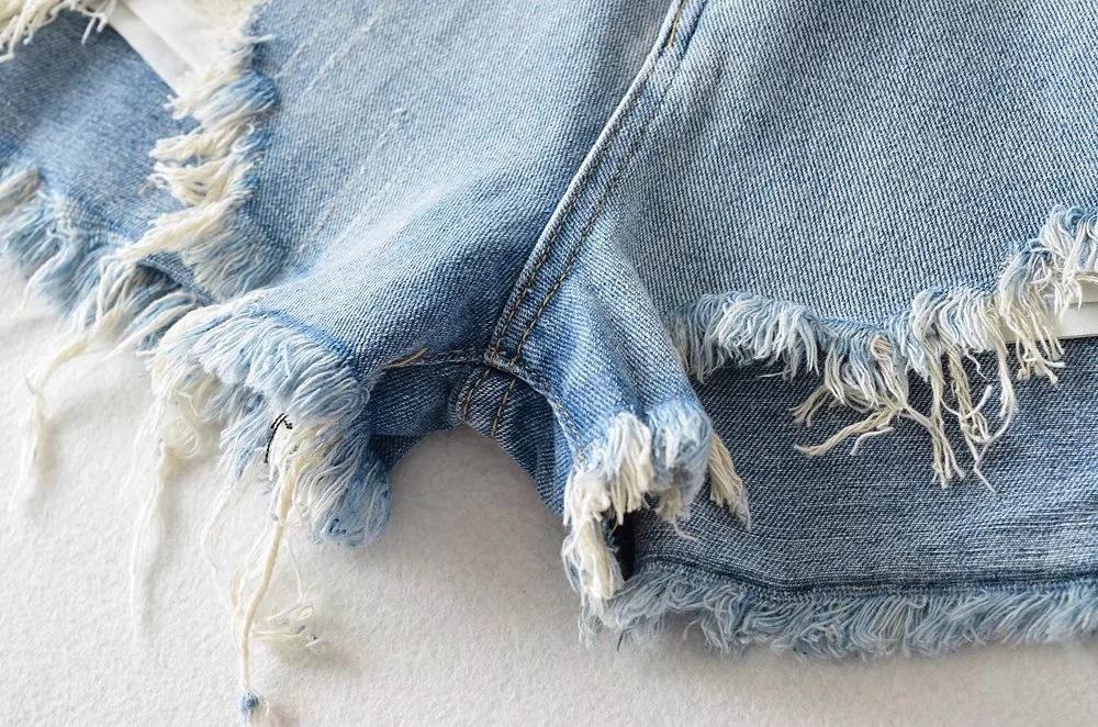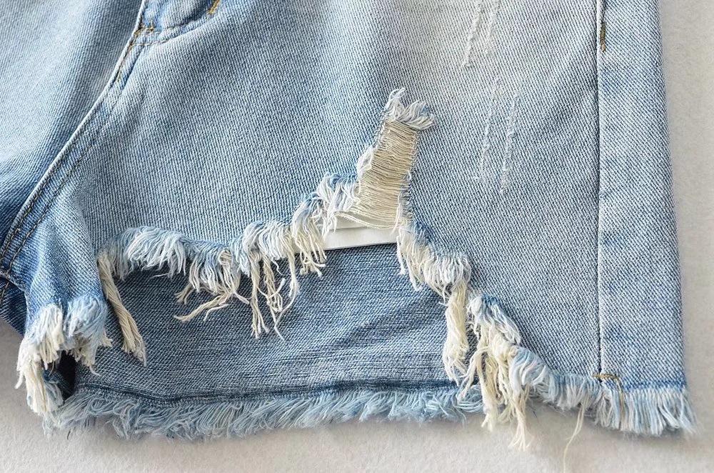 Pantalones cortos vaqueros rotos para mujer, estilo europeo y americano, cintura alta, holgados, pierna ancha, corte A, con borlas, sexys, para verano de 2022