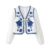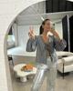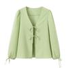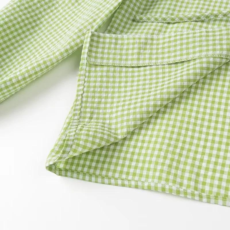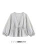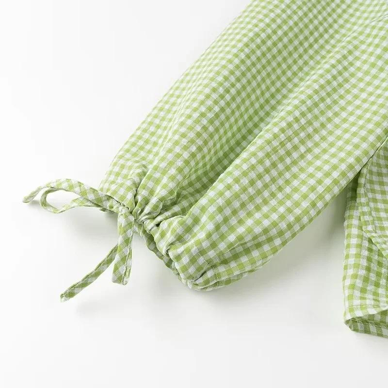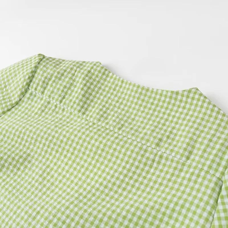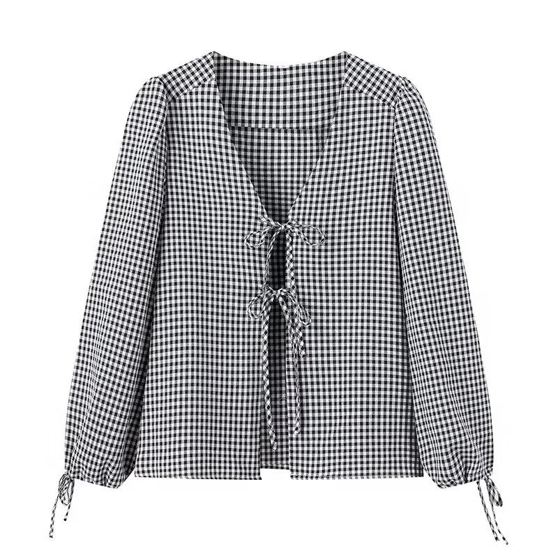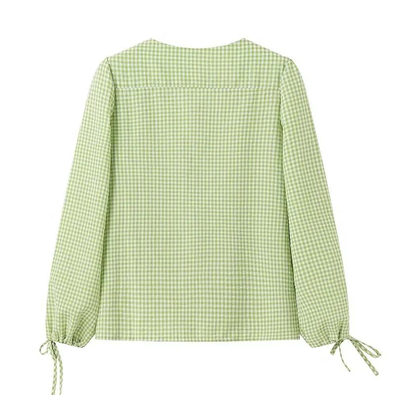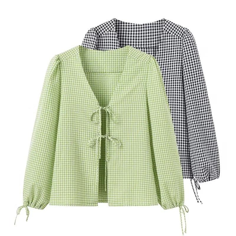 Ropa Europea y Americana Transfronteriza 2024 Nueva Moda Versátil Cuello en V Cuadros Encaje Casual Holgada Look Adelgazante Camisa de Manga Larga