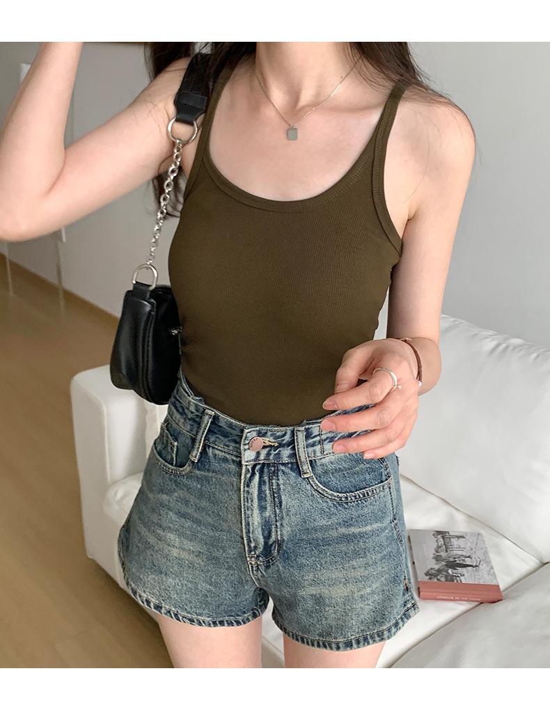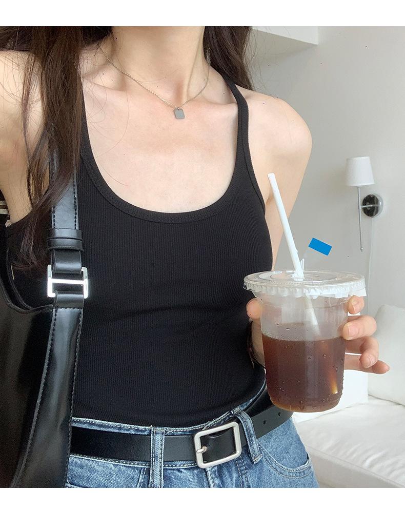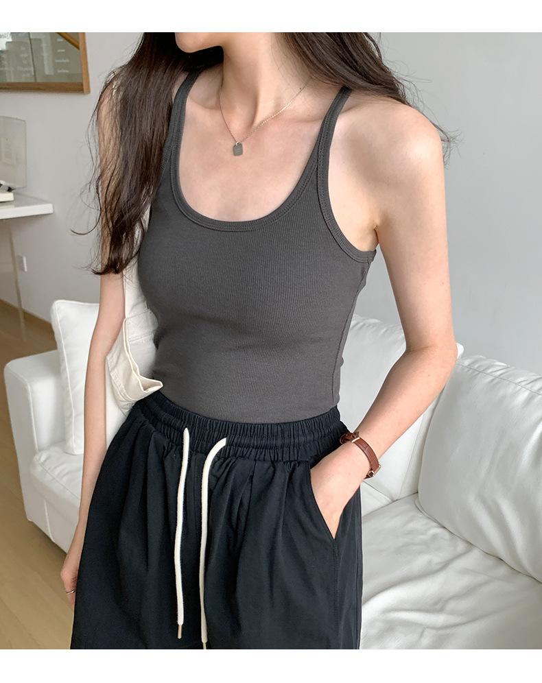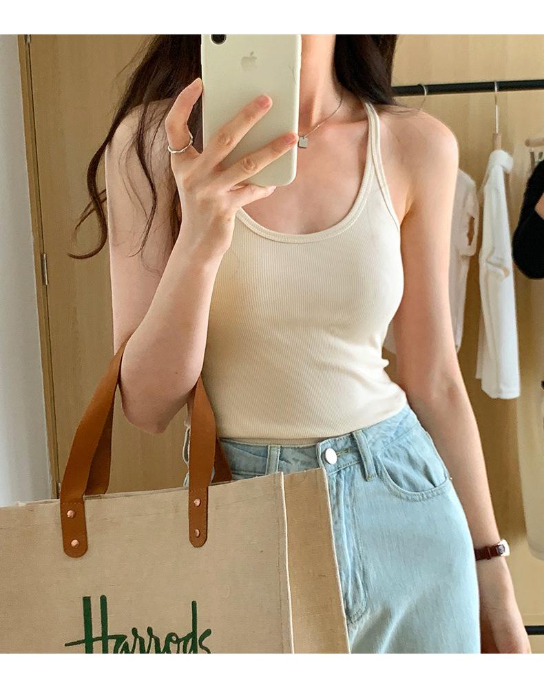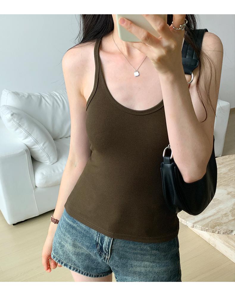 Sexy Camiseta de Tirantes Tejida Spice Girl para Mujer Ajustada Verano 2024 Nuevo Diseño Sensual Traje Interior Top Básico