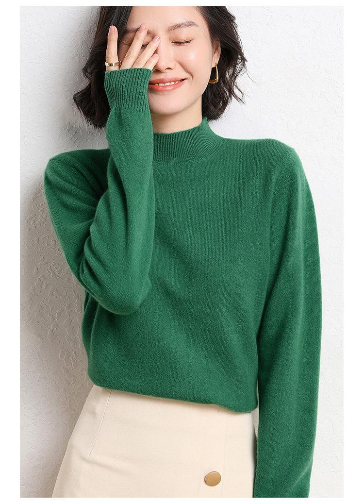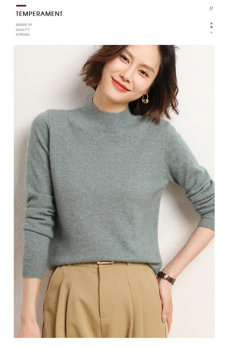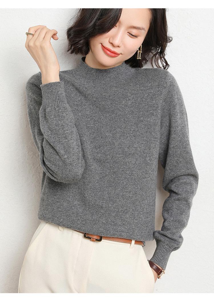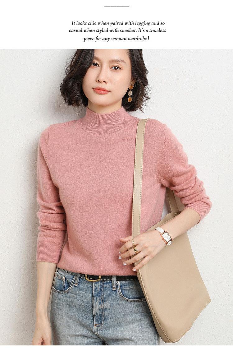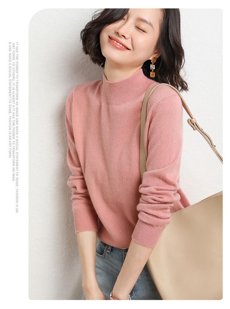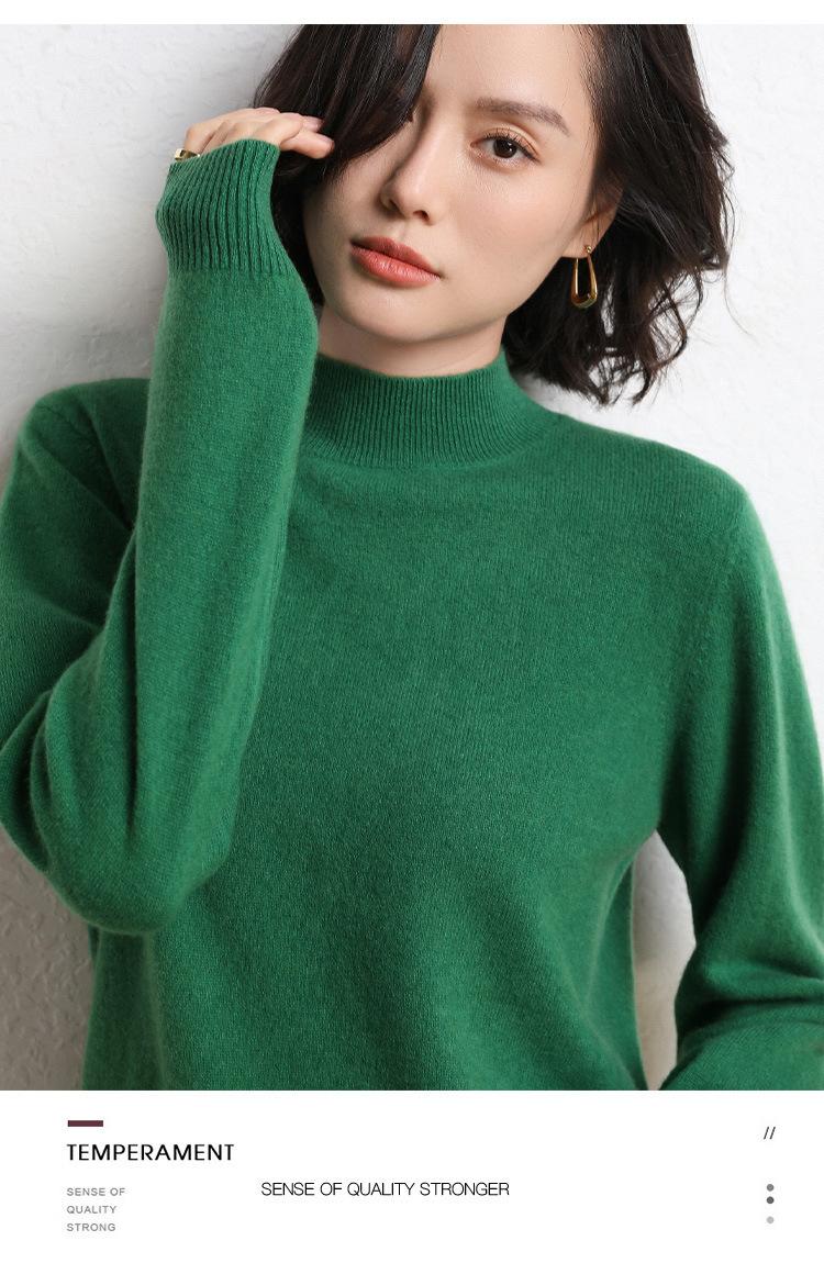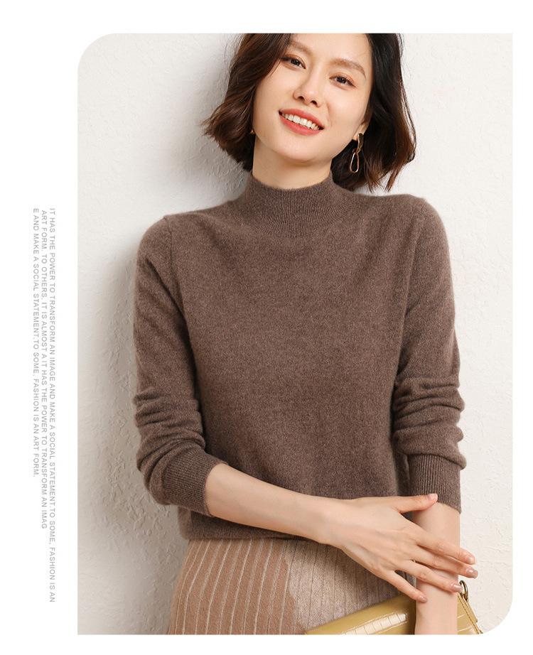 Suéter de cuello alto medio para mujer, estilo nuevo, grueso, con base interior, de manga larga, tejido holgado, para otoño e invierno.