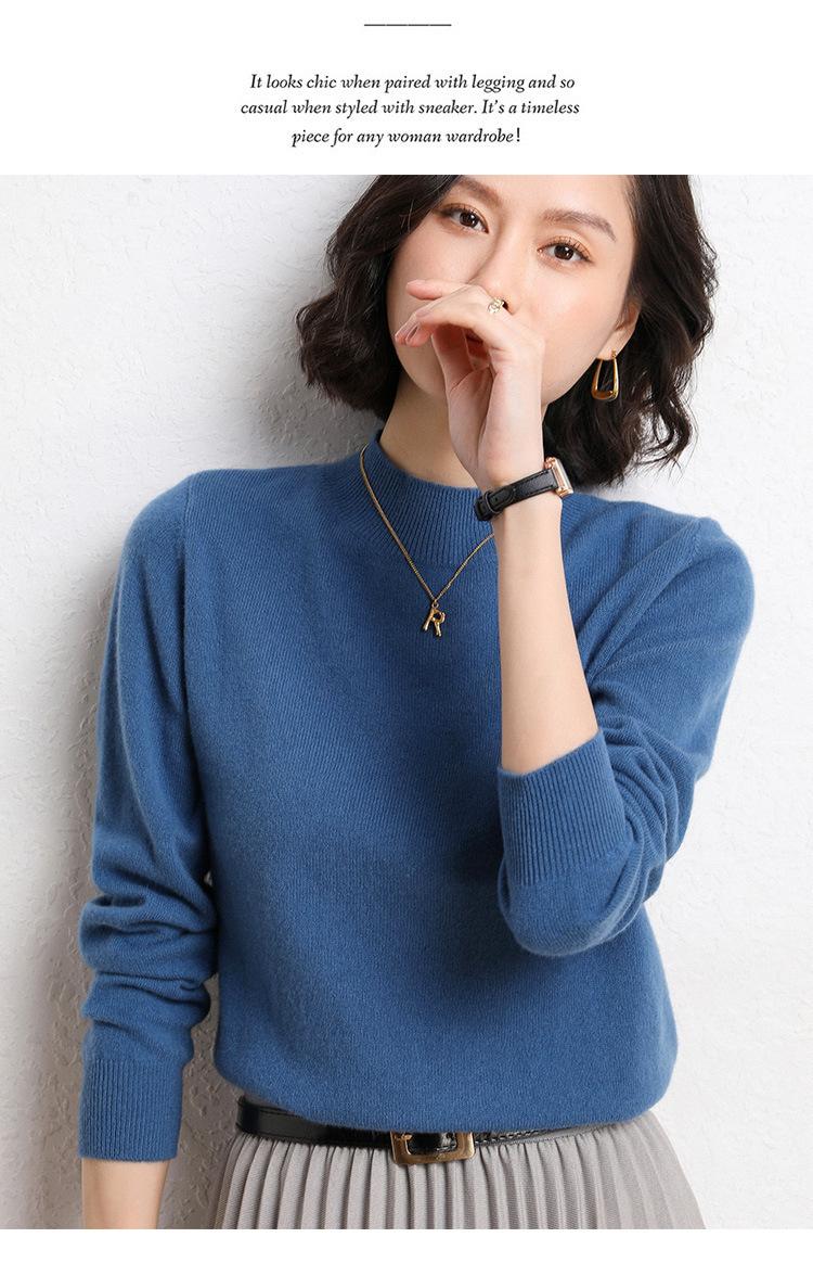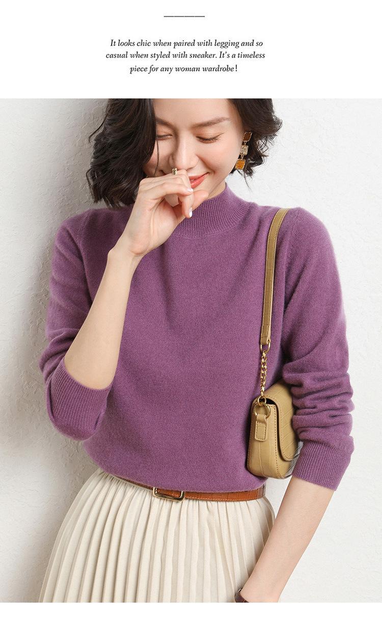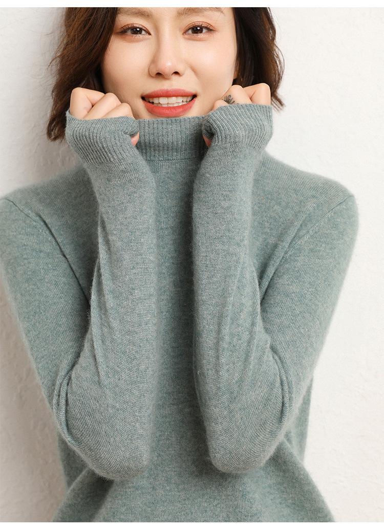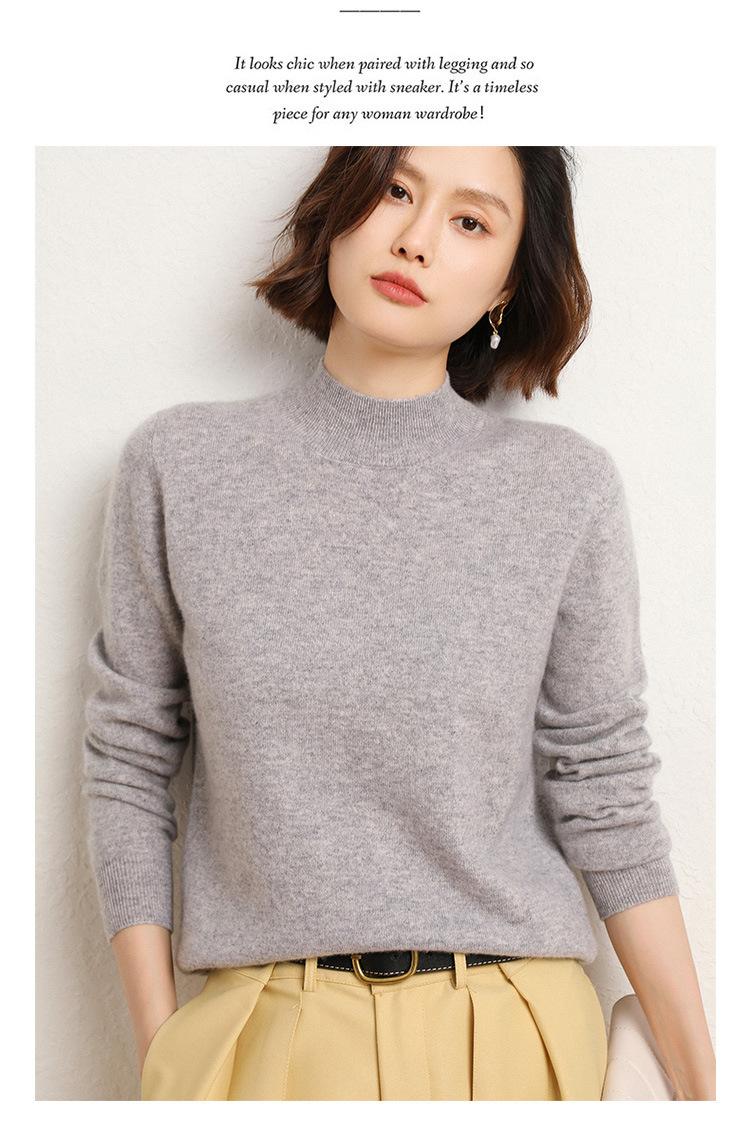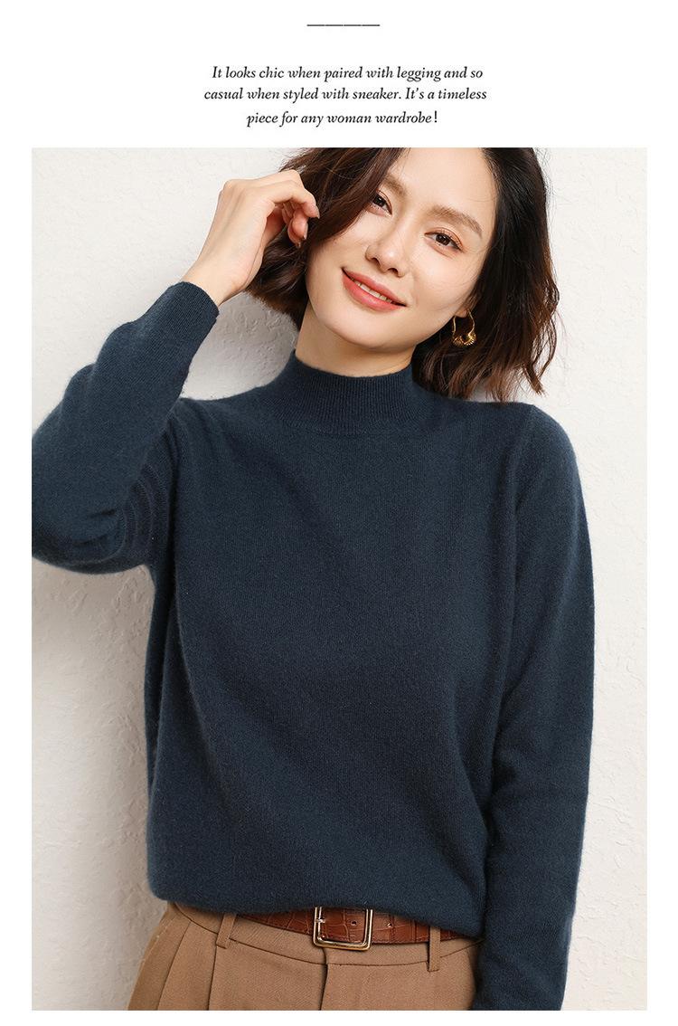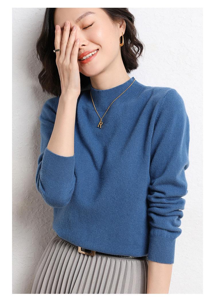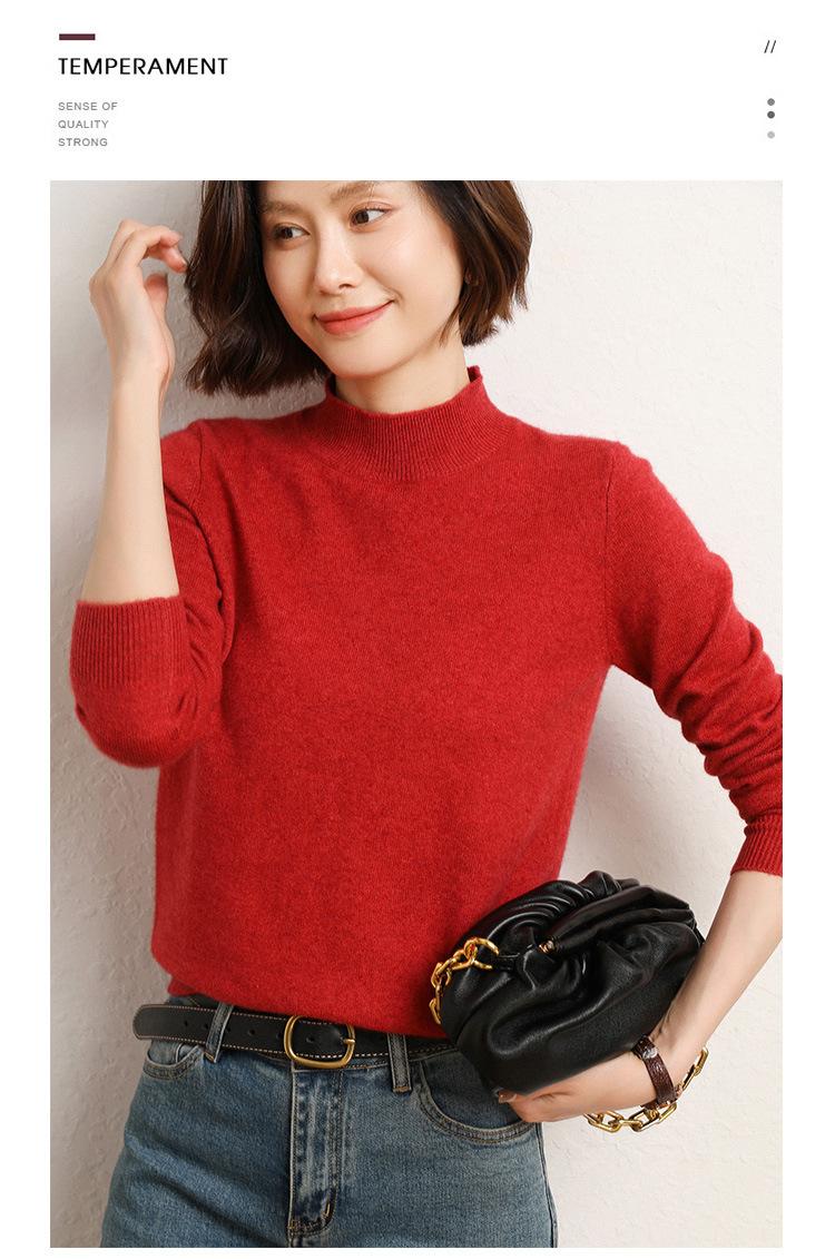 Suéter de cuello alto medio para mujer, estilo nuevo, grueso, con base interior, de manga larga, tejido holgado, para otoño e invierno.
