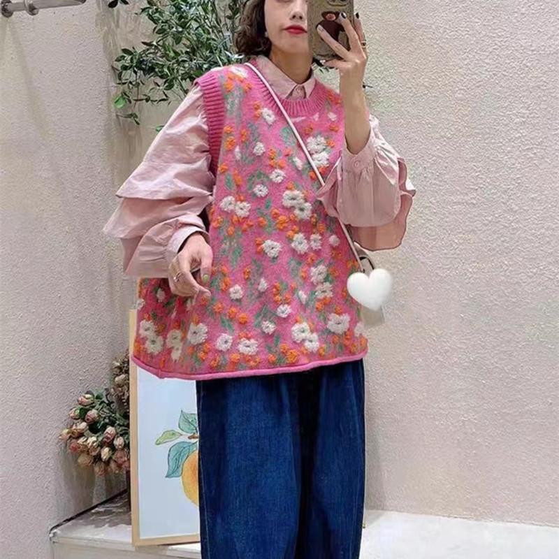 Chaleco de punto suave y encerado sin mangas para mujer, estilo coreano, holgado, de talla grande, para primavera y otoño de 2024
