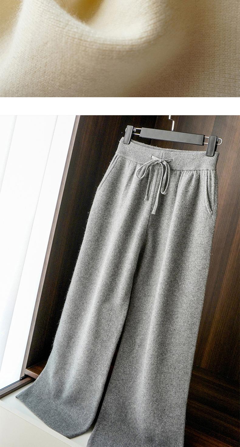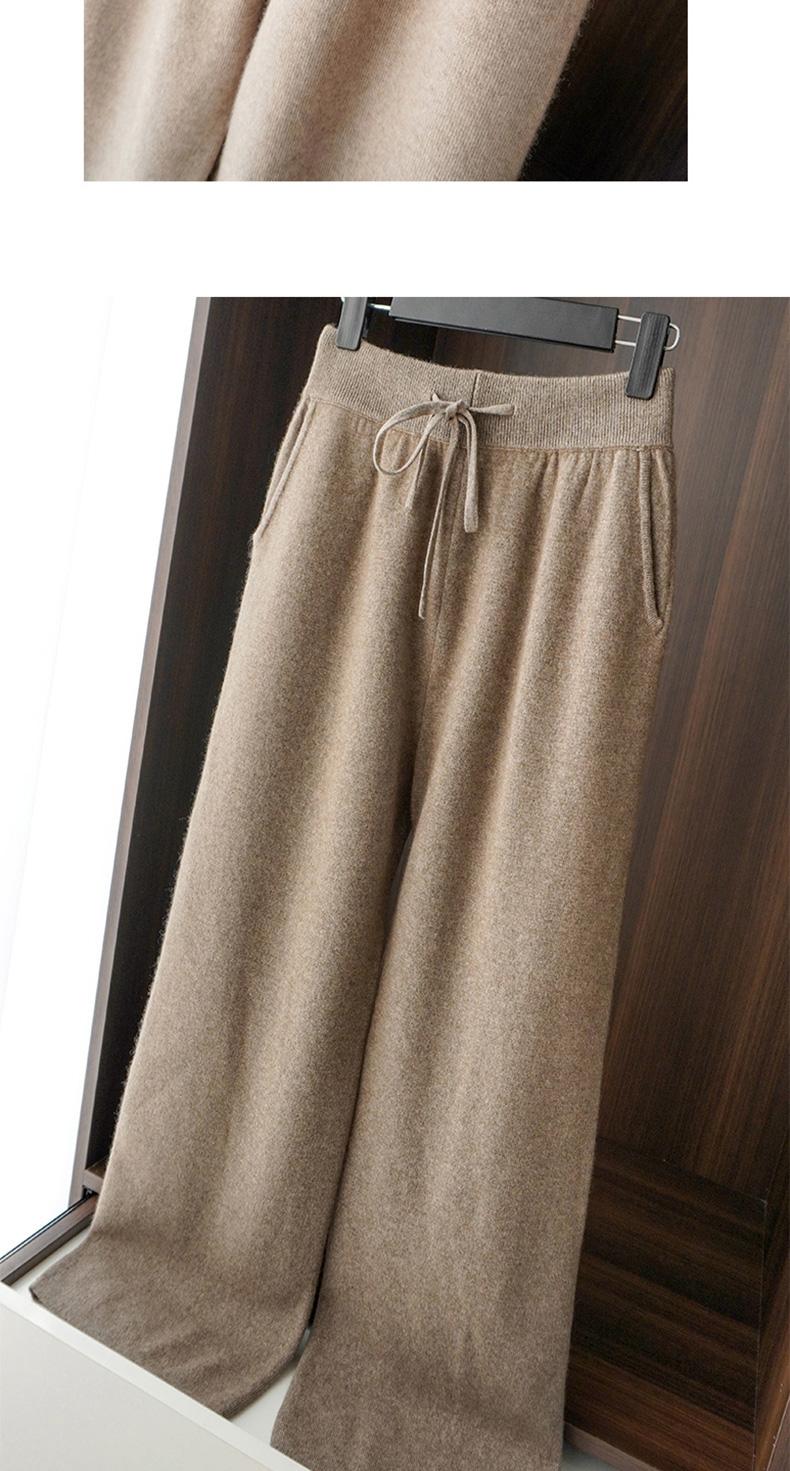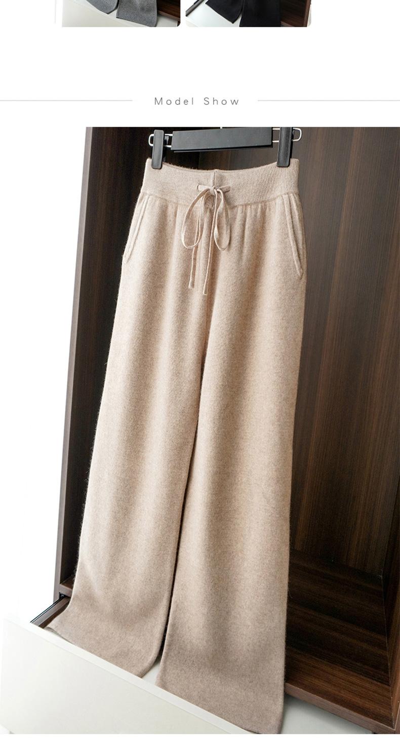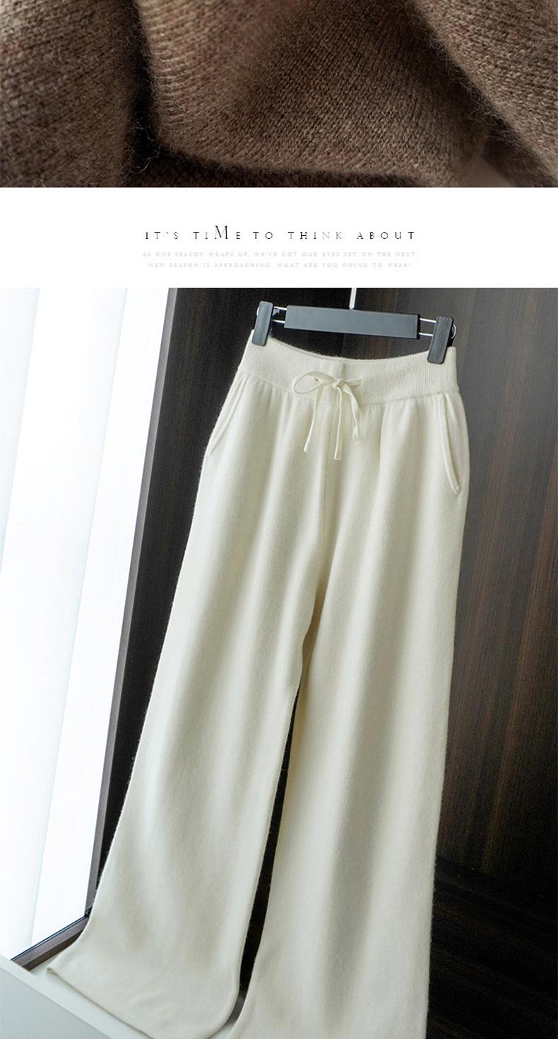 Pantalones anchos de lana de punto grueso para mujer, informales, de cachemir, de cintura alta, holgados y rectos, para otoño e invierno