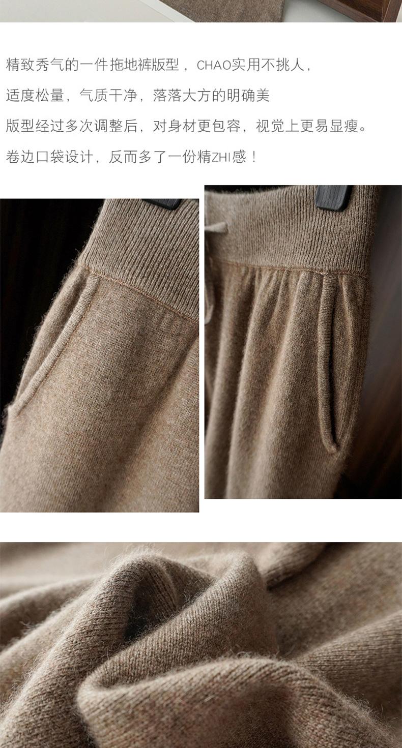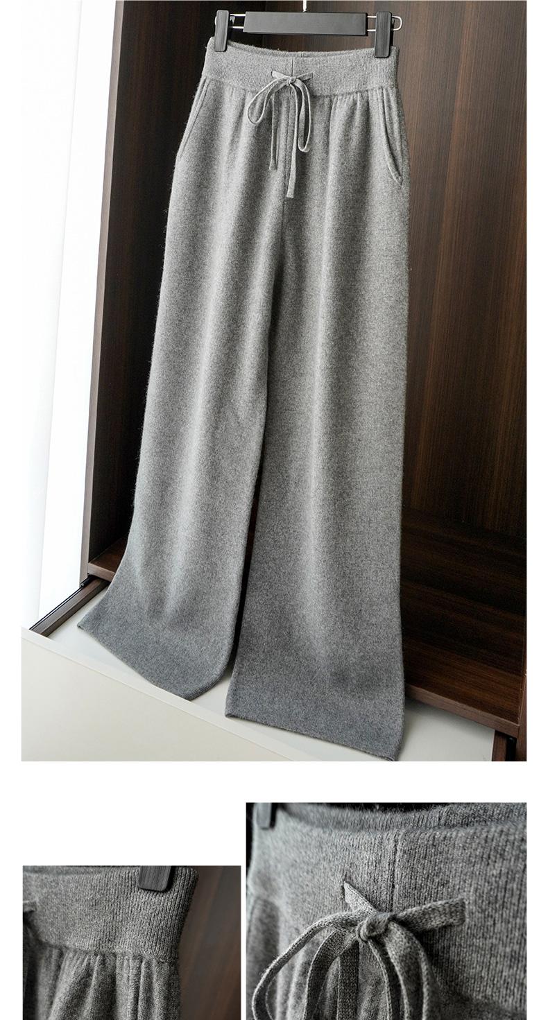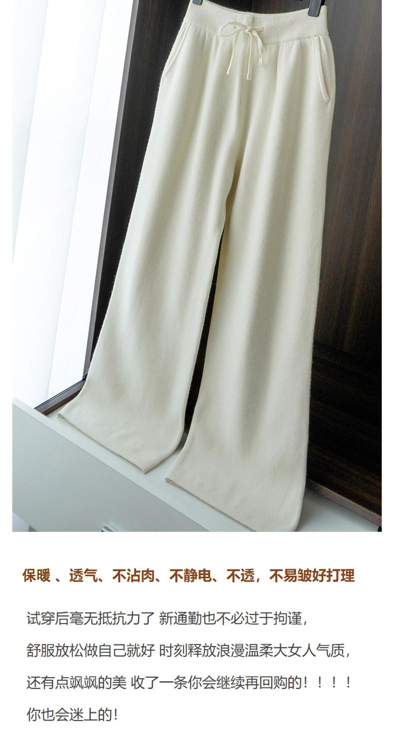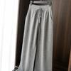 Pantalones anchos de lana de punto grueso para mujer, informales, de cachemir, de cintura alta, holgados y rectos, para otoño e invierno