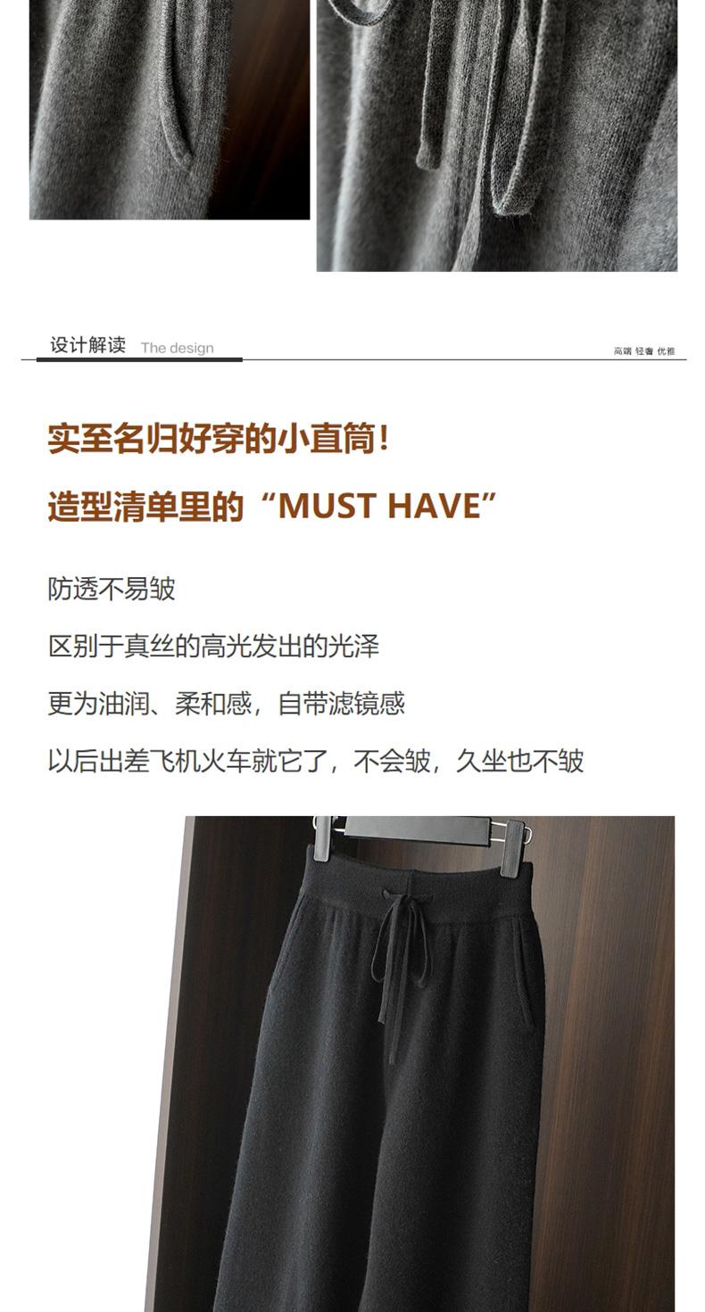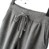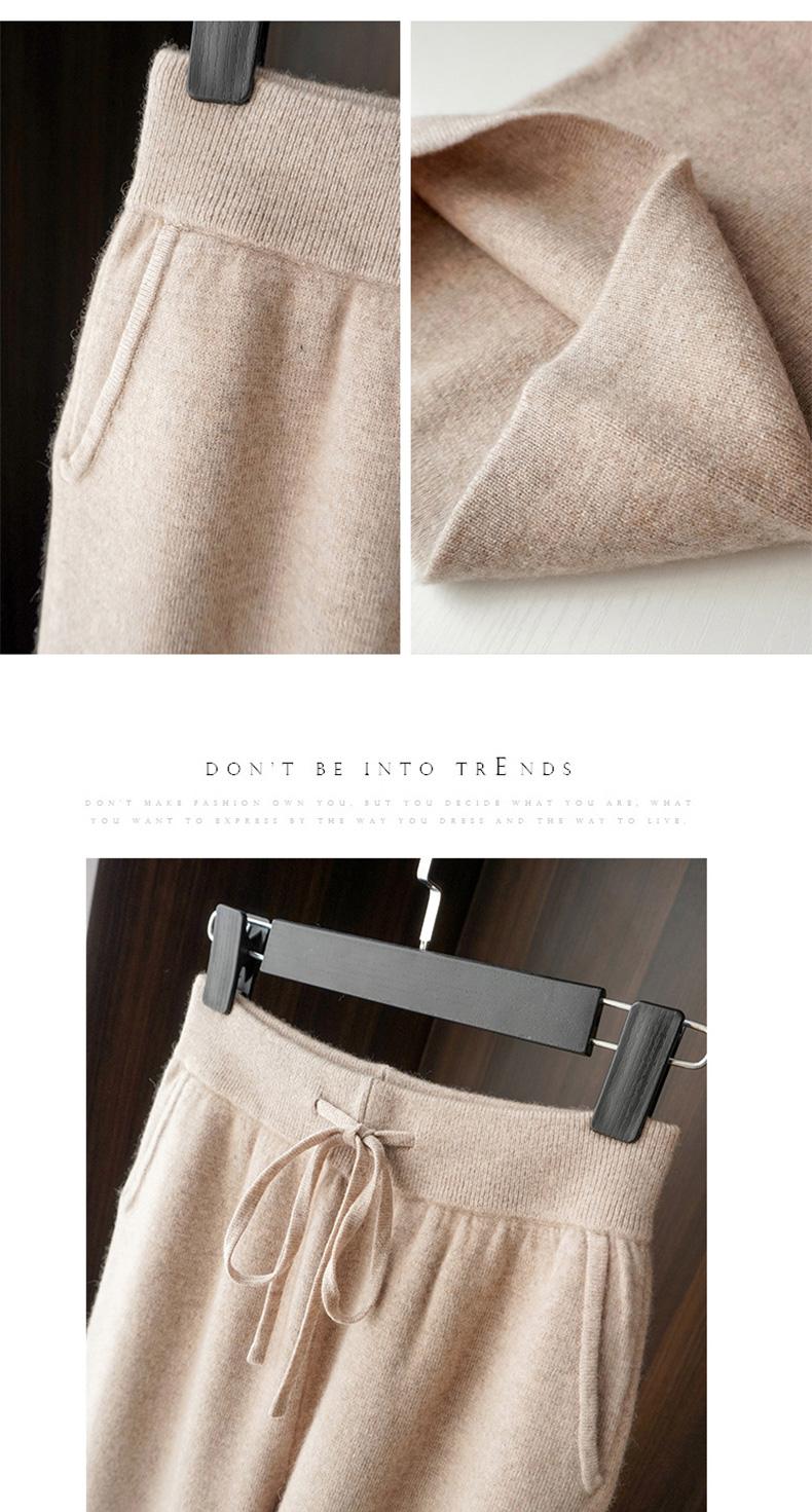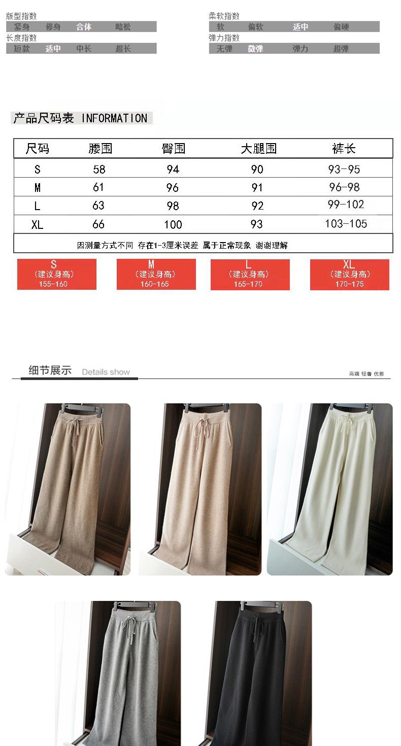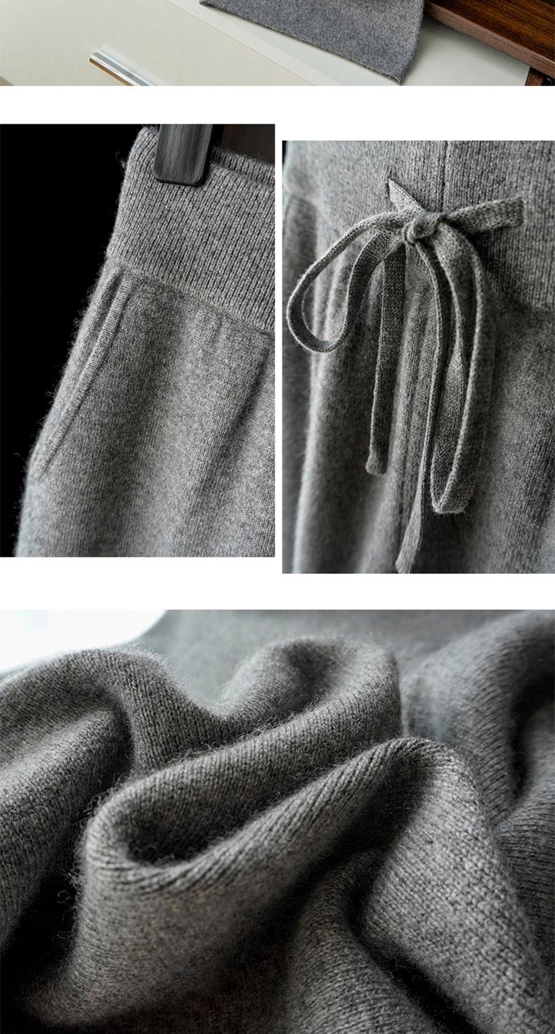 Pantalones anchos de lana de punto grueso para mujer, informales, de cachemir, de cintura alta, holgados y rectos, para otoño e invierno