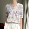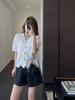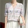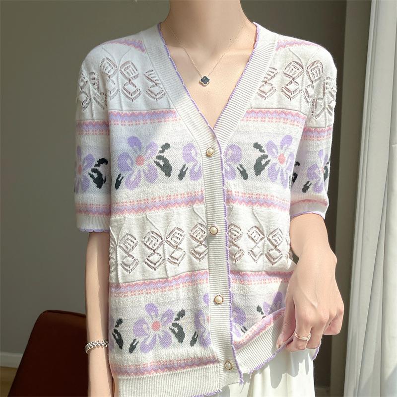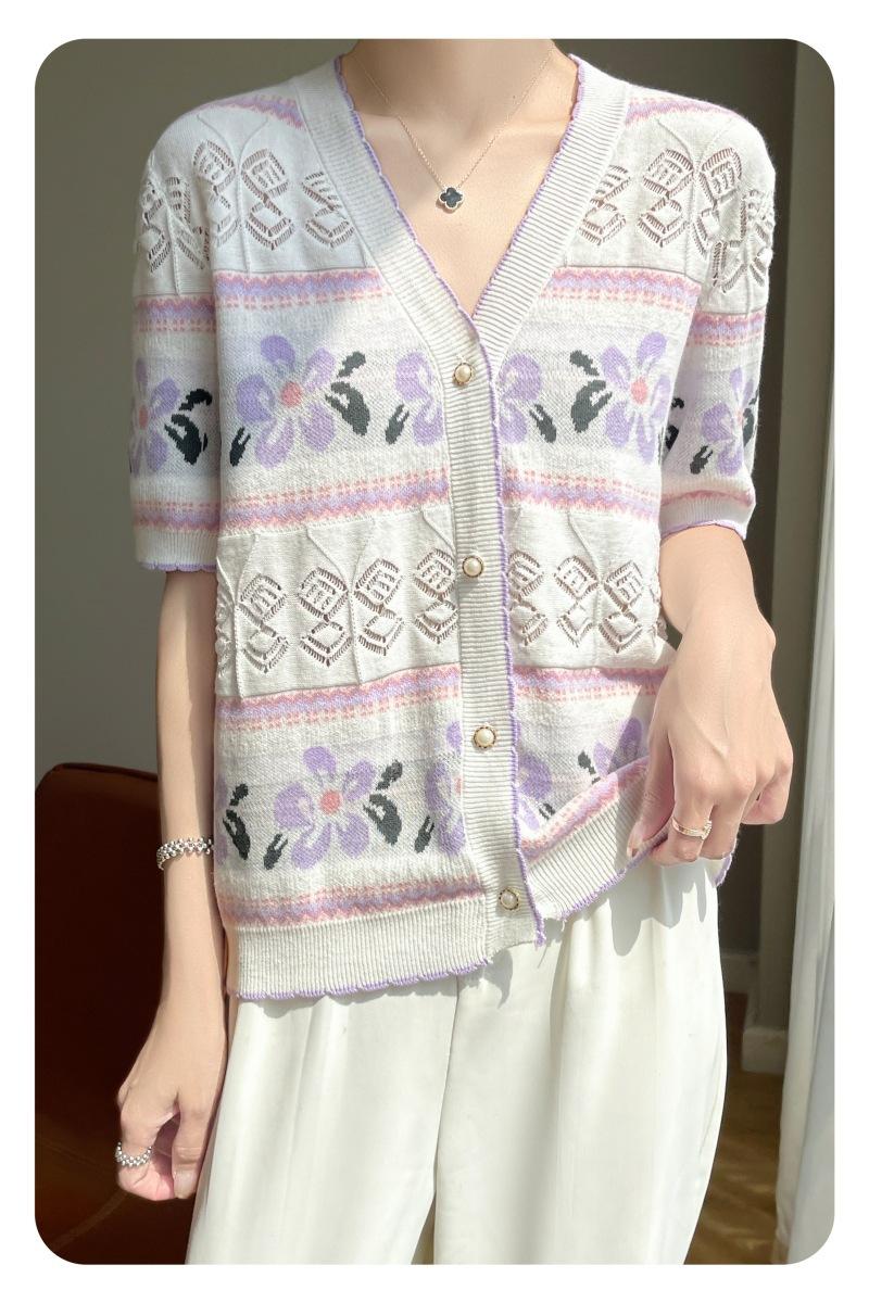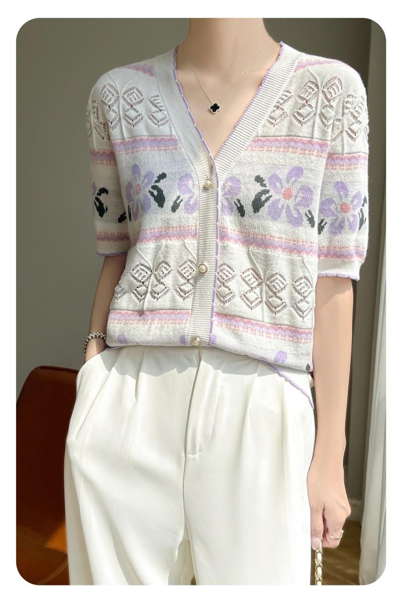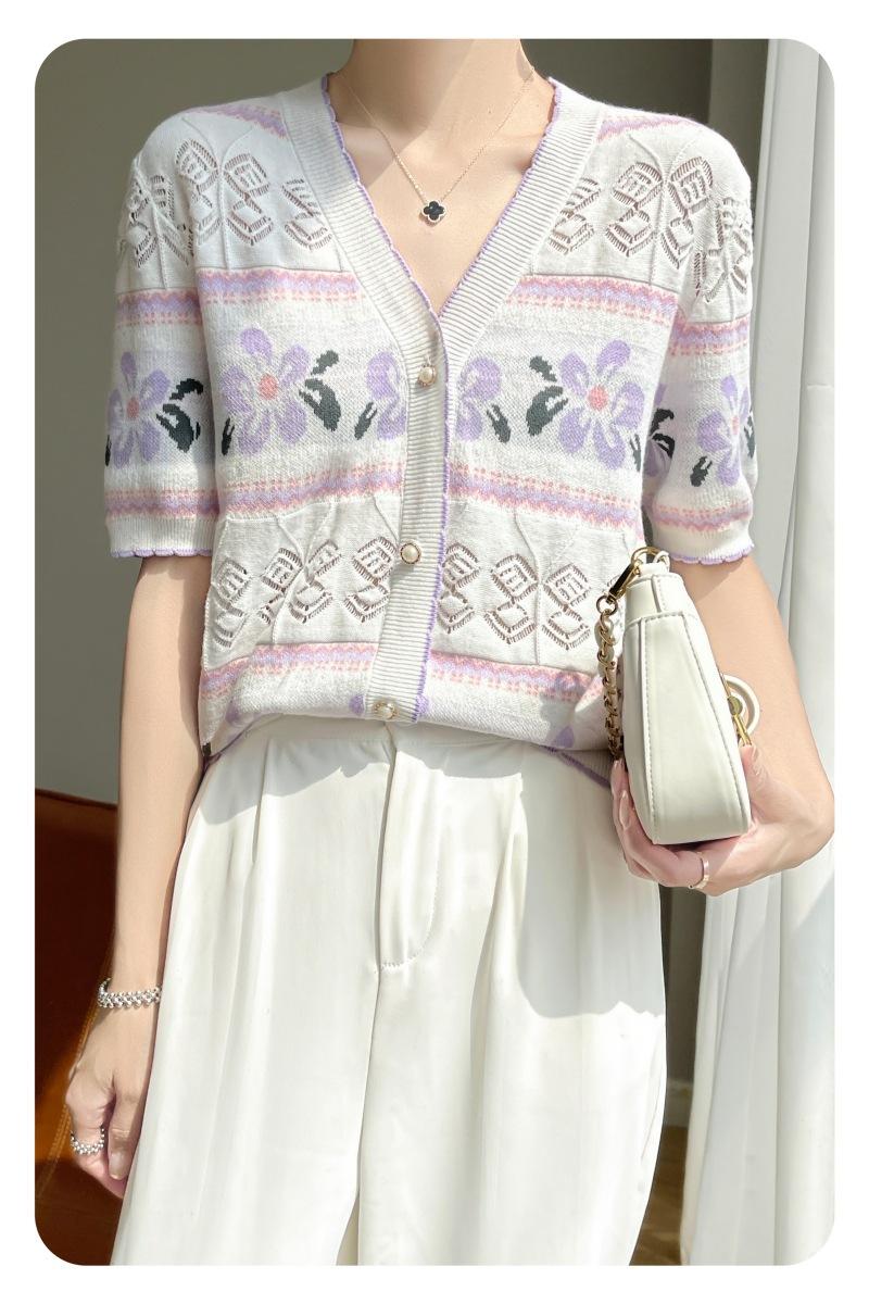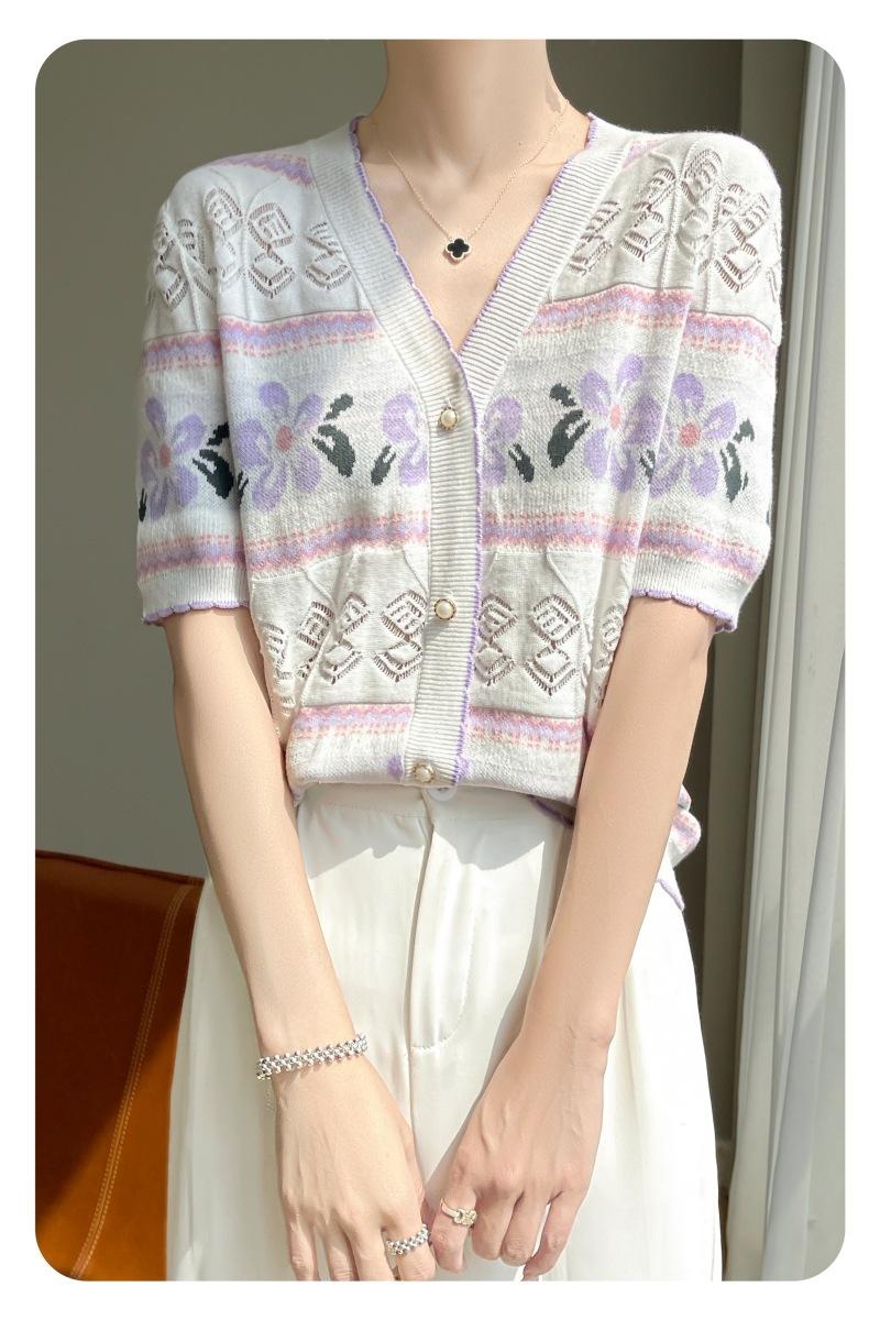 Camiseta de Algodón Dulce Francés de Manga Corta para Primavera y Verano 2024 para Mujer, Top Floral Chic Delgado de Moda