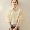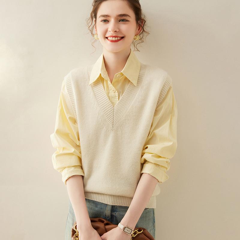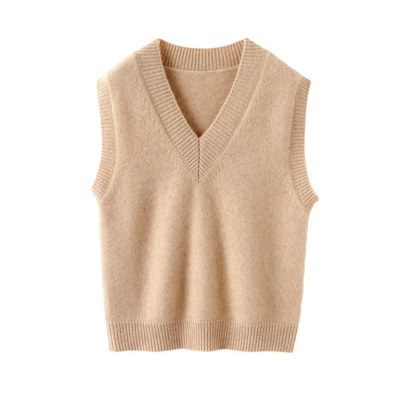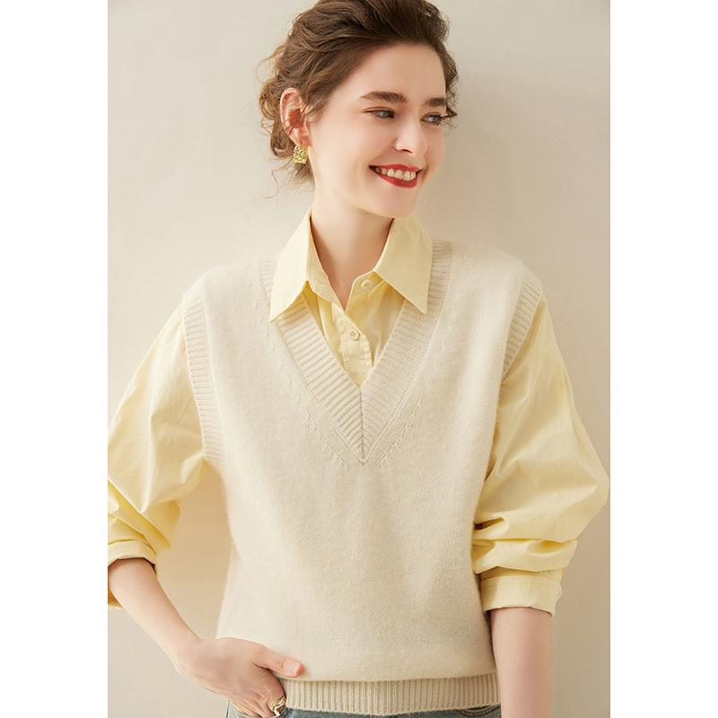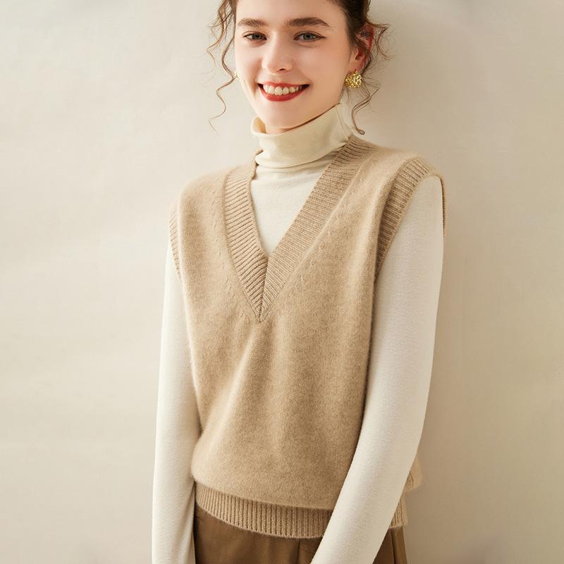 2024 Nuevo Otoño e Invierno Ropa Exterior Holgada Cuello en V Apilado Suéter Color Puro Chaleco Chaleco de Lana Chaleco de Punto para Mujer