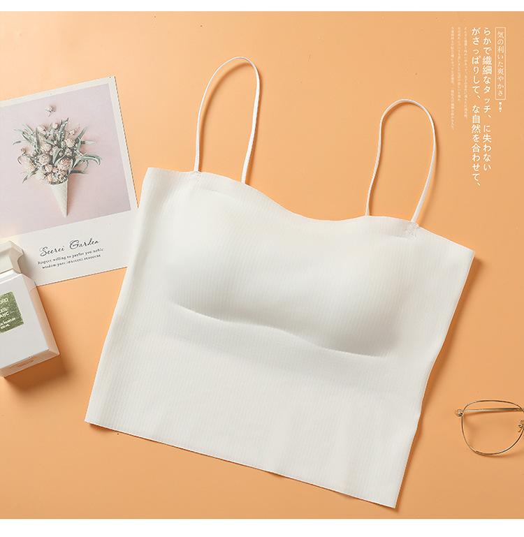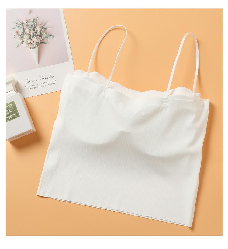 Camisola de seda helada para mujer, ropa interior con parte inferior de tubo envolvente, sin costuras, con almohadillas para el pecho, para verano, 2024