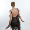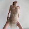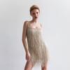 Vestido de Fiesta Europeo y Americano Nuevo 2024 Transfronterizo Sexy sin Espalda Asimétrico Falda de Cadera Cuello Cuadrado Falda de Tirantes con Flecos