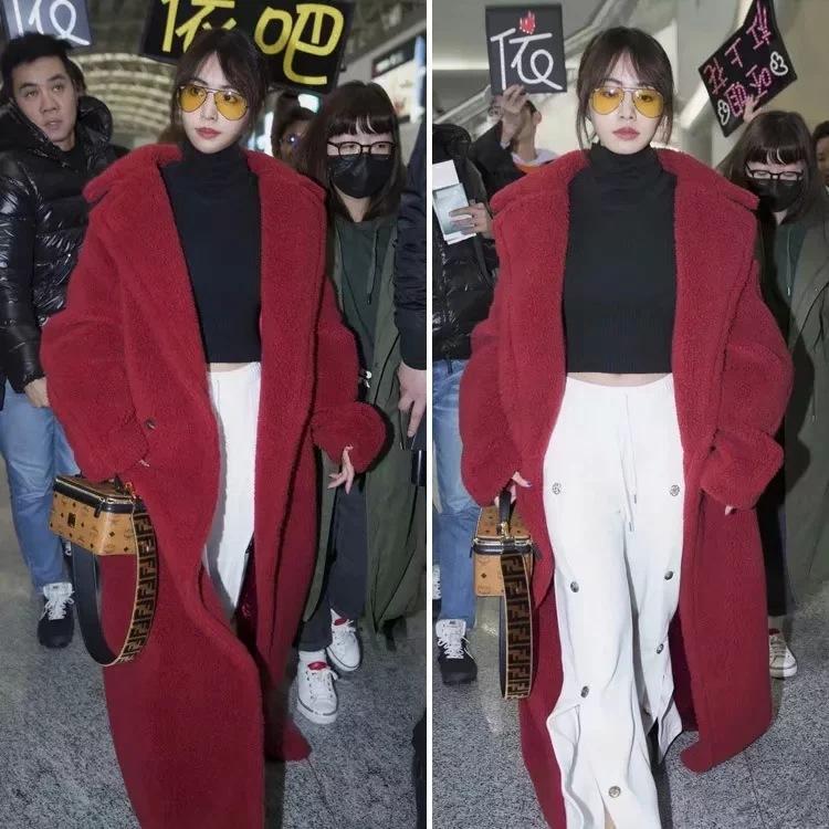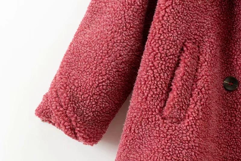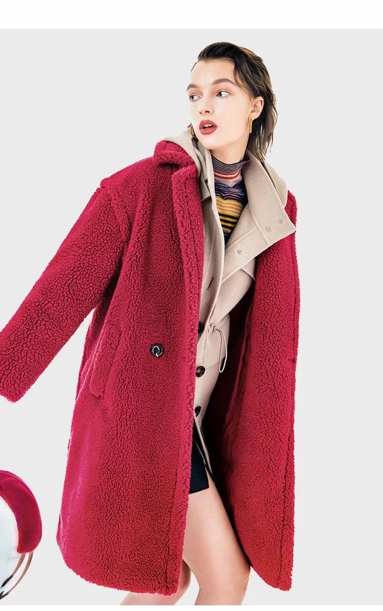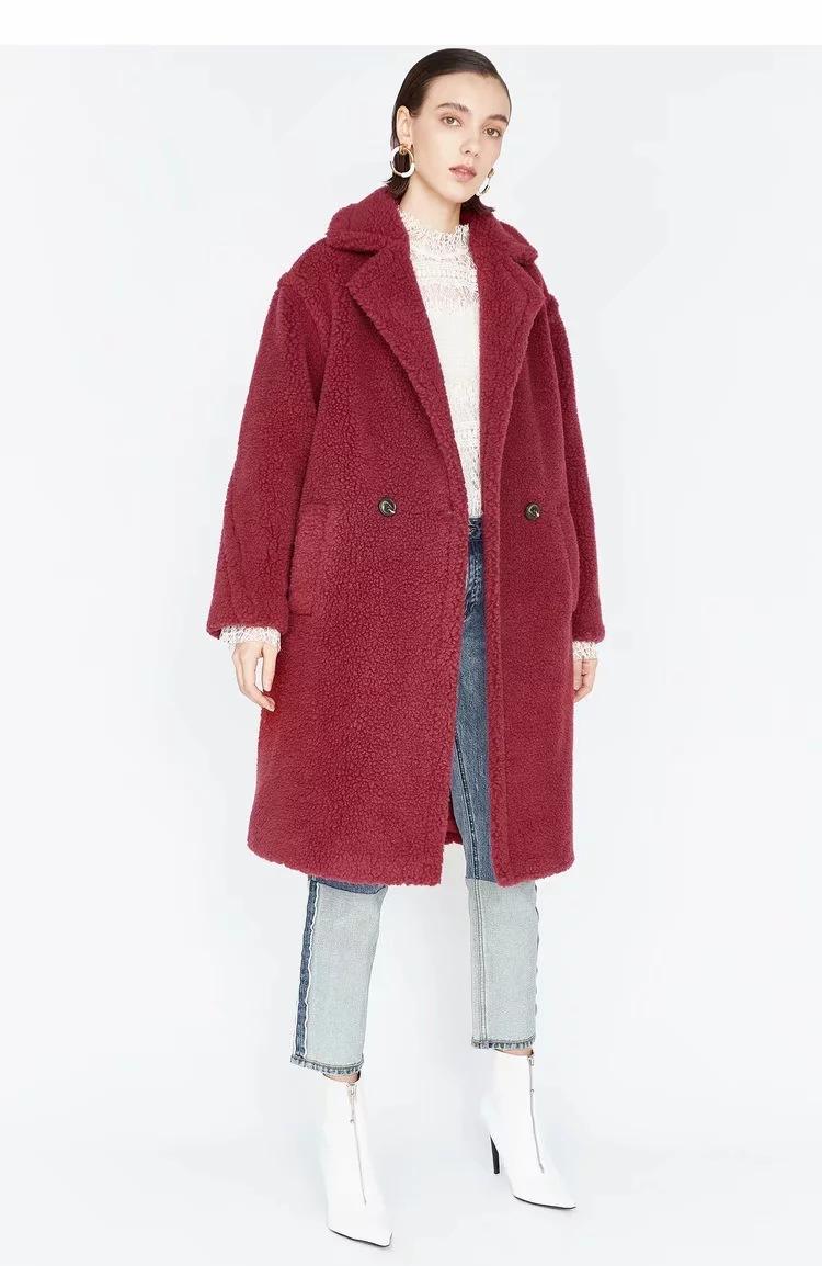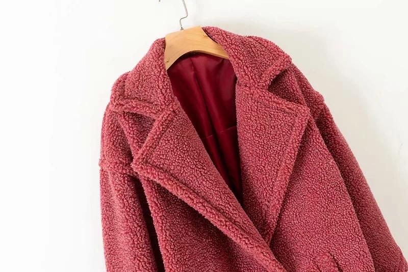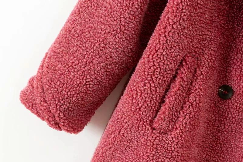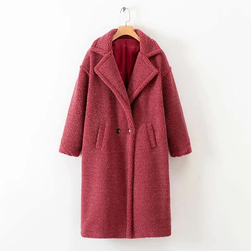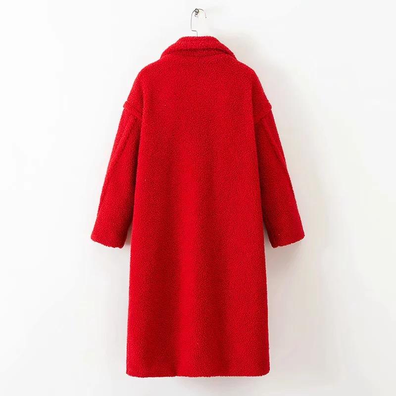 Abrigo de Lana de Cordero con Solapa Suelta del Mismo Estilo de Blogger Exportación para Mujer Estilo Europeo y Americano Abrigo Largo de Peluche Teddy
