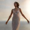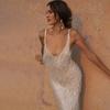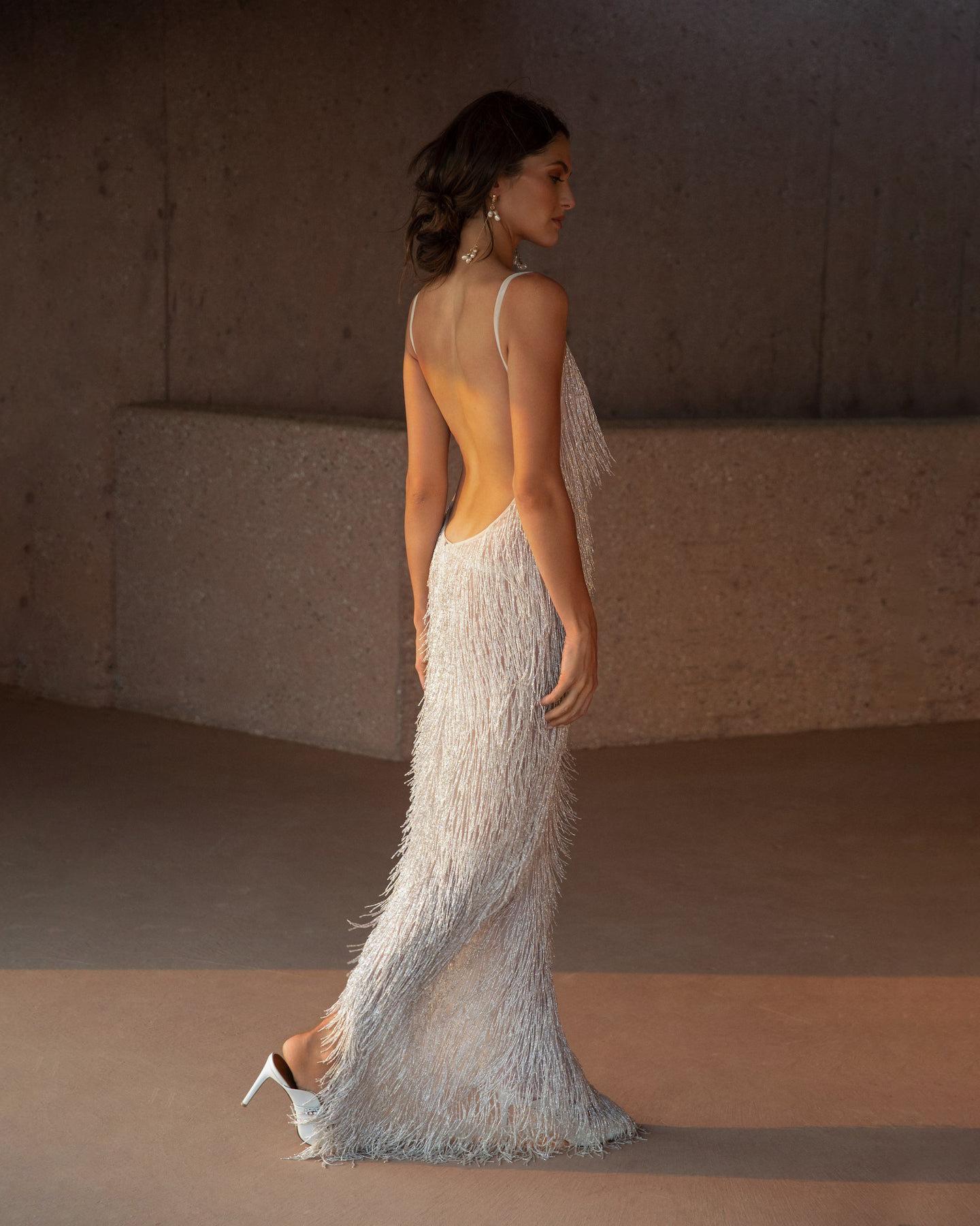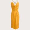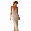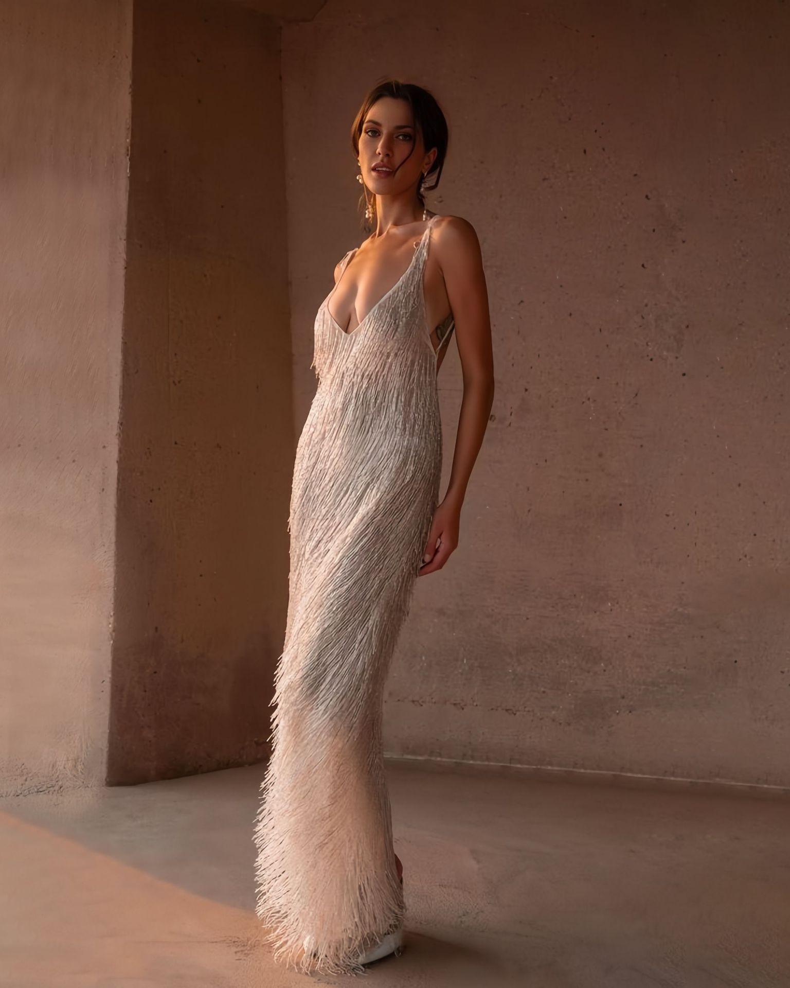 Vestido Europeo y Americano Transfronterizo Sexy con Tirantes Descubierto Falda Larga Abertura Borla Profundo V Vestido de Noche Francés