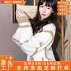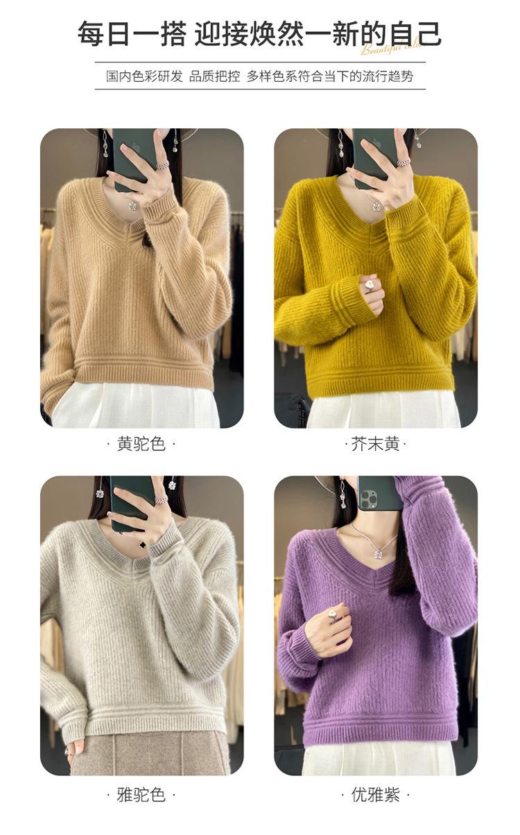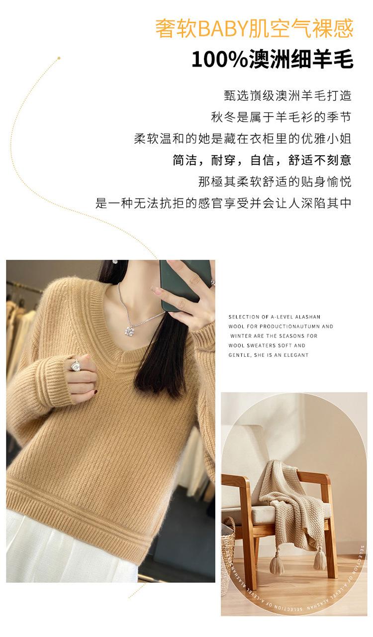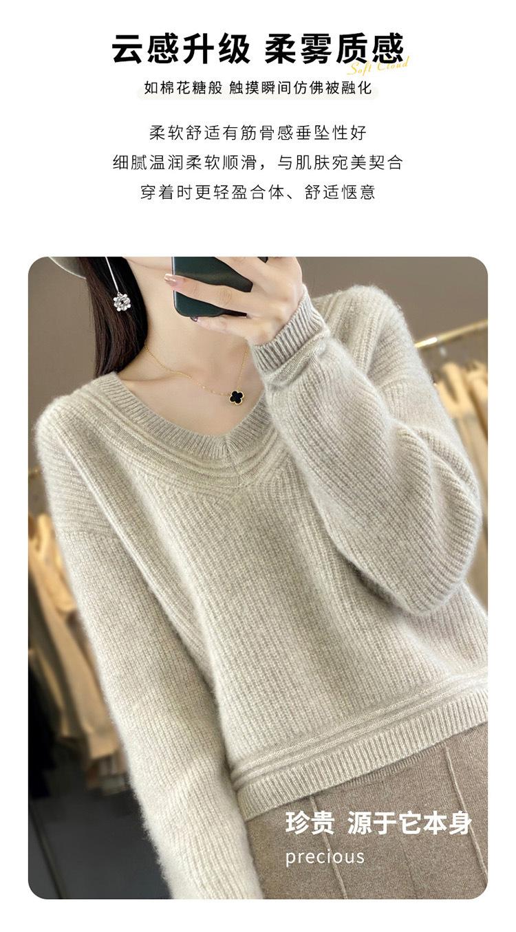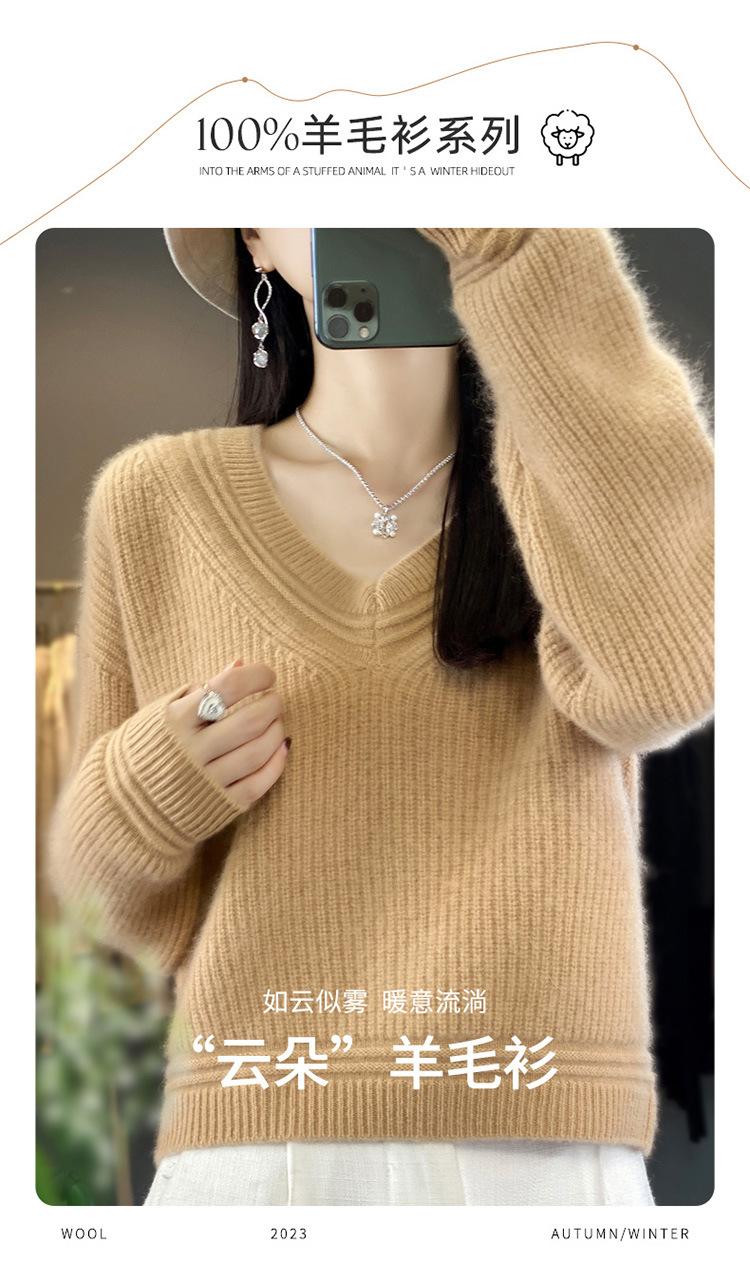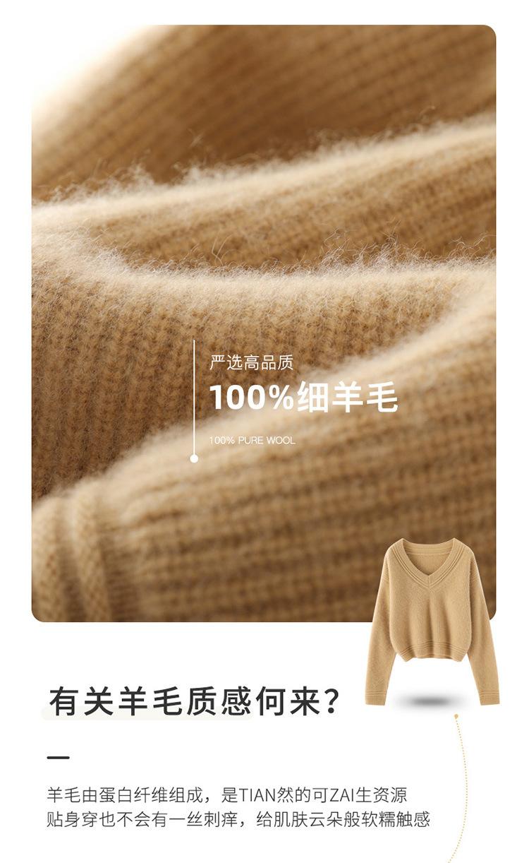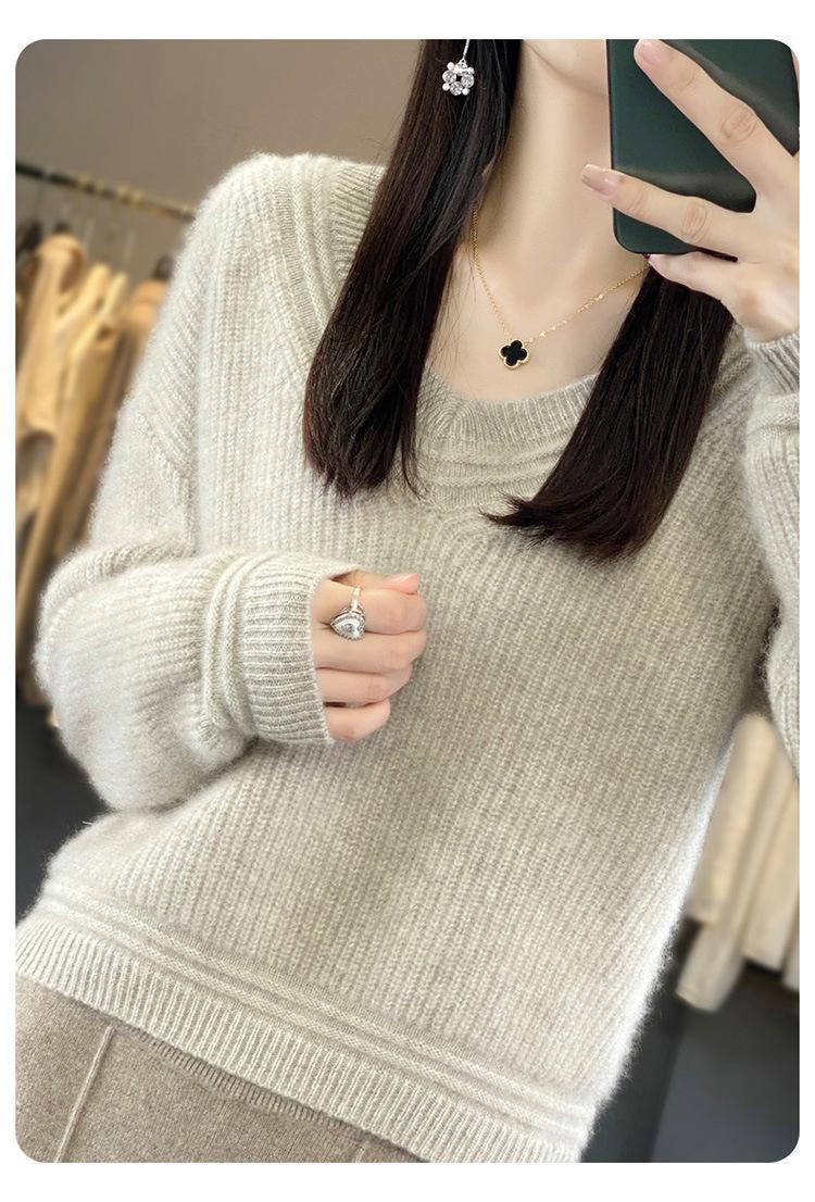 Suéter corto elegante con cuello en V y aguja de lingote de color sólido simple de estilo coreano, suéter informal holgado de lana completa para otoño e invierno para mujer