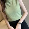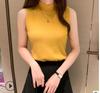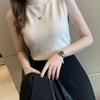 2 023 verano nueva camisa de base de cuello semialto Suéter delgado sin mangas para mujer con chaleco top corto