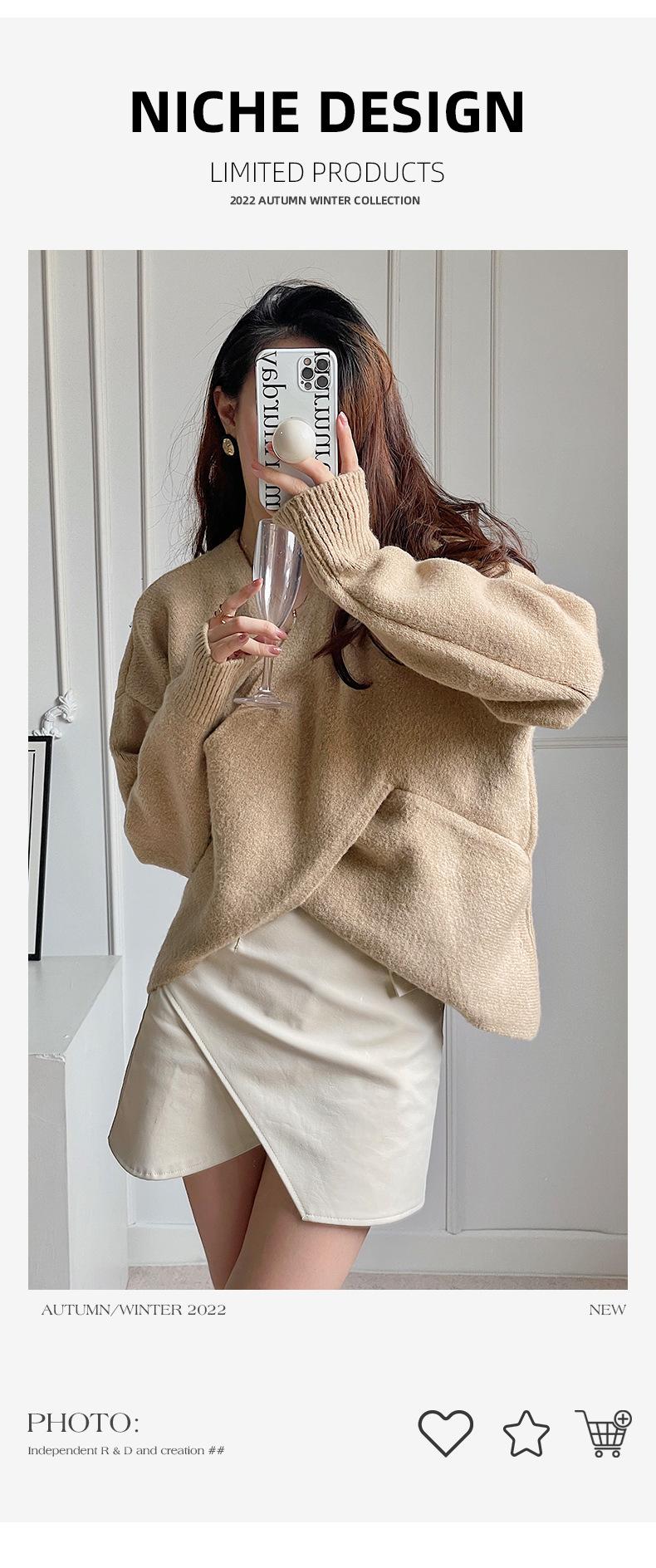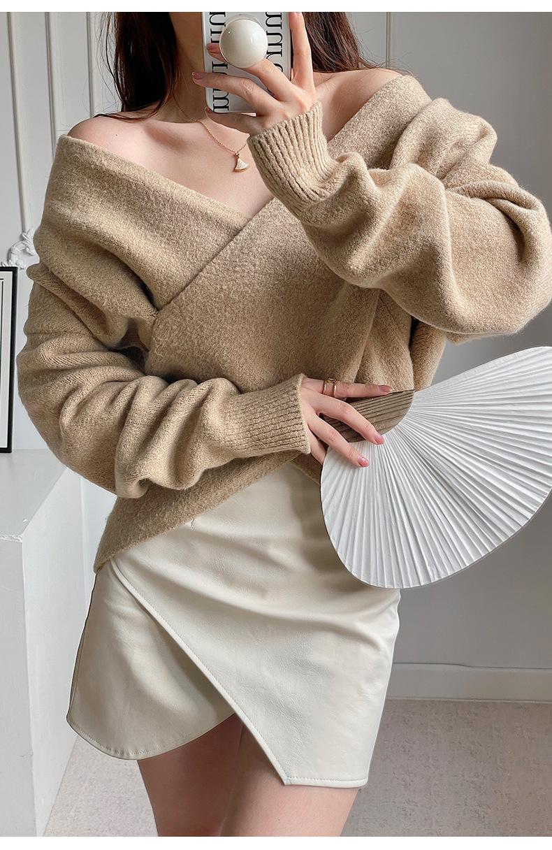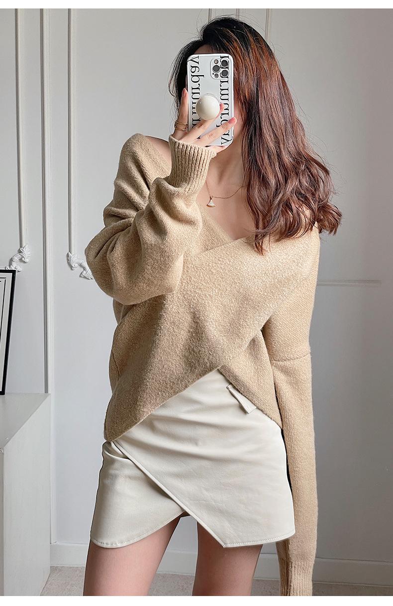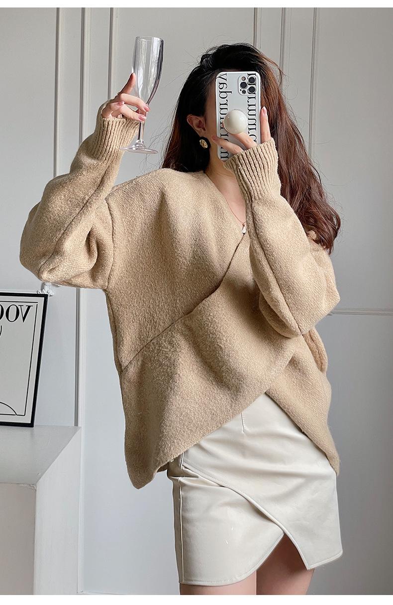 Suéter Nuevo de Otoño e Invierno para Mujer 2025 Cuello en V Cruzado Gato Novia Transpirable Color Sólido Temperamento Suéter Mujer