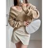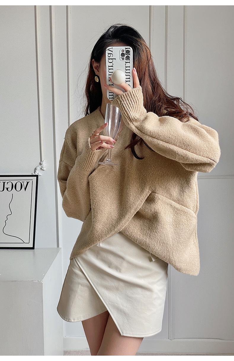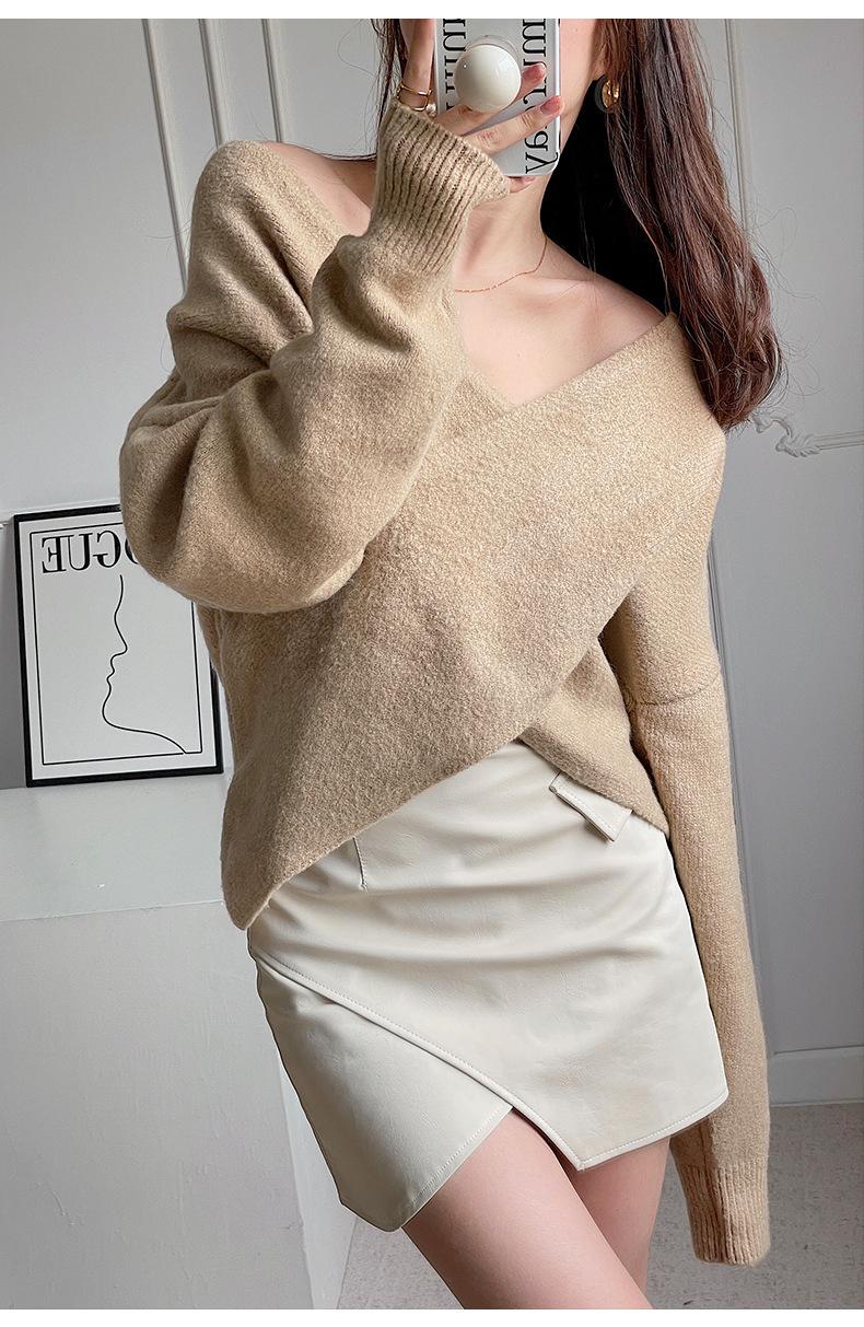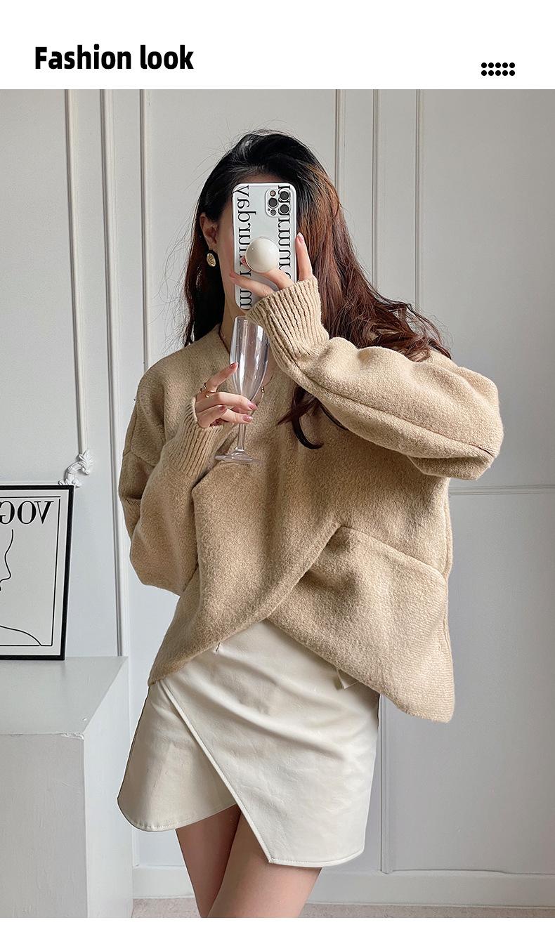 Suéter Nuevo de Otoño e Invierno para Mujer 2025 Cuello en V Cruzado Gato Novia Transpirable Color Sólido Temperamento Suéter Mujer