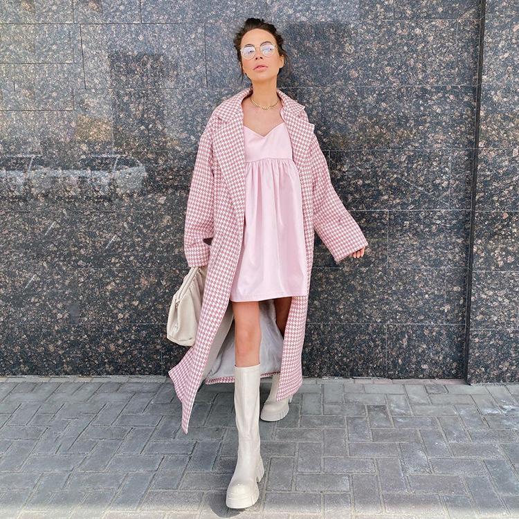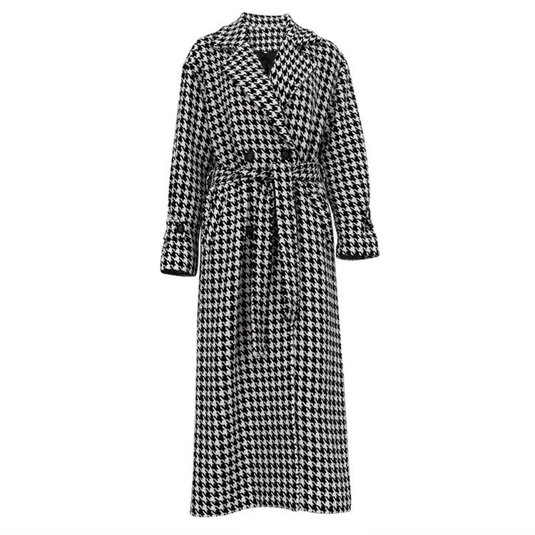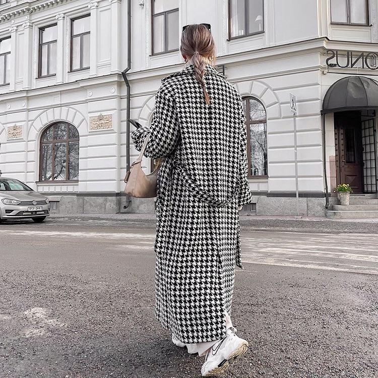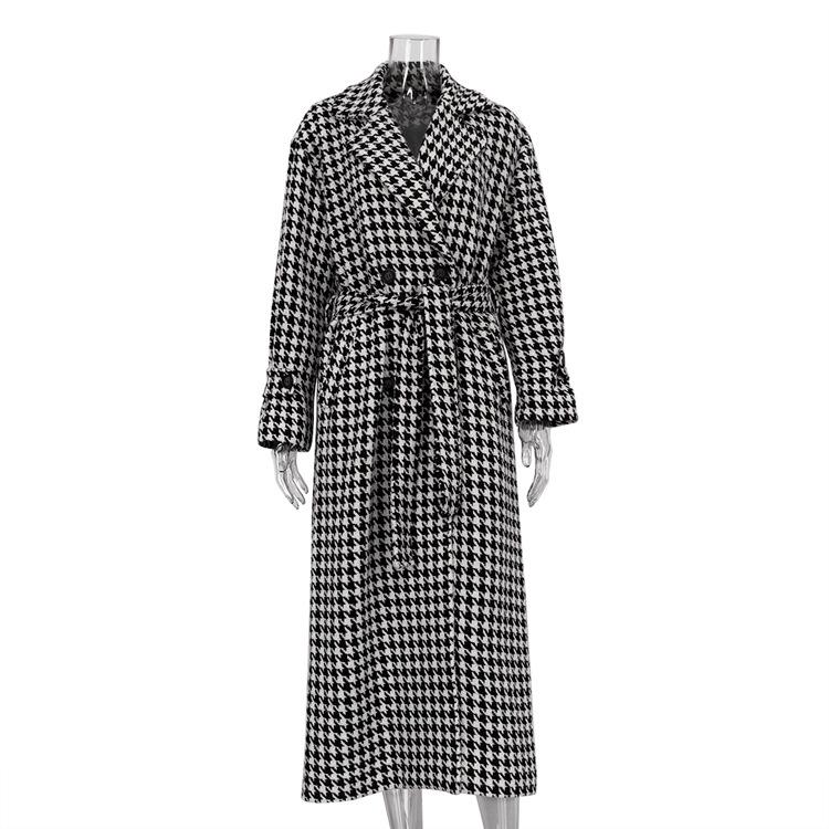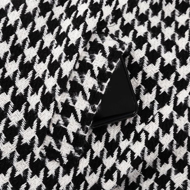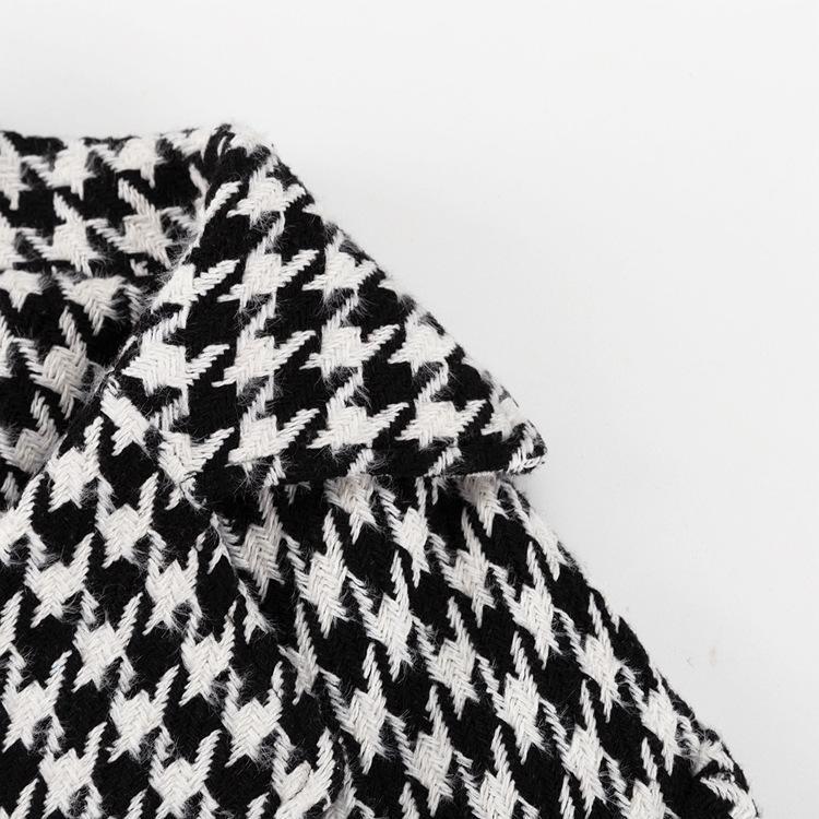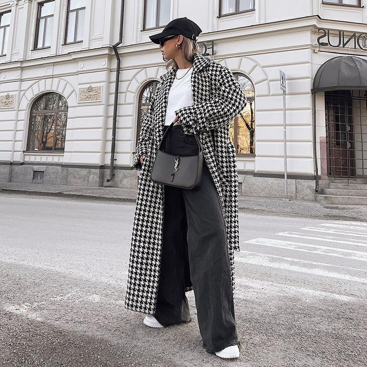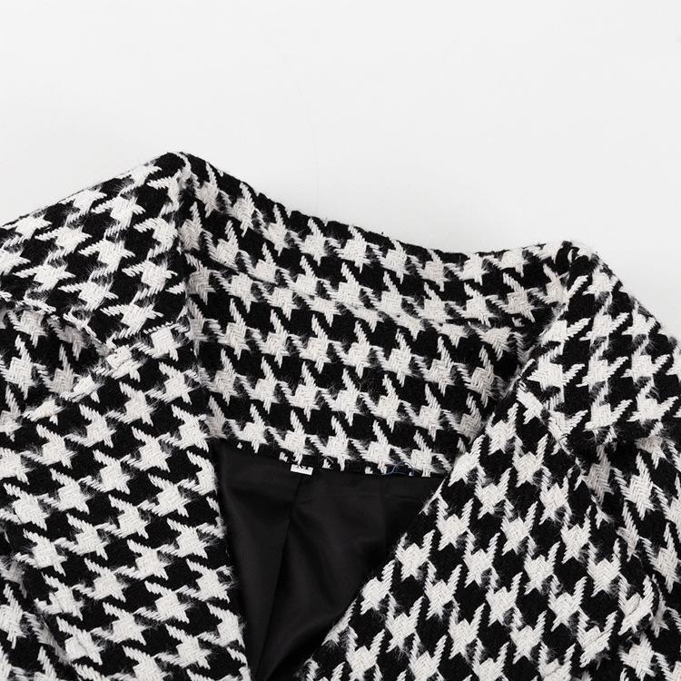 Abrigo Largo de Pata de Gallo para Mujer Nuevo Otoño e Invierno 2023 Abrigo de Moda de Alta Gama Blanco y Negro Abrigo Ligeramente Maduro para Mujer