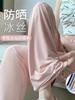 Pantalones deportivos grises de verano para mujer, finos, de cintura alta, rectos, holgados, frescos, antimosquitos, con protección solar, informales, de seda helada, con pierna ancha.