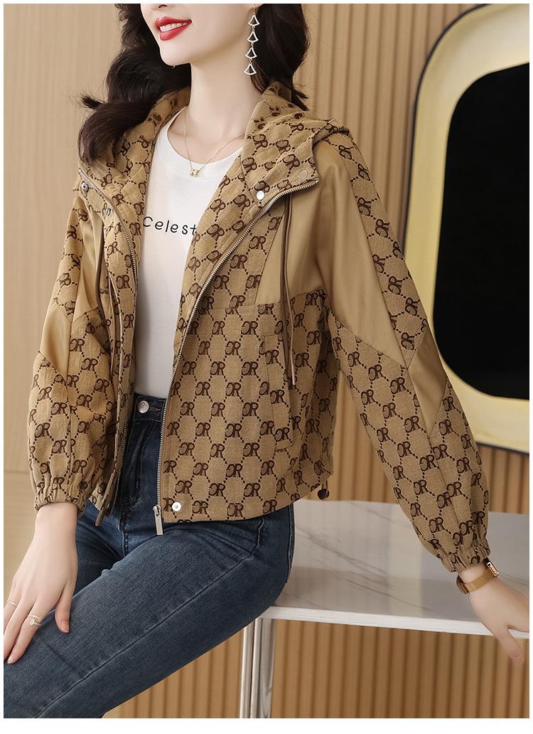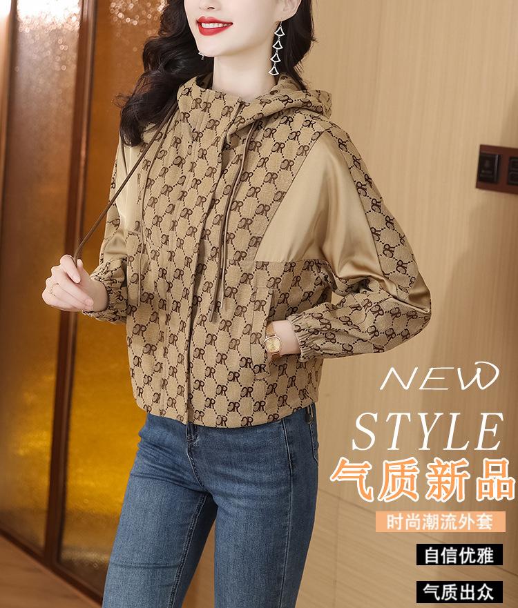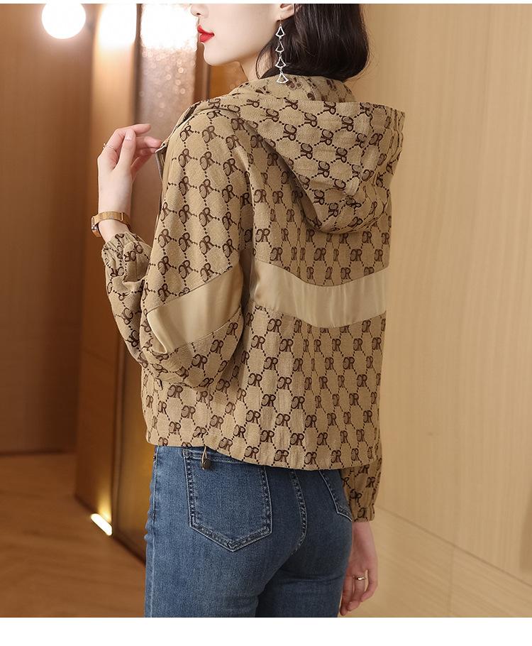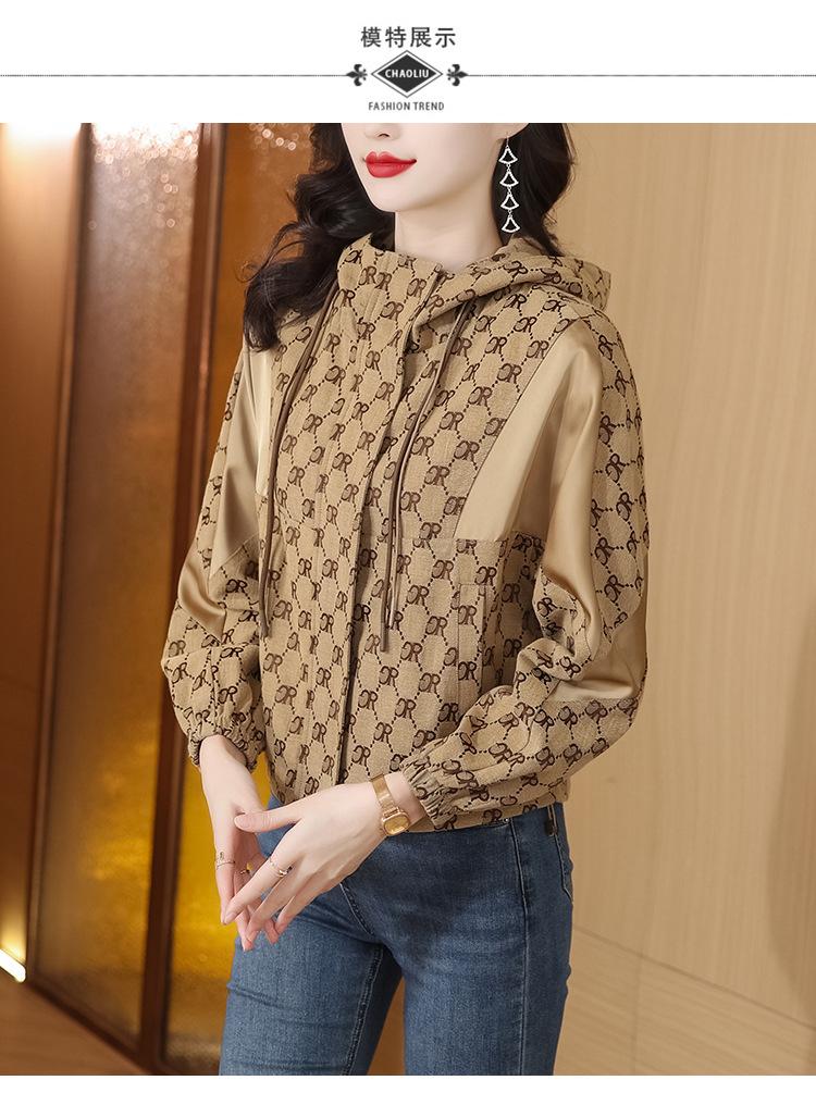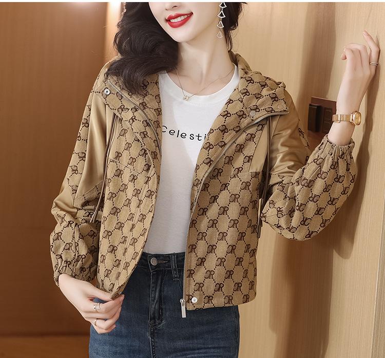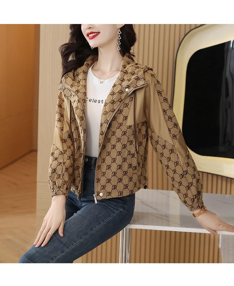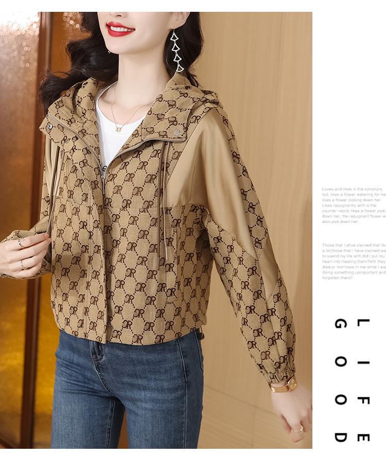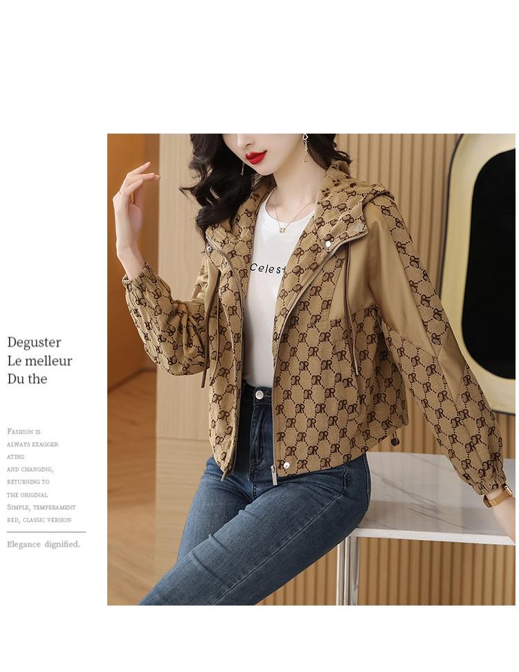Prenda exterior estampada de moda para mujer Otoño 2023 Nuevo Cárdigan exterior Cortavientos pequeño Chaqueta con capucha y cordón ajustable Top moderno