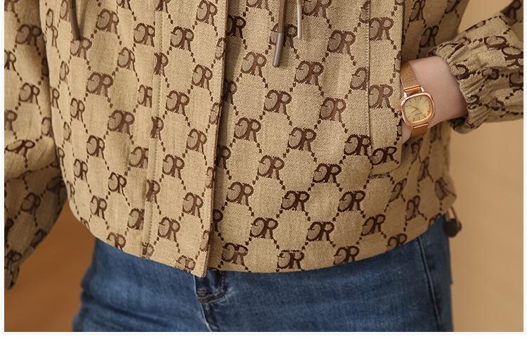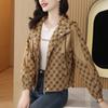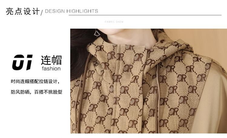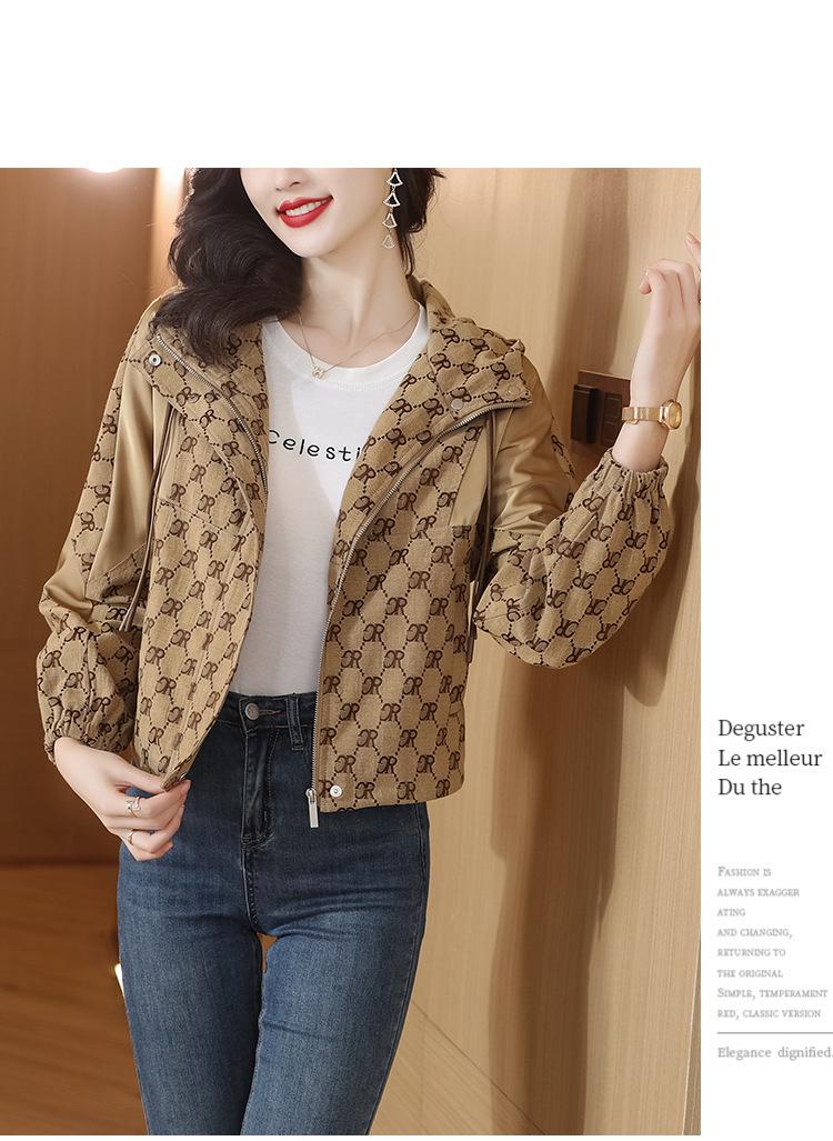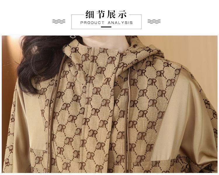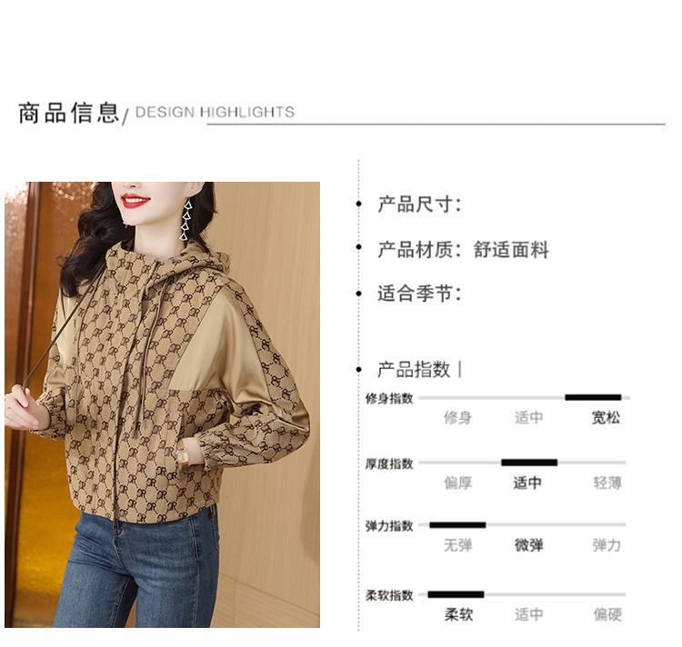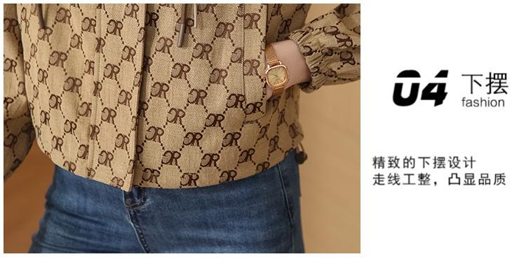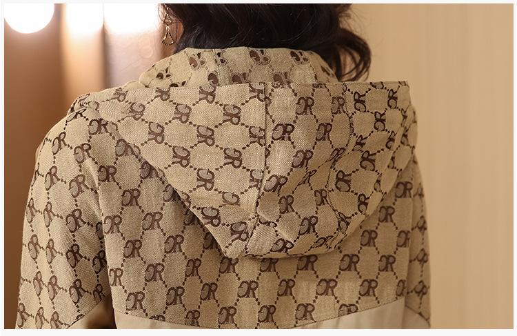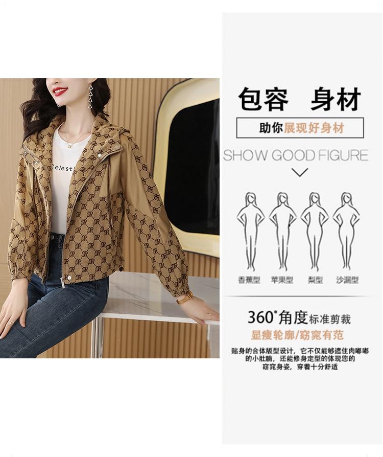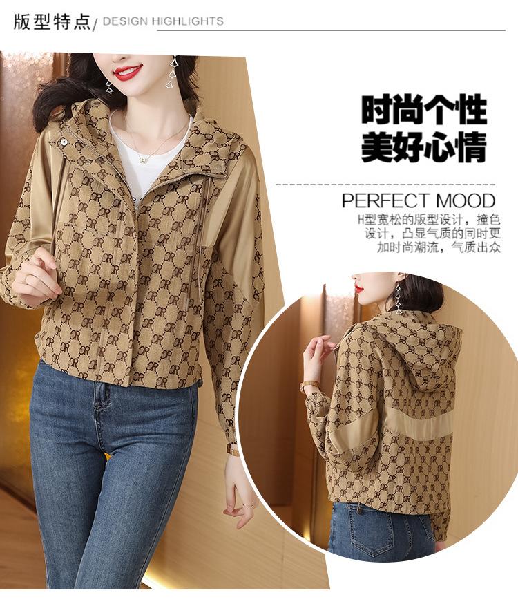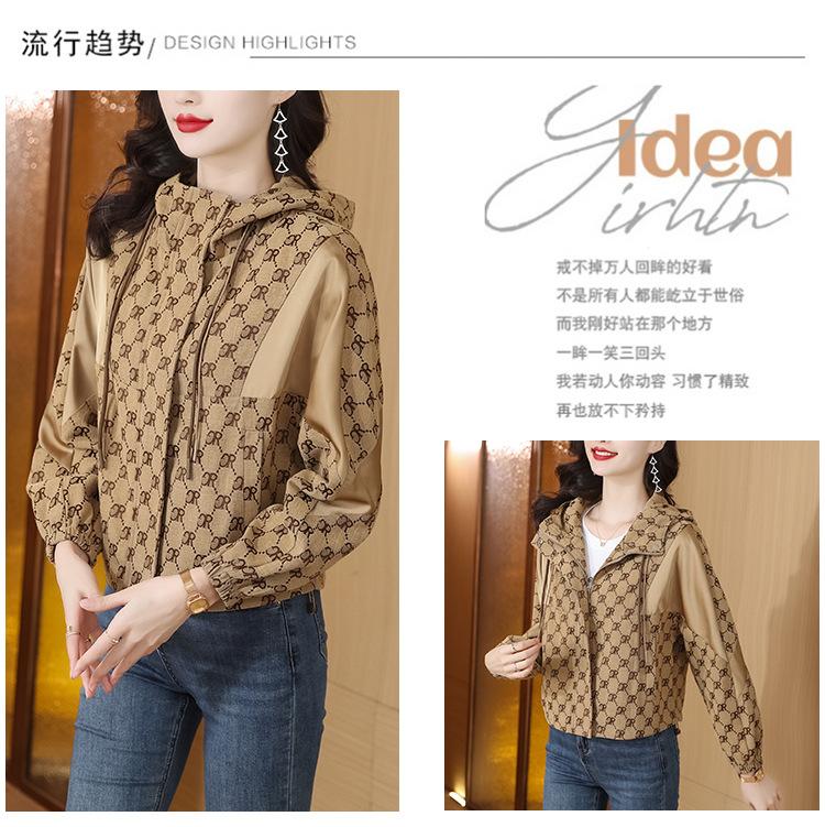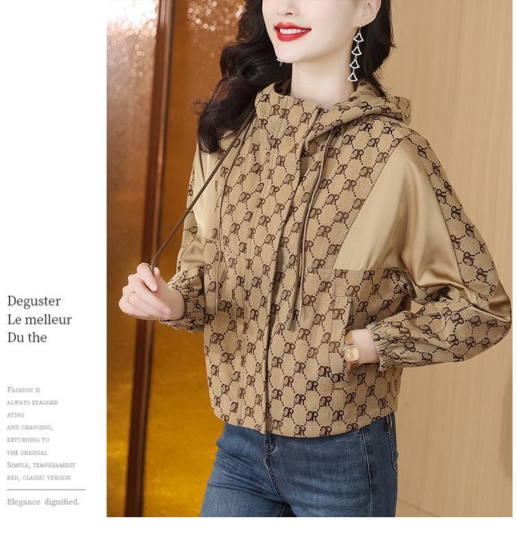 Prenda exterior estampada de moda para mujer Otoño 2023 Nuevo Cárdigan exterior Cortavientos pequeño Chaqueta con capucha y cordón ajustable Top moderno